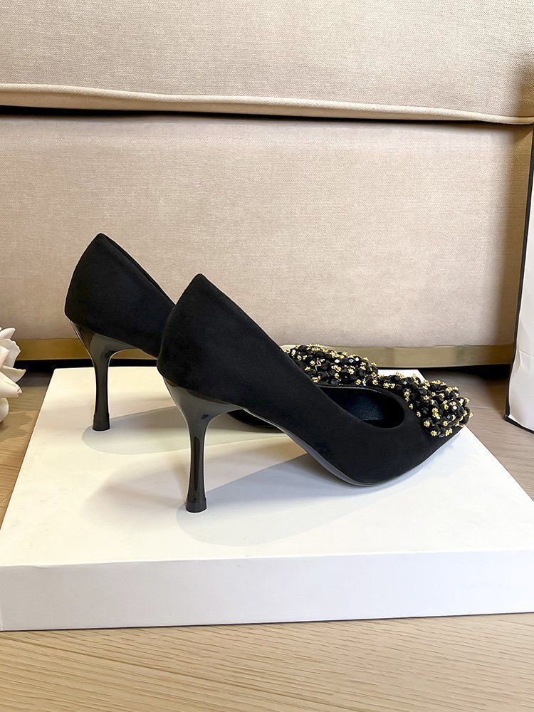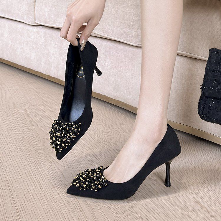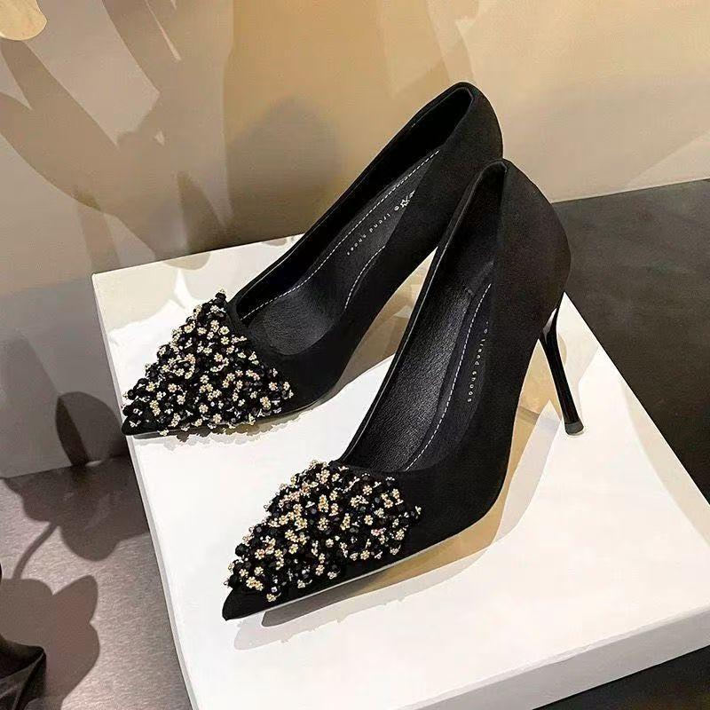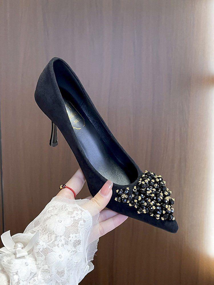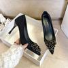 Zapatos de Tacón Alto Elegantes Poco Cansados con Pedrería Primavera y Verano 2025 Nueva Moda Punta Afilada Flats Versátiles Zapatos Profesionales para Mujer