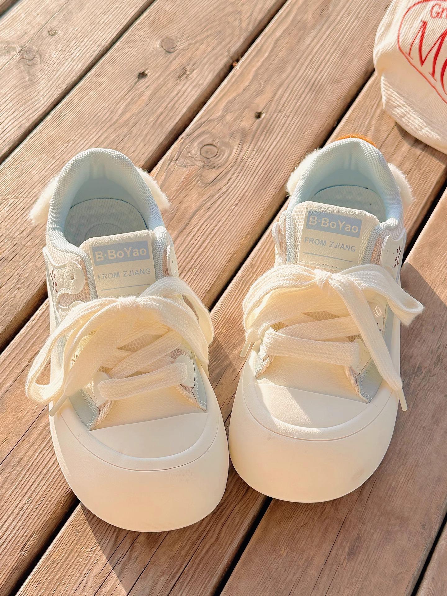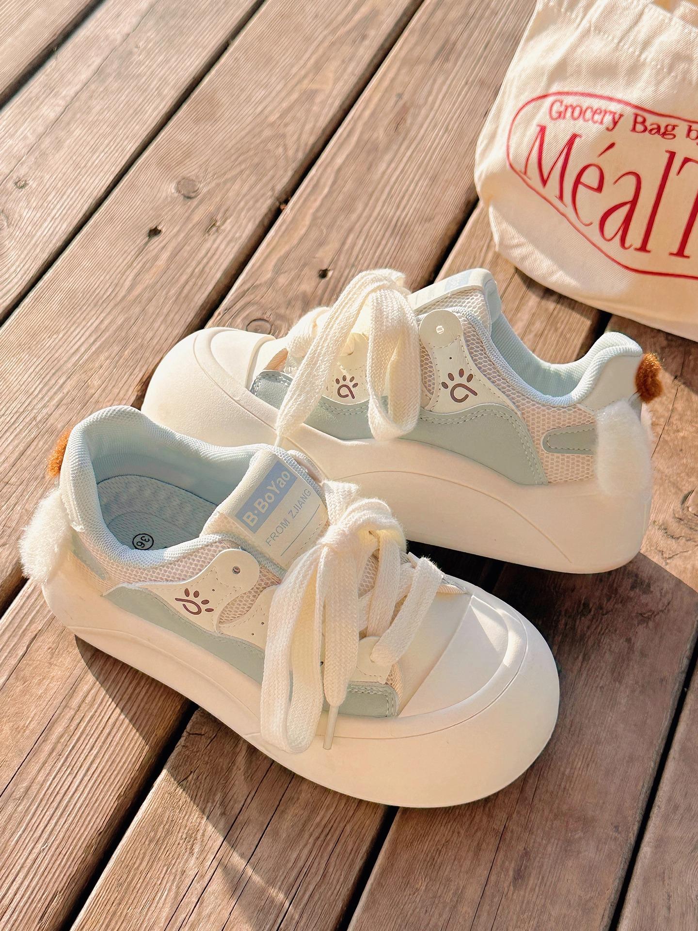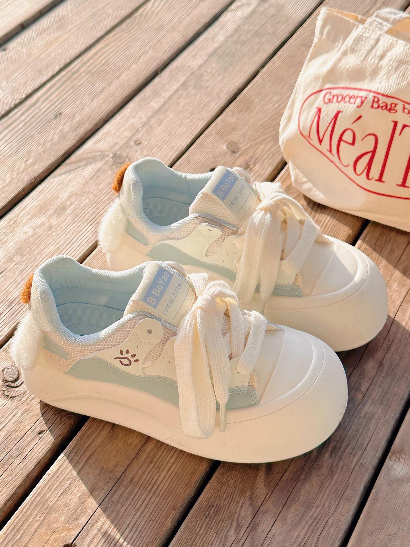 Zapatos Blancos Dulces de Suela Gruesa para Mujer Malla Doble 2025 Nuevo Chic Nicho Estilo Coreano Tenis Versátiles Deportivos Zapatos de Pan
