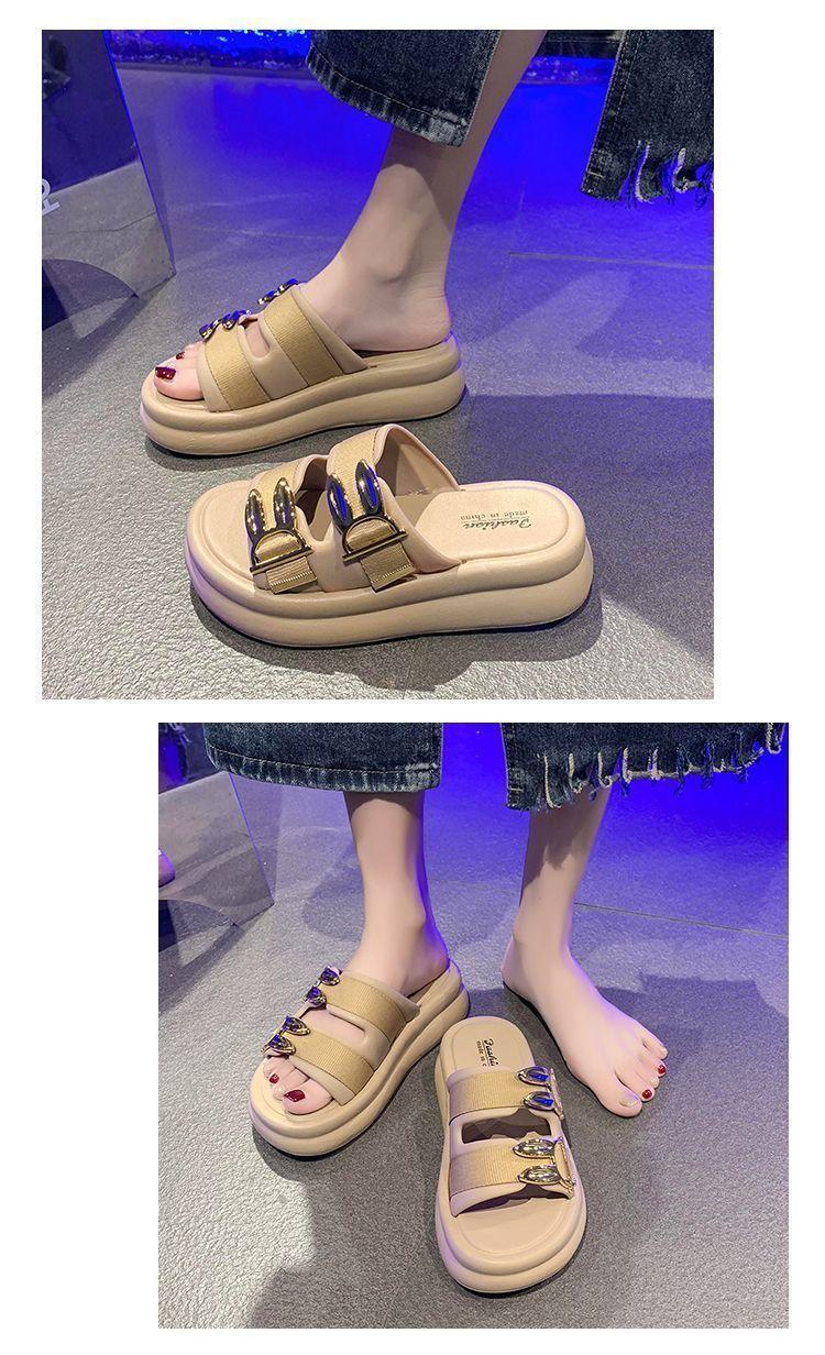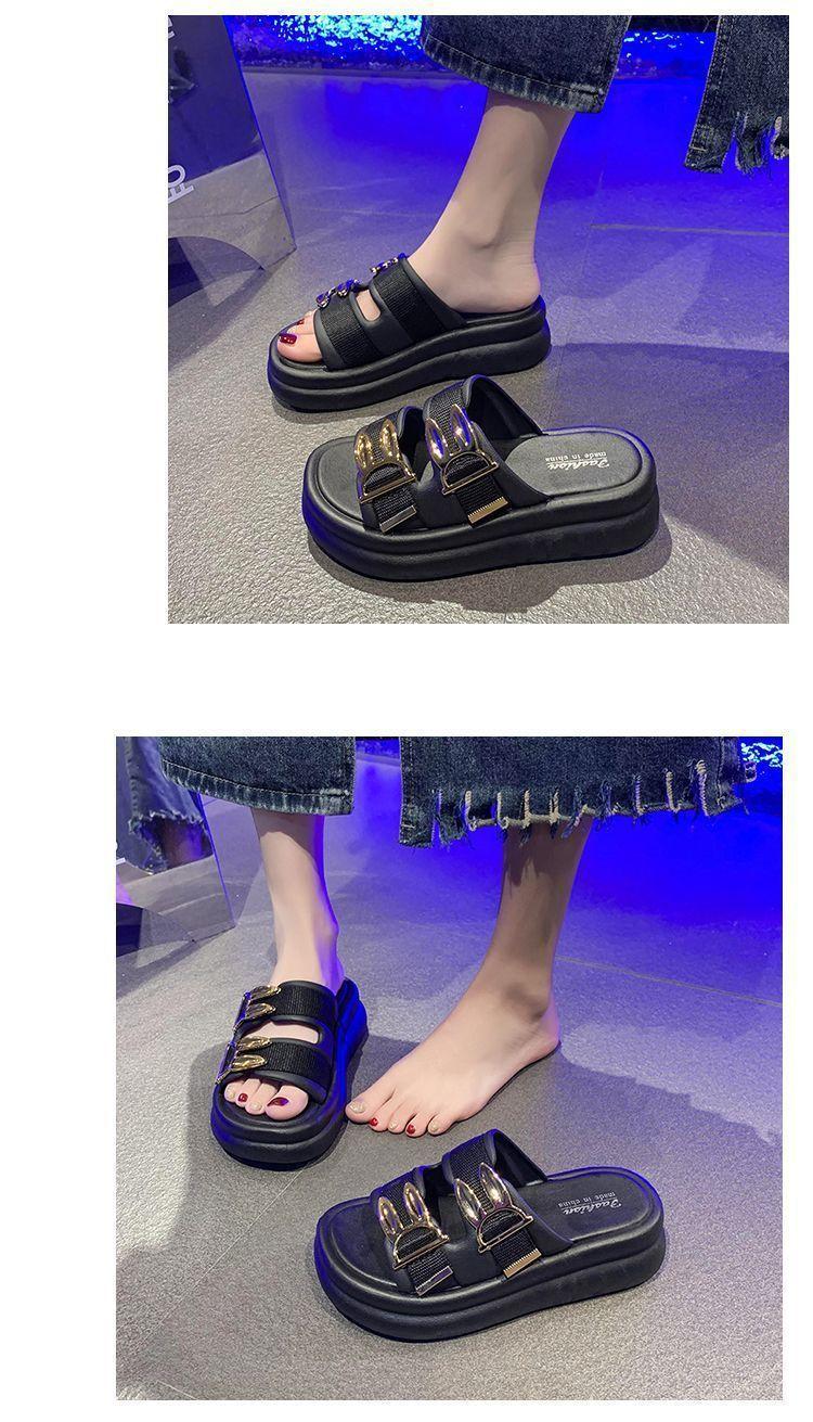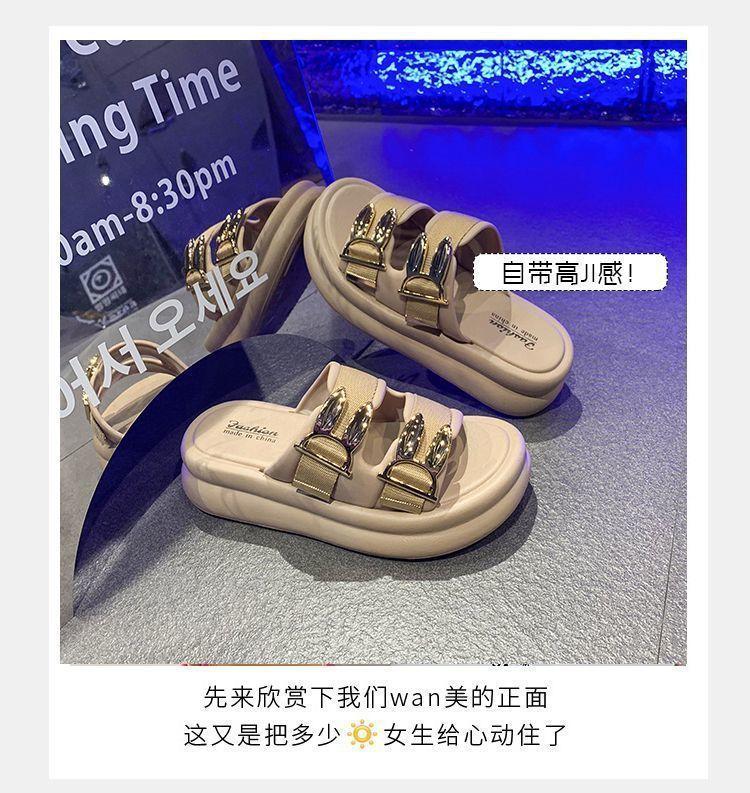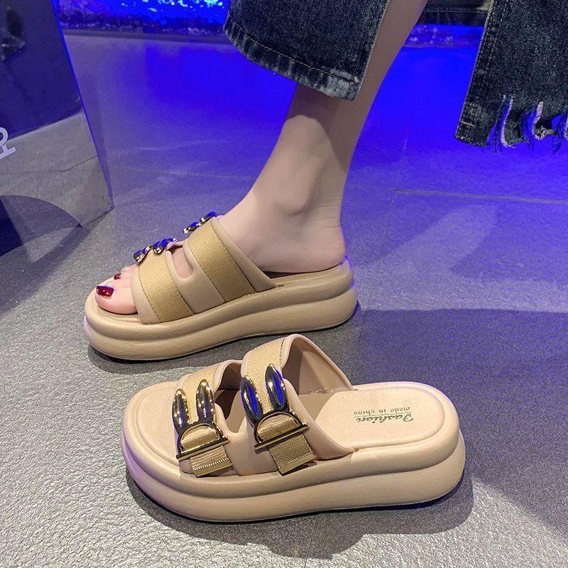 Pantuflas Versátiles de Suela Suave y Suela Gruesa para Aumentar la Altura para Mujer 2025 Nuevo Estilo Sandalias de Playa Pantuflas para Dama Verano para Exterior Pantuflas de Una Tira