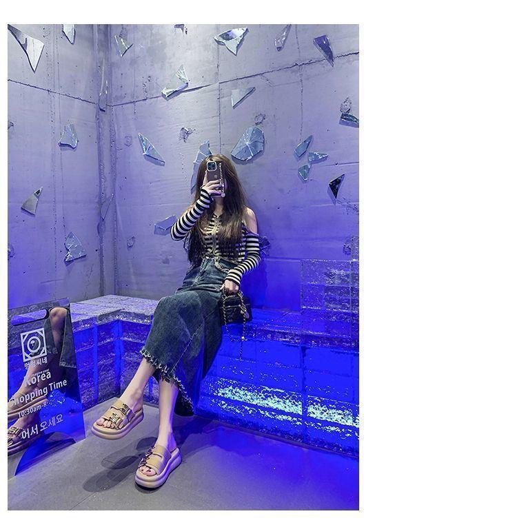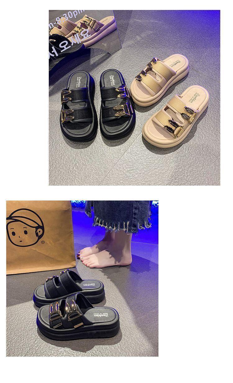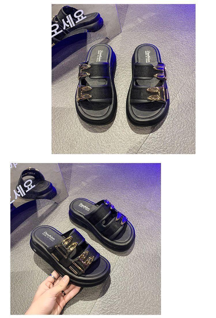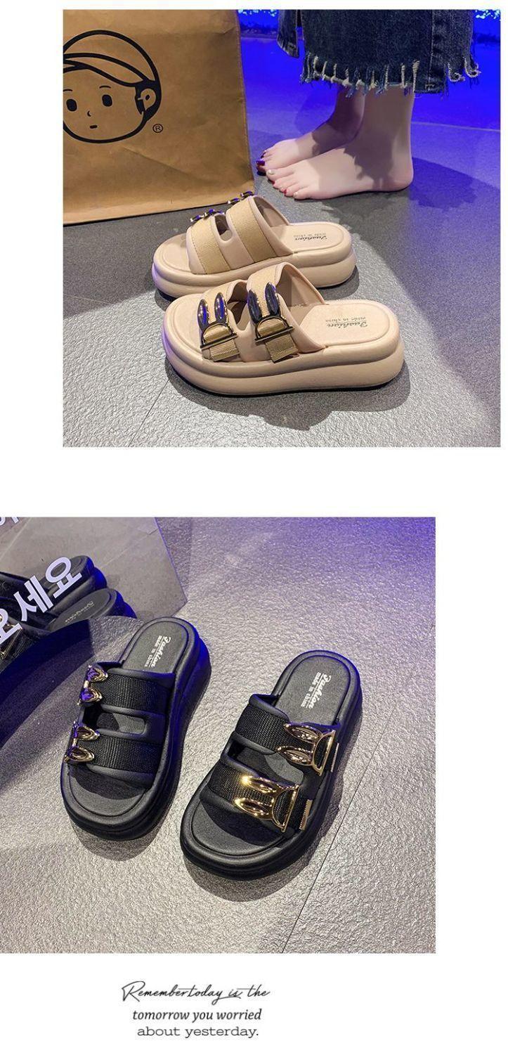 Pantuflas Versátiles de Suela Suave y Suela Gruesa para Aumentar la Altura para Mujer 2025 Nuevo Estilo Sandalias de Playa Pantuflas para Dama Verano para Exterior Pantuflas de Una Tira