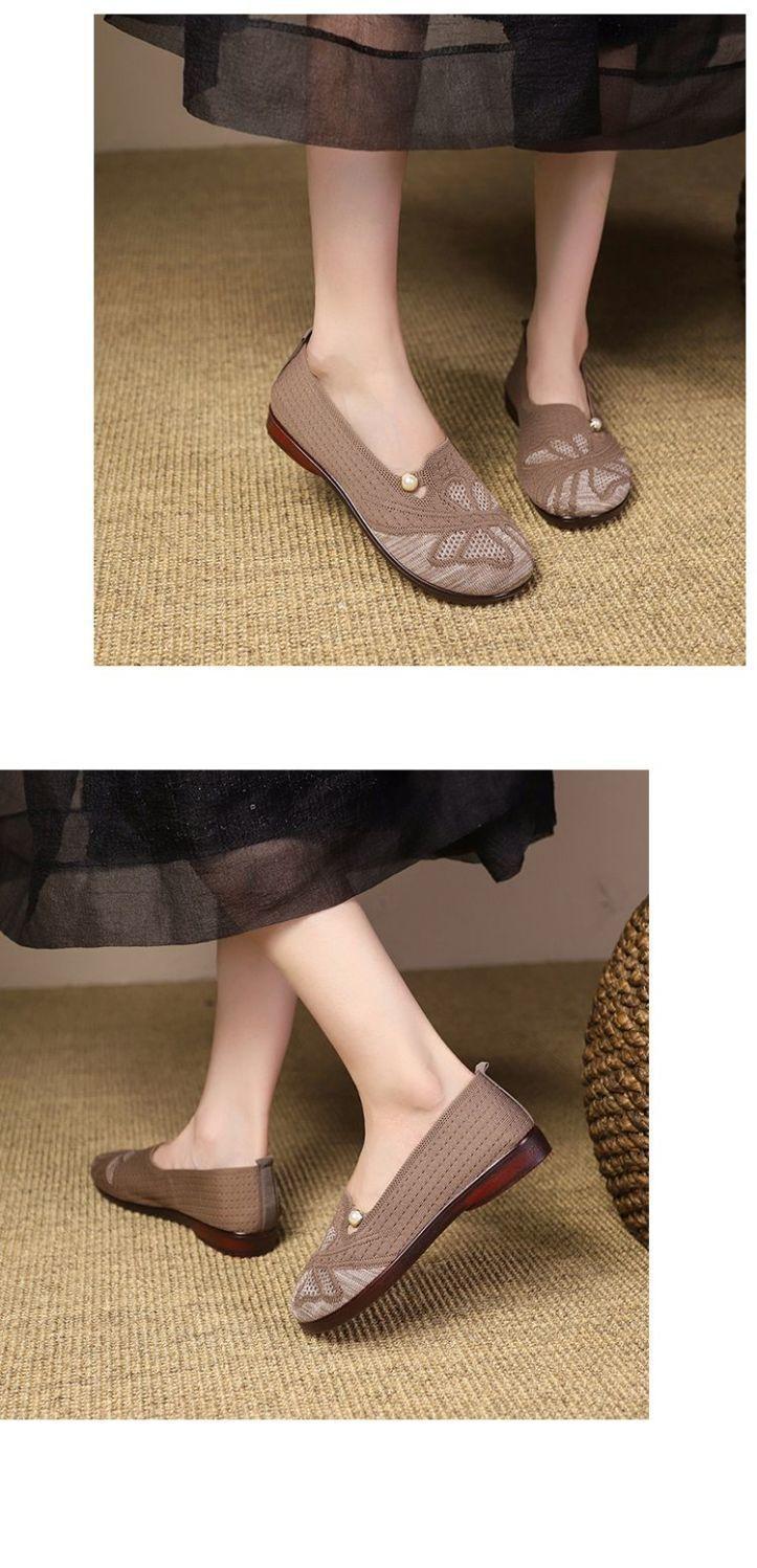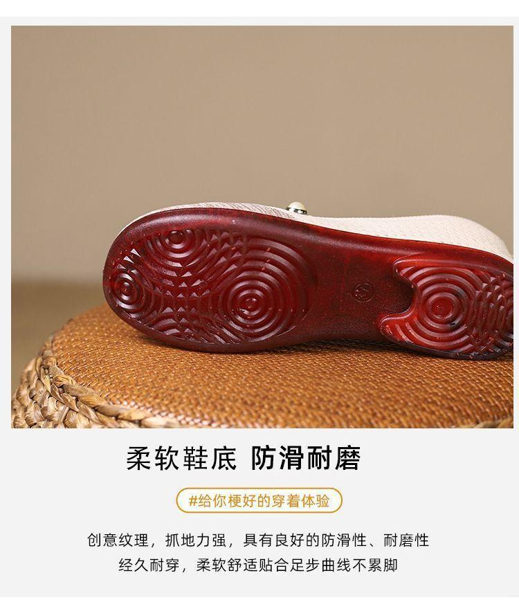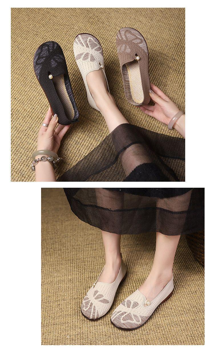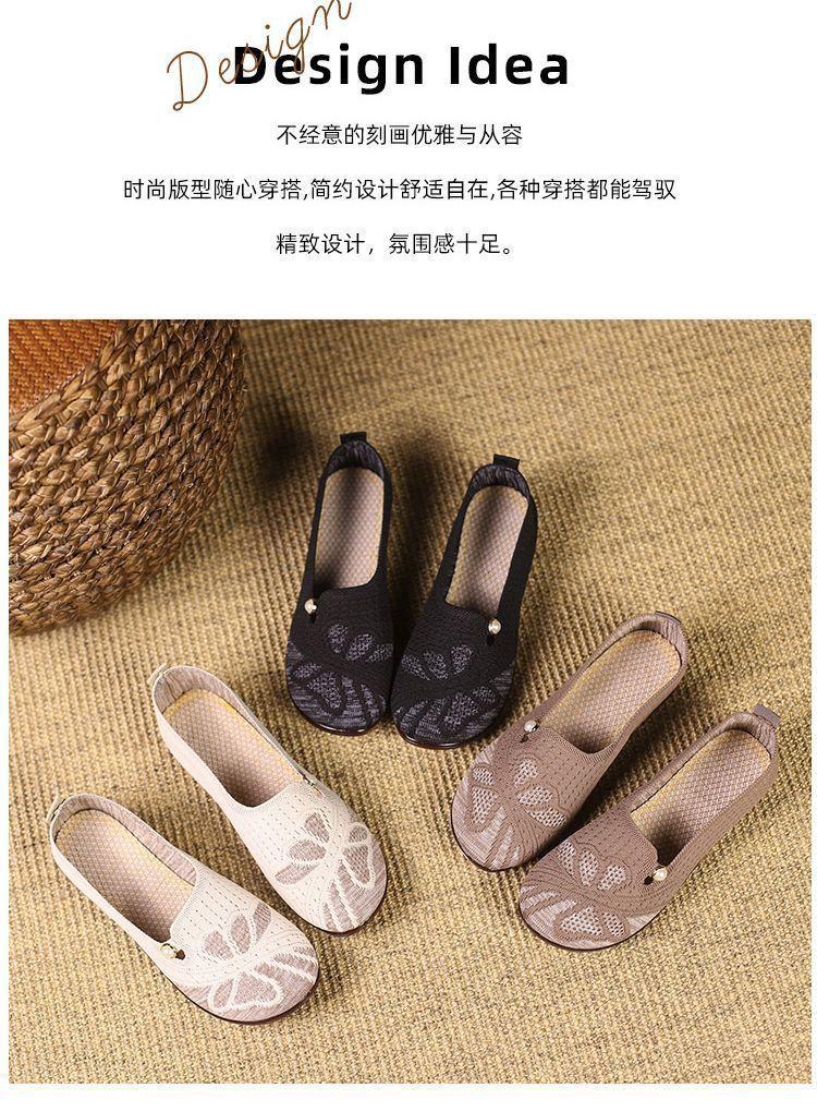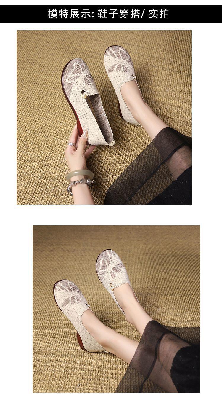 Zapatos de madre antideslizantes y resistentes al desgaste 2025 verano y otoño nuevo estilo zapatos de tela de Pekín antiguos mocasines de malla planos para mujer de tacón plano