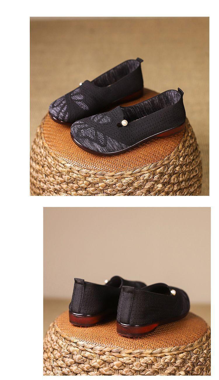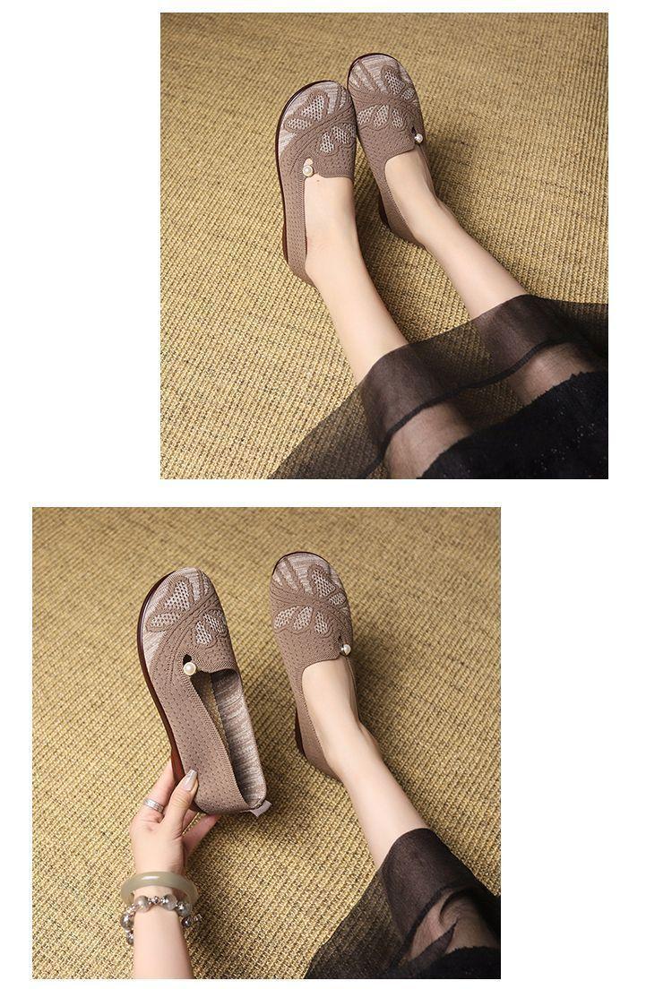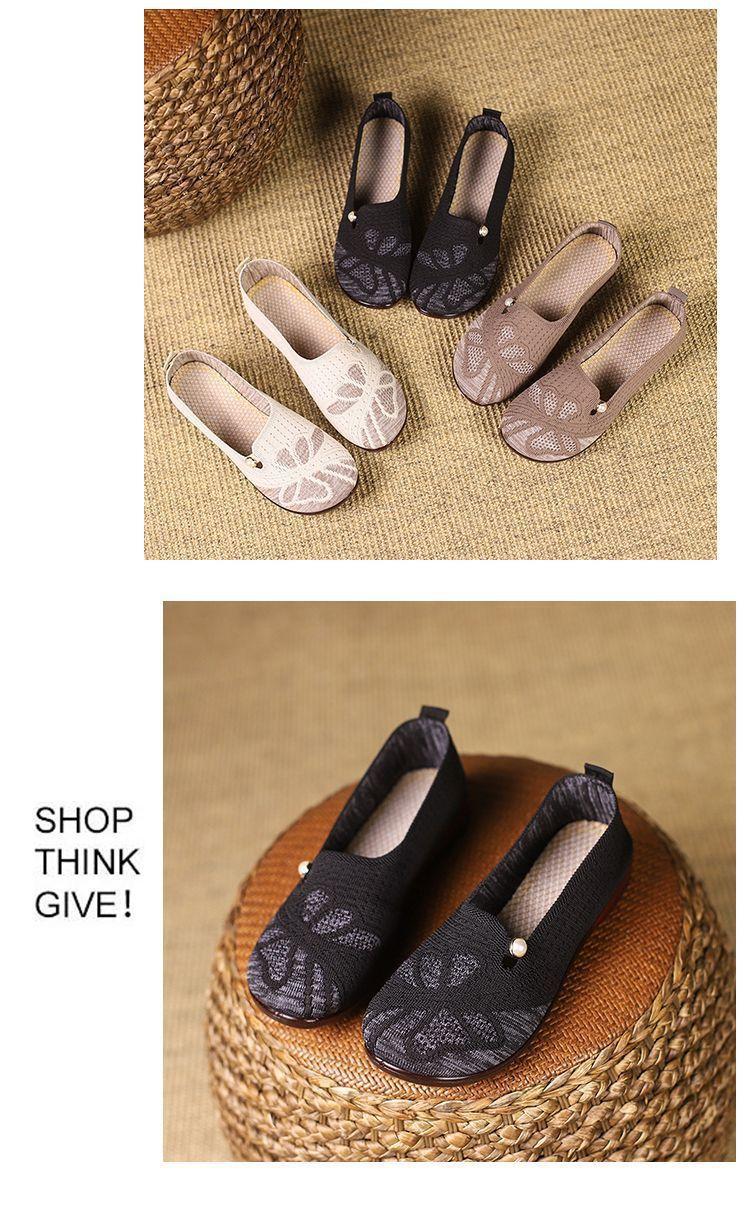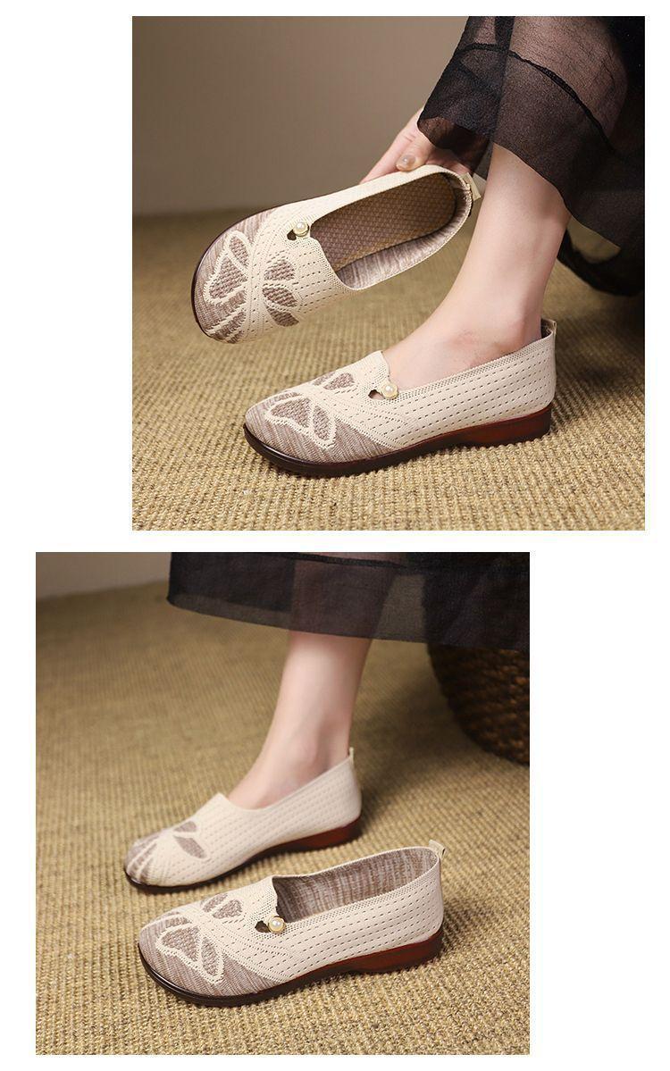 Zapatos de madre antideslizantes y resistentes al desgaste 2025 verano y otoño nuevo estilo zapatos de tela de Pekín antiguos mocasines de malla planos para mujer de tacón plano