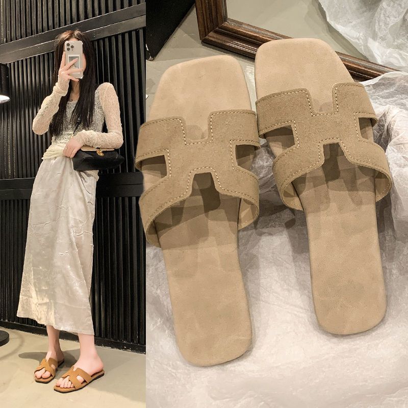 Sandalias planas francesas para exterior, tipo slip-on, para mujer, verano 2025, nuevo estilo de hada, retro, para playa