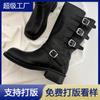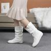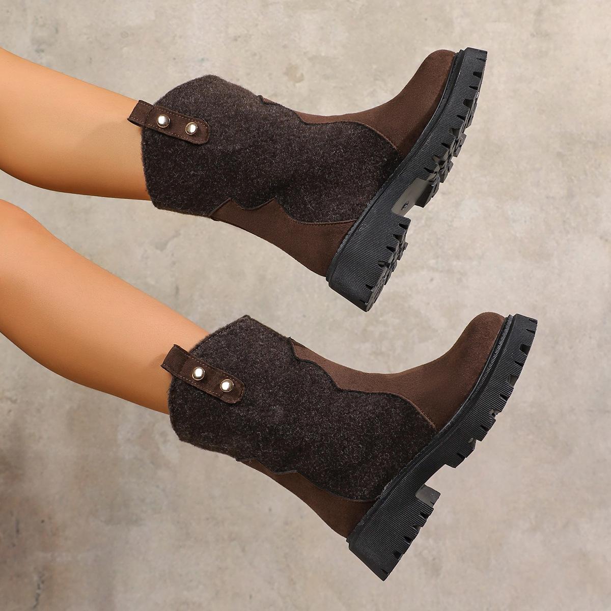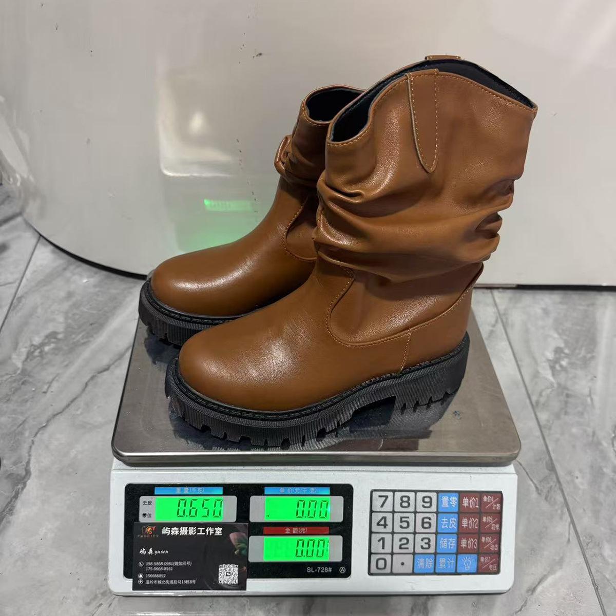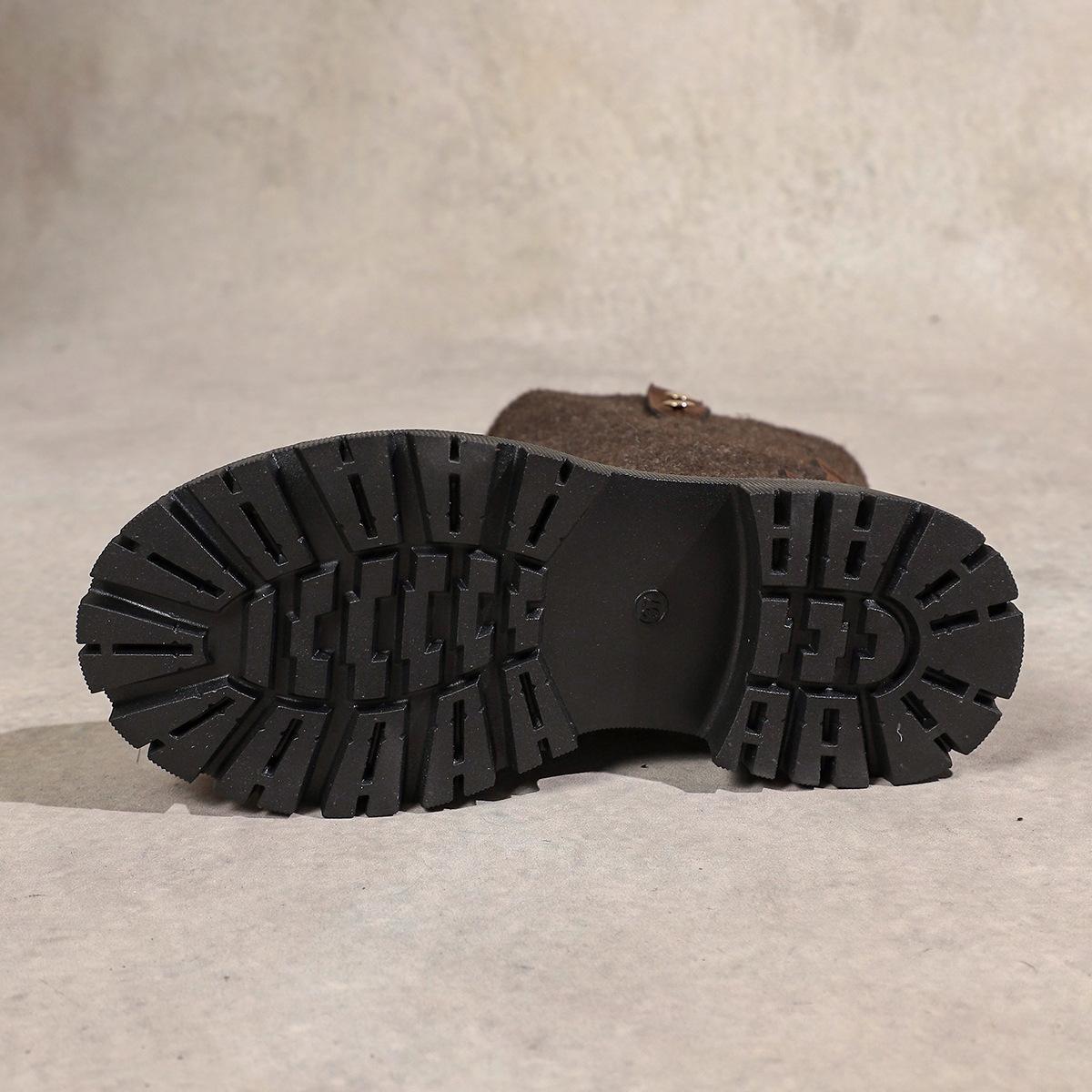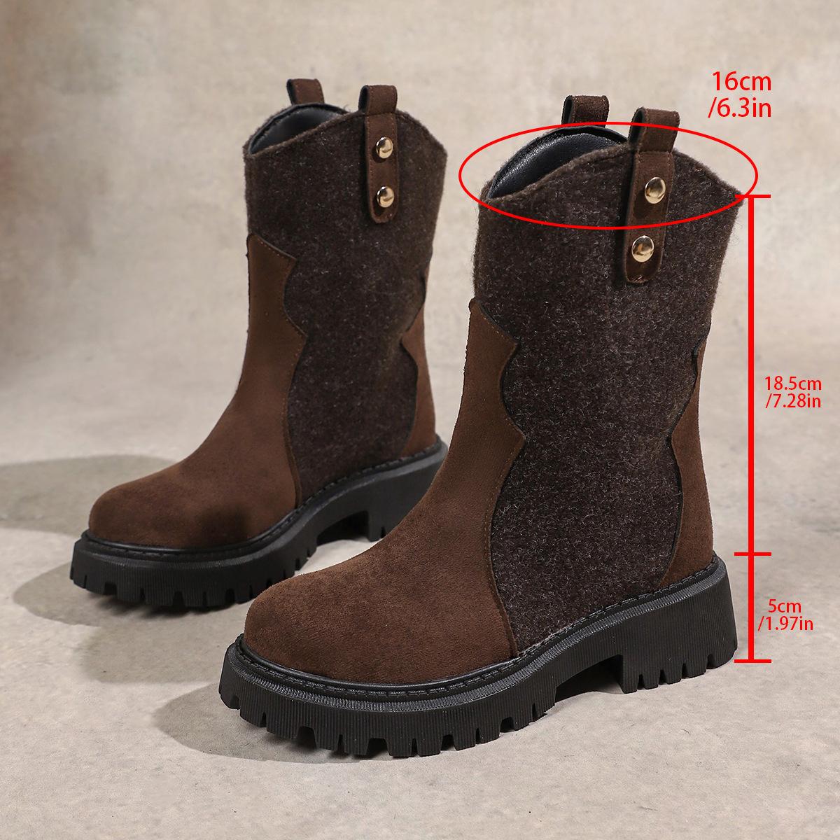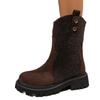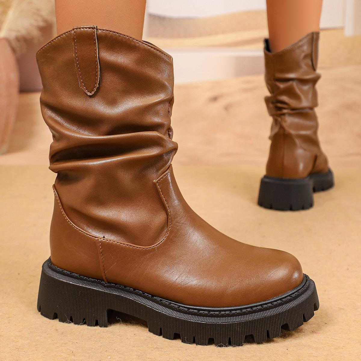Botas Retro de Invierno hasta la Mitad de la Pantorrilla Apiladas hasta la Mitad de la Pantorrilla para Mujer 2025 Otoño Nuevas Botas Western Martin Punta Redonda Drapeadas Tipo Chimenea Talla Grande