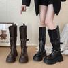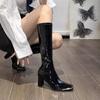 Botas elásticas de charol por encima de la rodilla para mujer, punta cuadrada pequeña, botas adelgazantes, tacón grueso, botas individuales de primavera y otoño, botas negras hasta el muslo, tacón alto