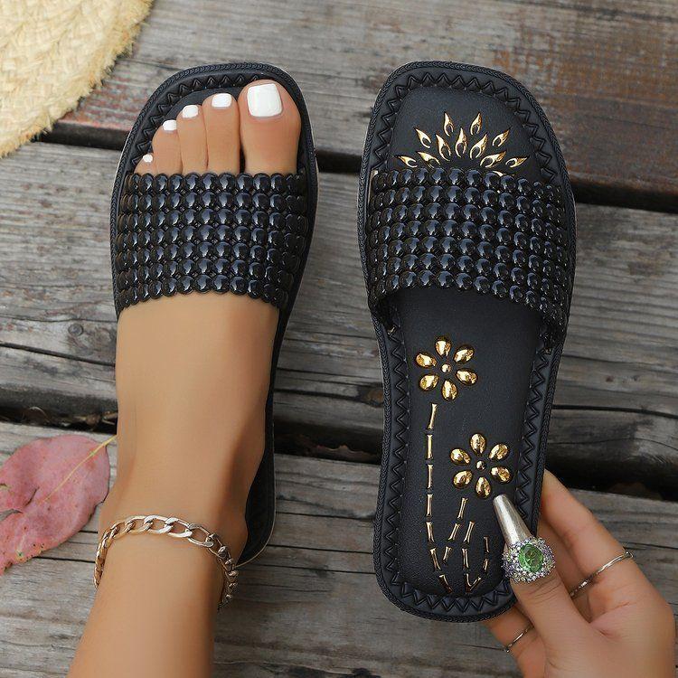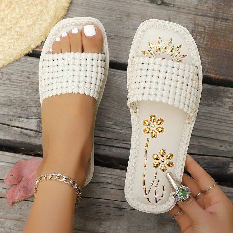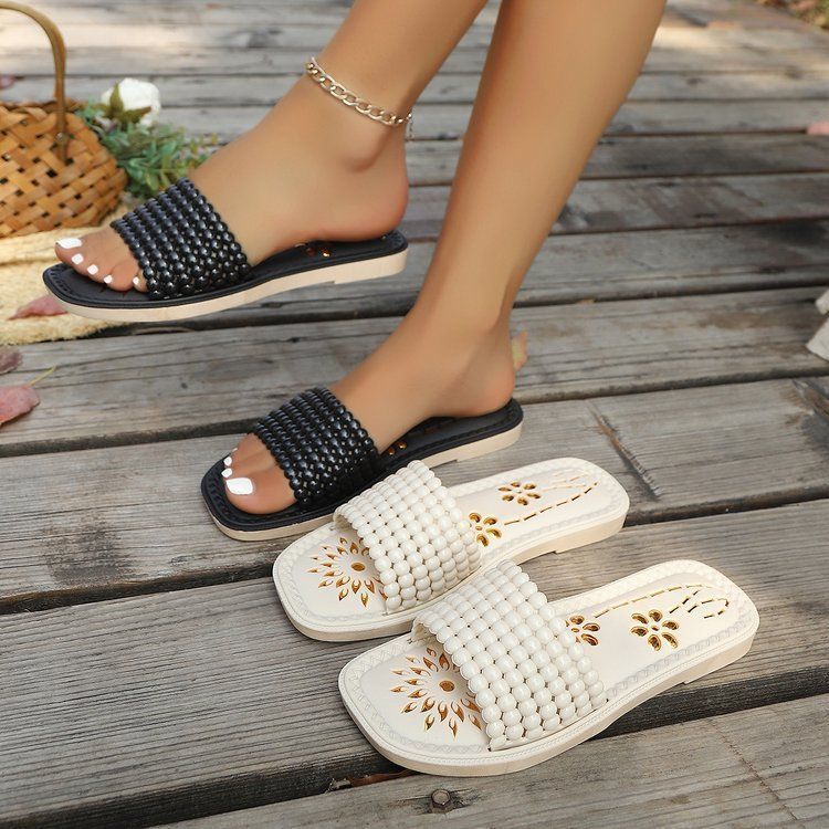 2025 Nueva Moda de Verano Versátiles Flats Estilo Hada Sandalias y Pantuflas para Exterior Celebridad de Internet Pantuflas Antideslizantes