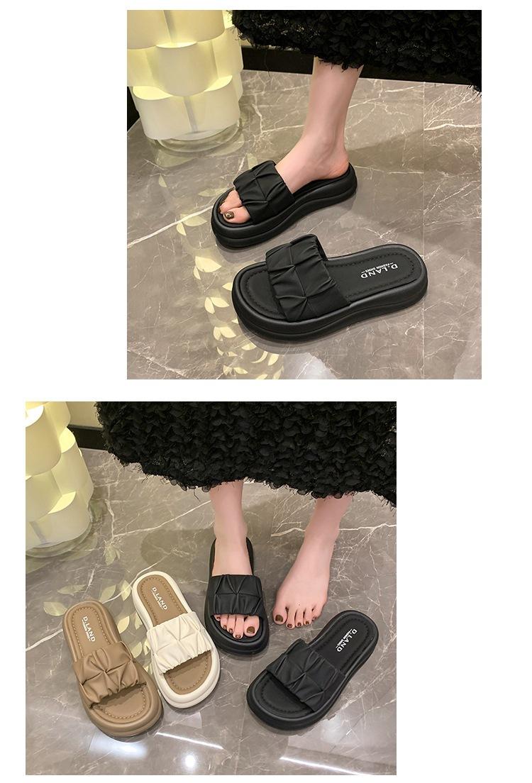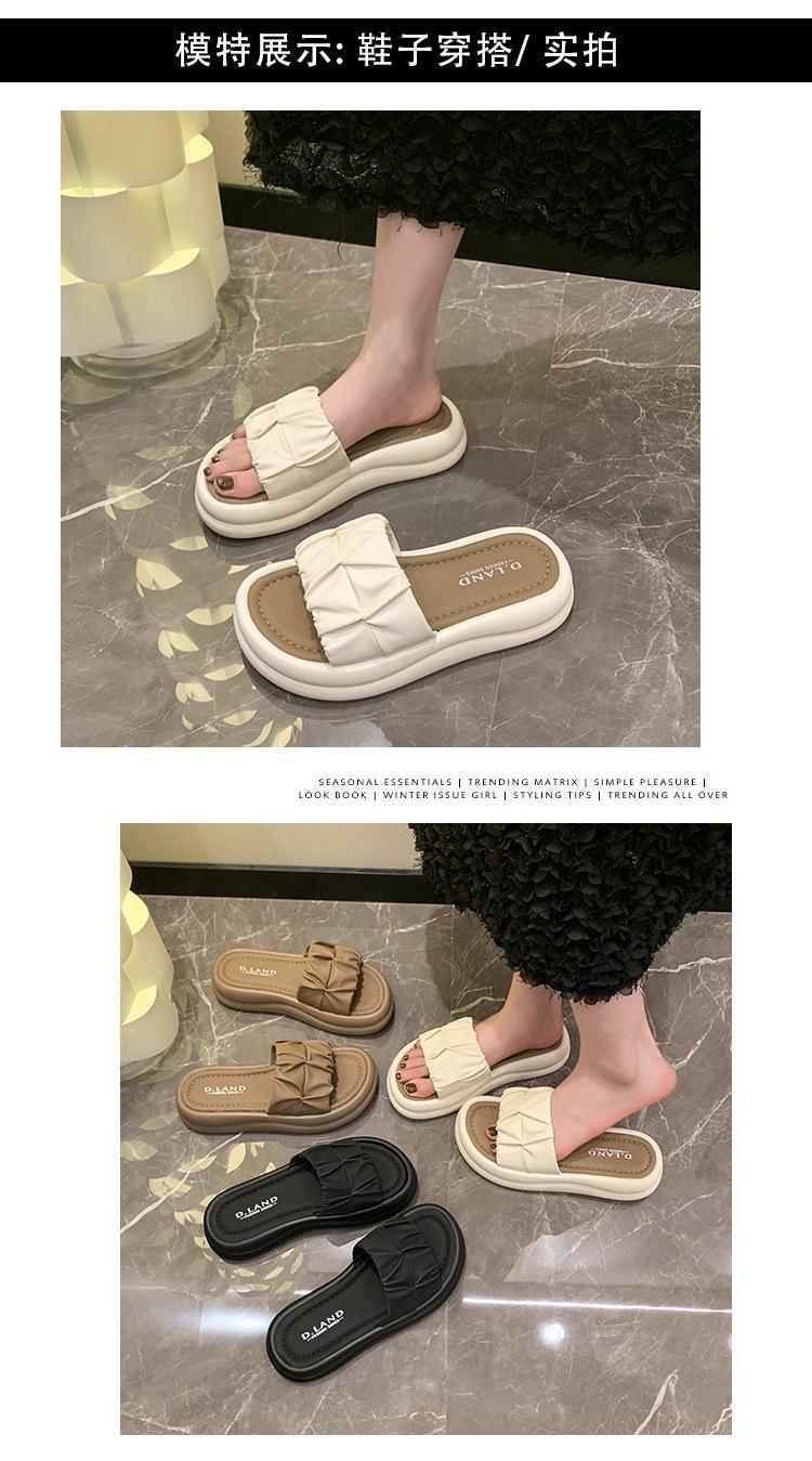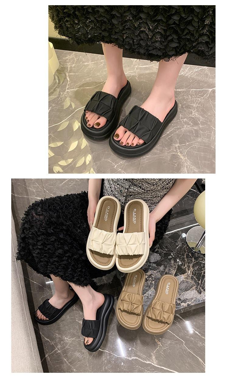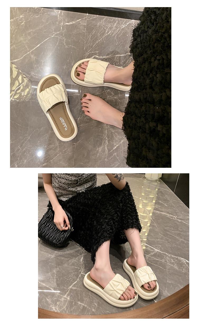 Pantuflas para Verano para Mujer para Exterior 2025 Nueva Moda Sandalias de Plataforma de Suela Gruesa Celebridad de Internet Antideslizantes Playa Pantuflas Plisadas