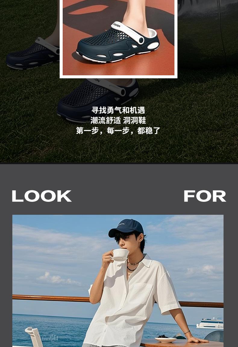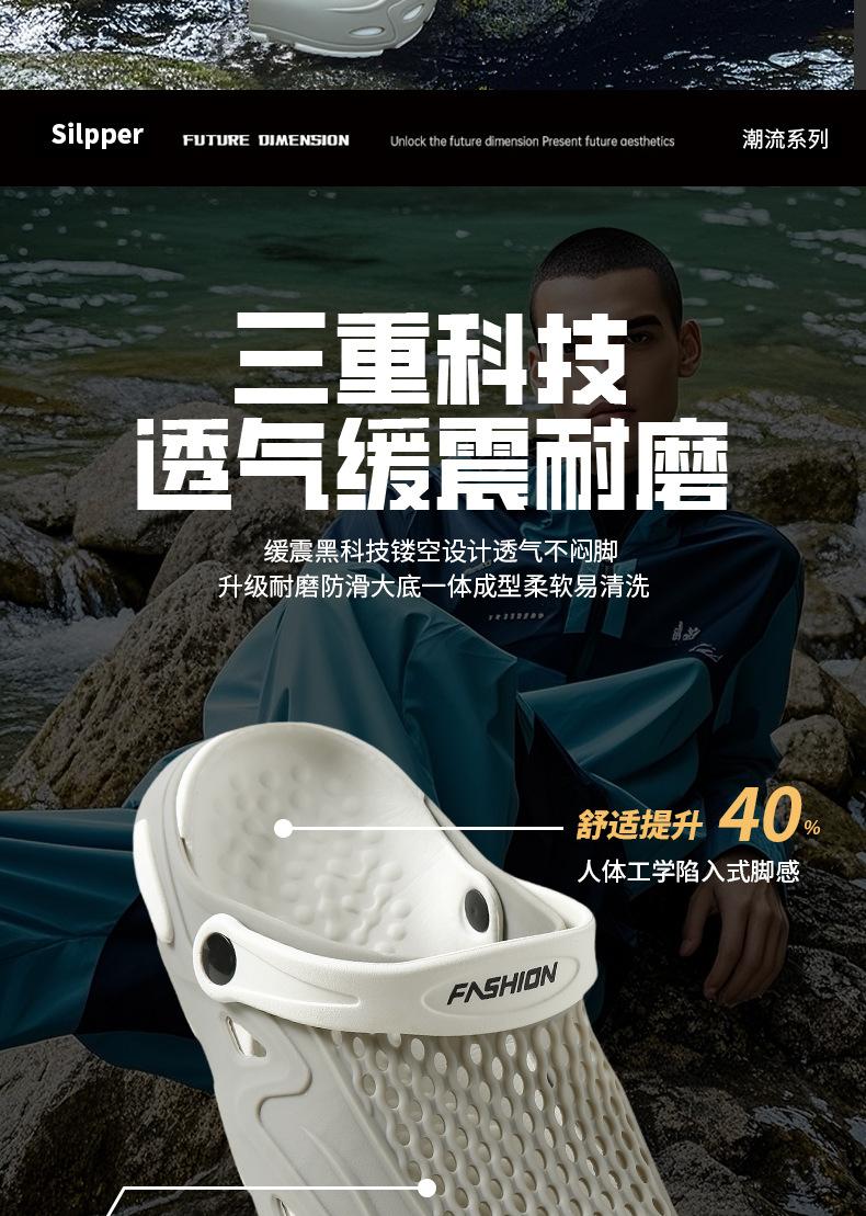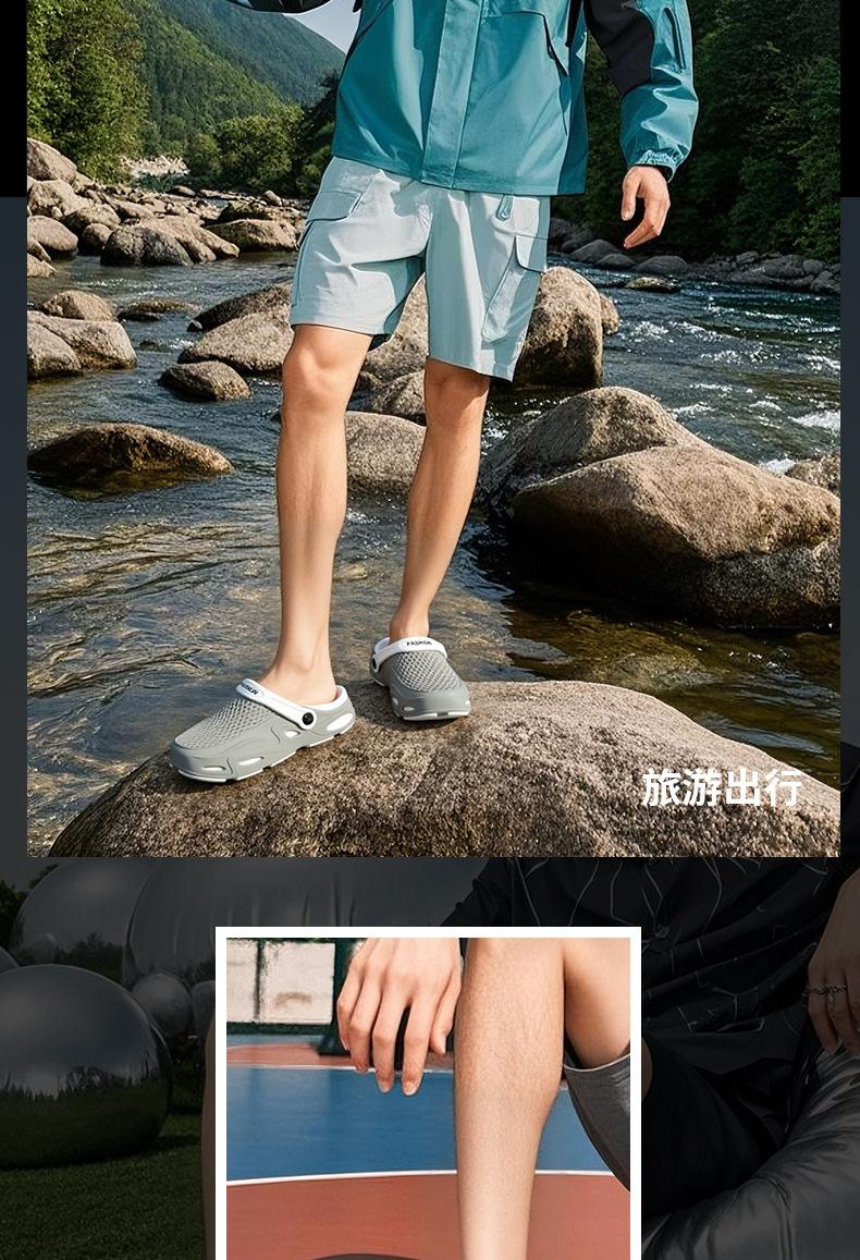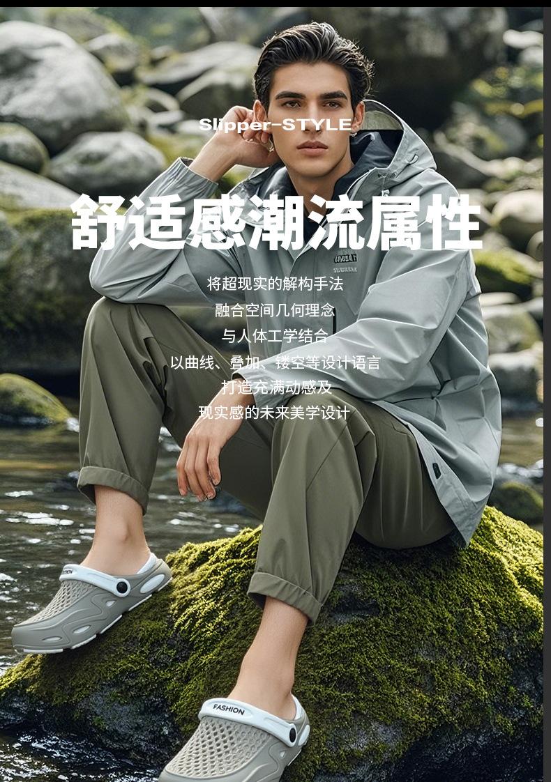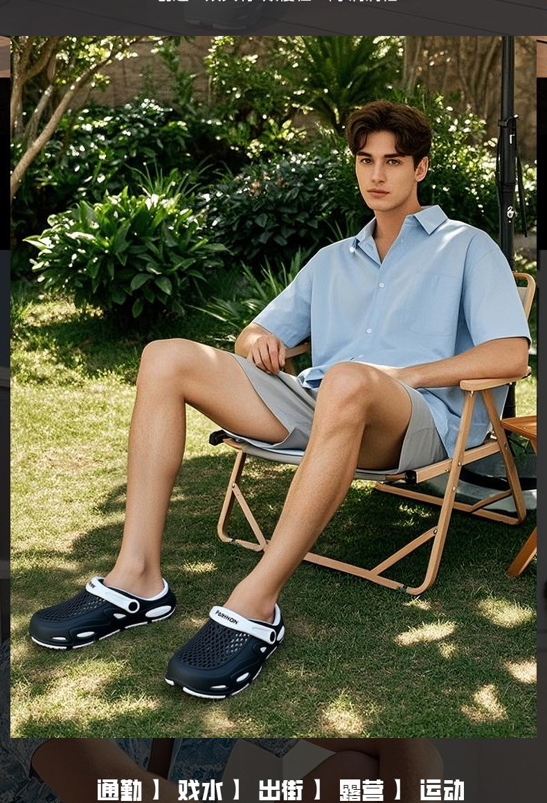 2025 Nuevo Verano Exterior Zapatos de Agujeros para Hombre Ropa Exterior Suela Suave Suela Gruesa Malla Hebilla Sandalias y Pantuflas para Hombre
