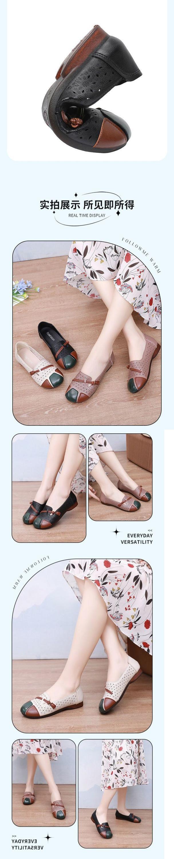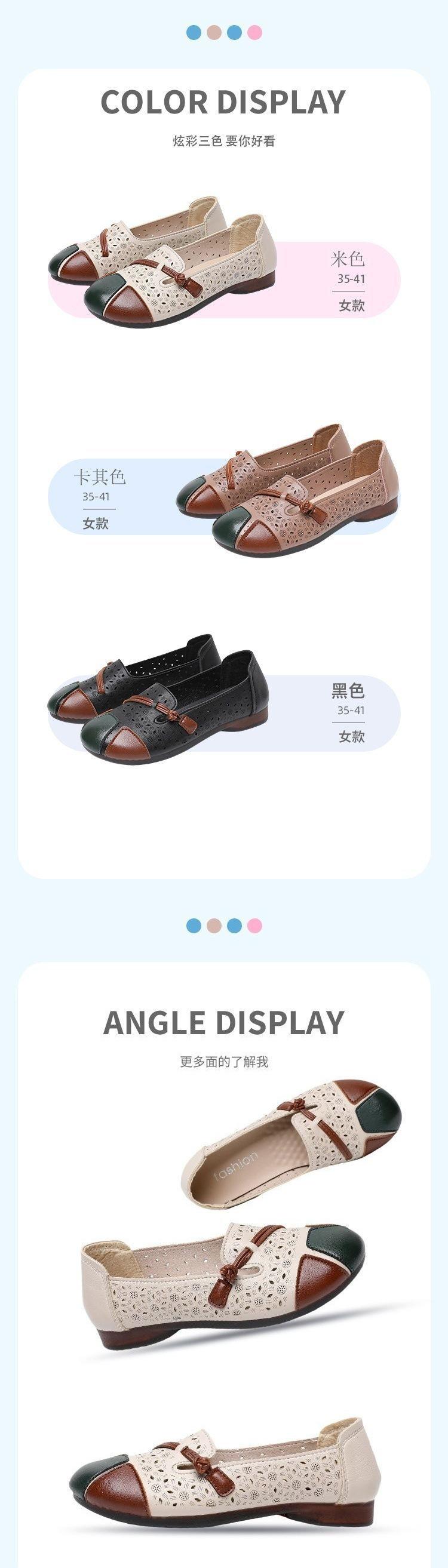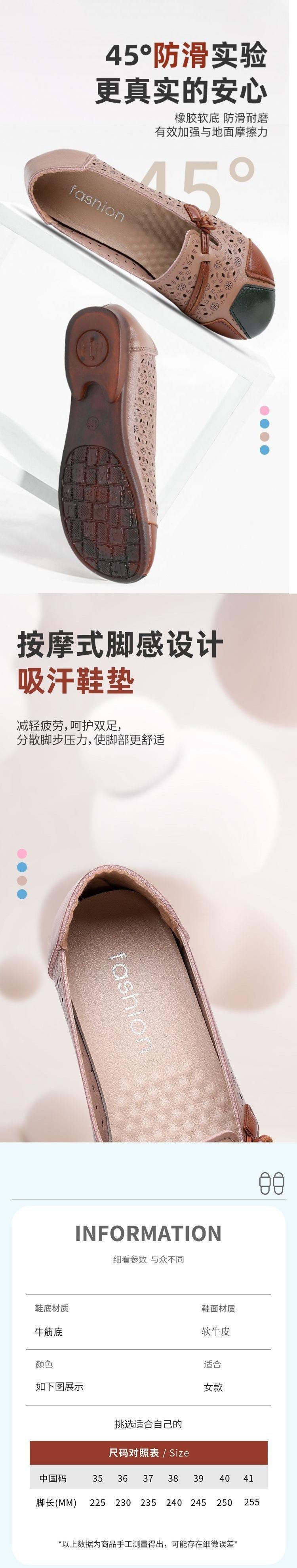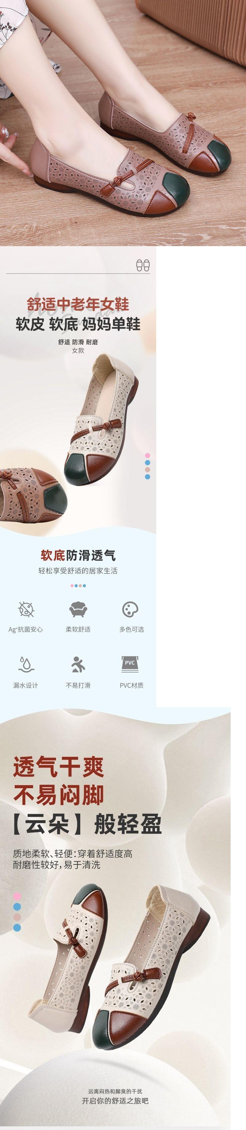 Sandalias Zapatos de Verano para Mamá Nuevos Cómodos Suela Suave Huecos para Mediana Edad Cuero Genuino Zapatos Planos Zuecos para Mujeres de Mediana Edad y Mayores