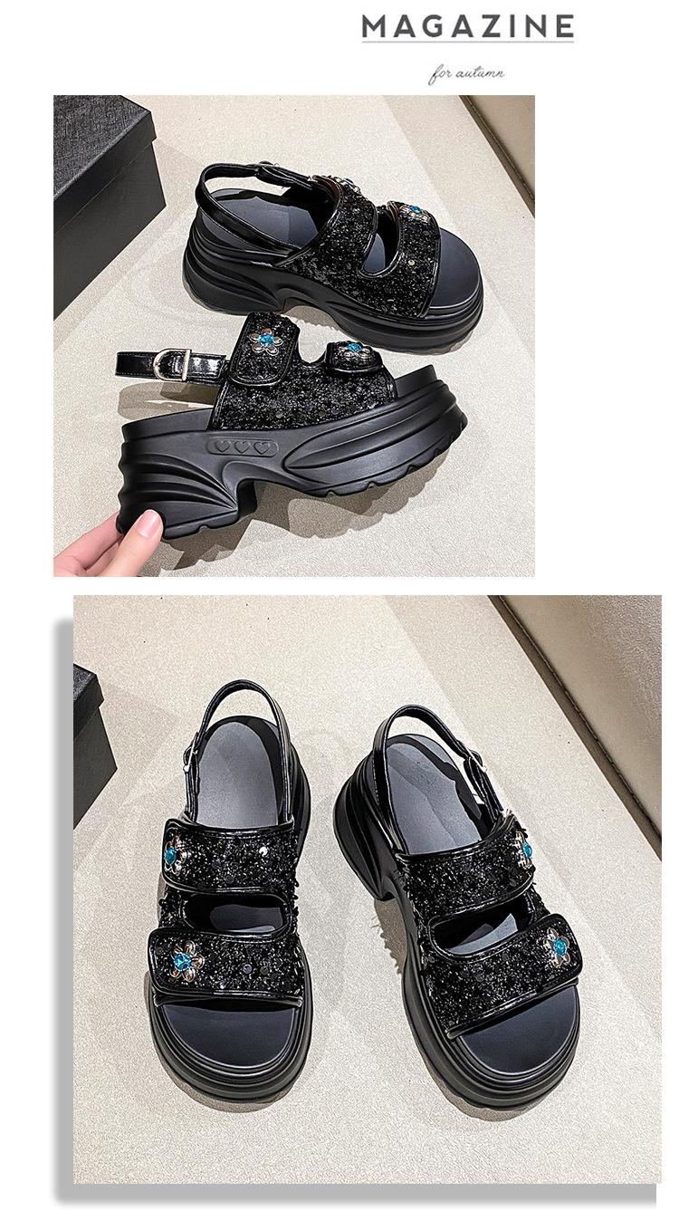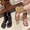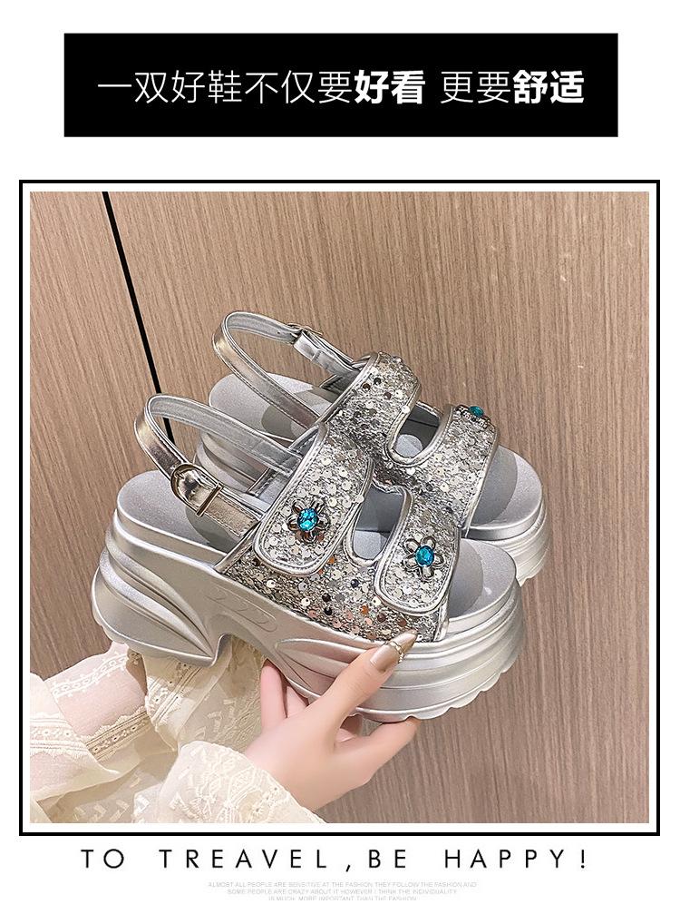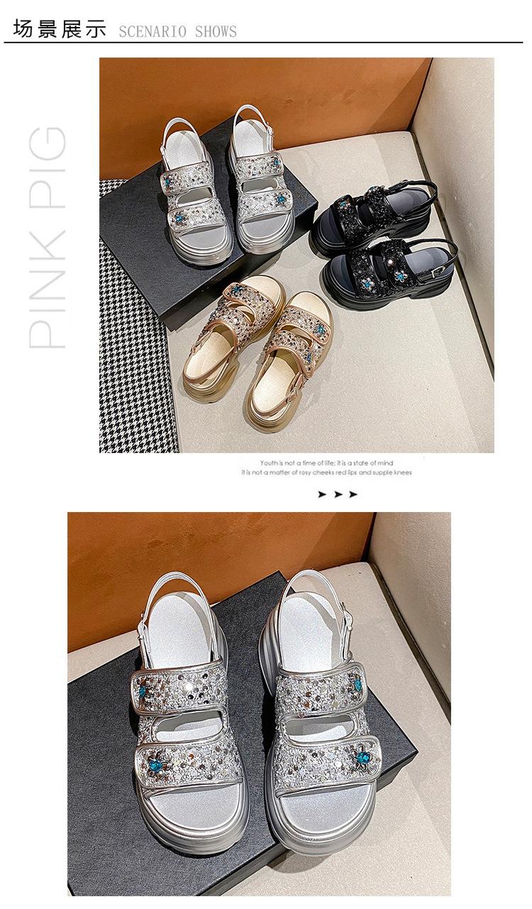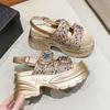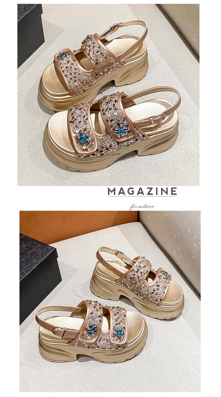 Sandalias de Plataforma Gruesa de Moda para Mujer 2025 Nuevo Verano Tacón de Cuña Correa de Una Línea Combinación de Colores Versátil Sandalias Romanas Casuales de Moda