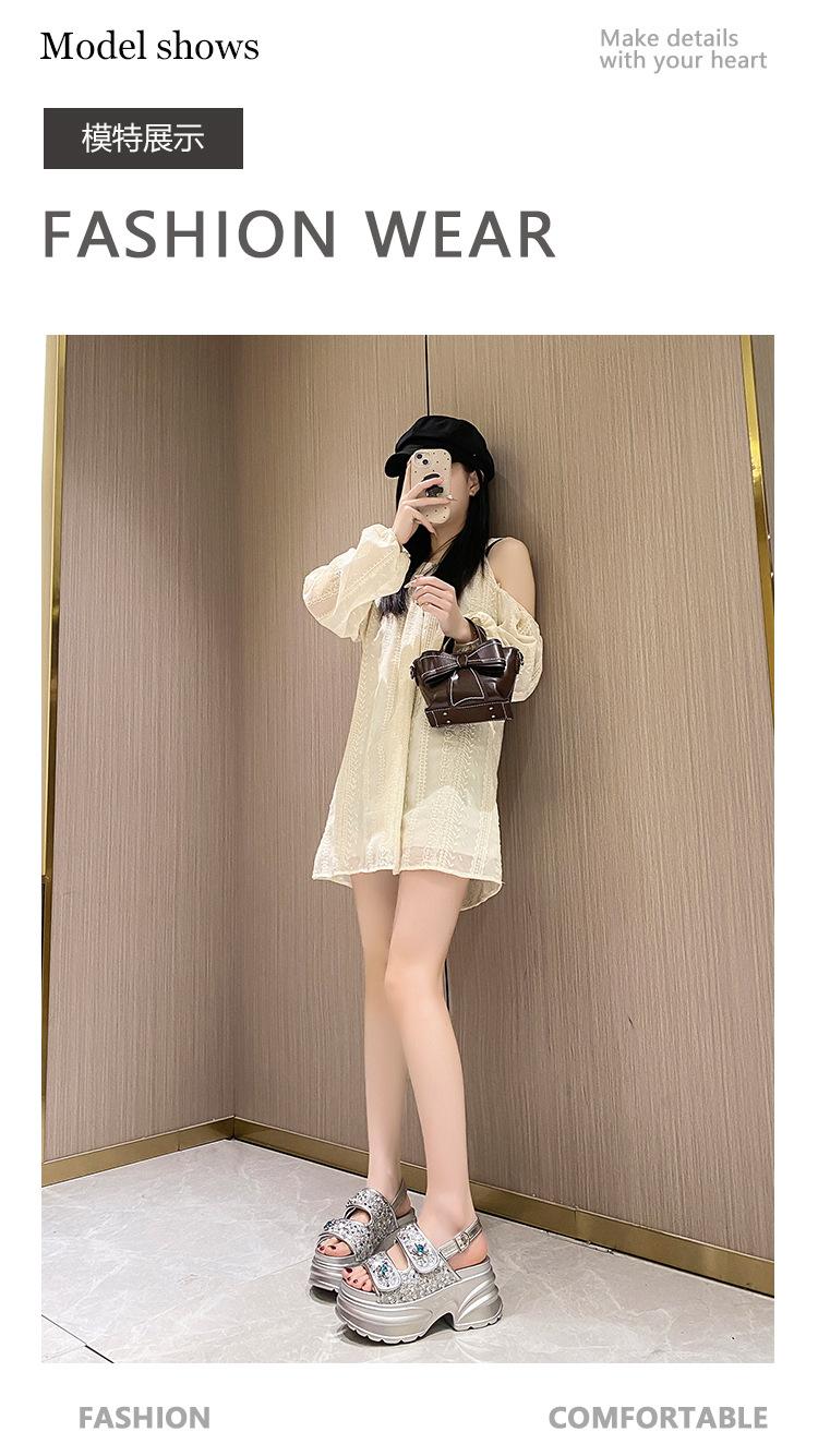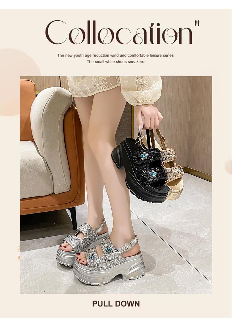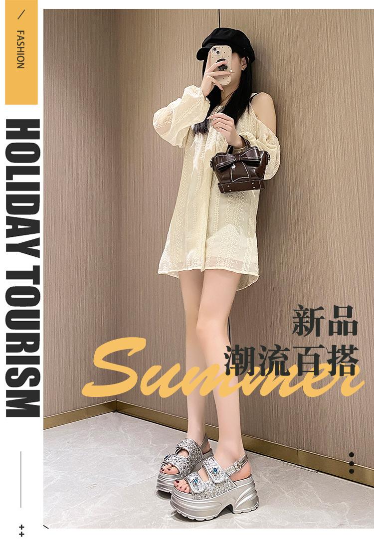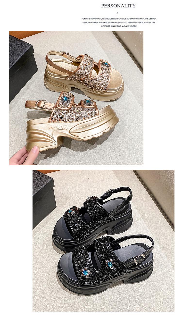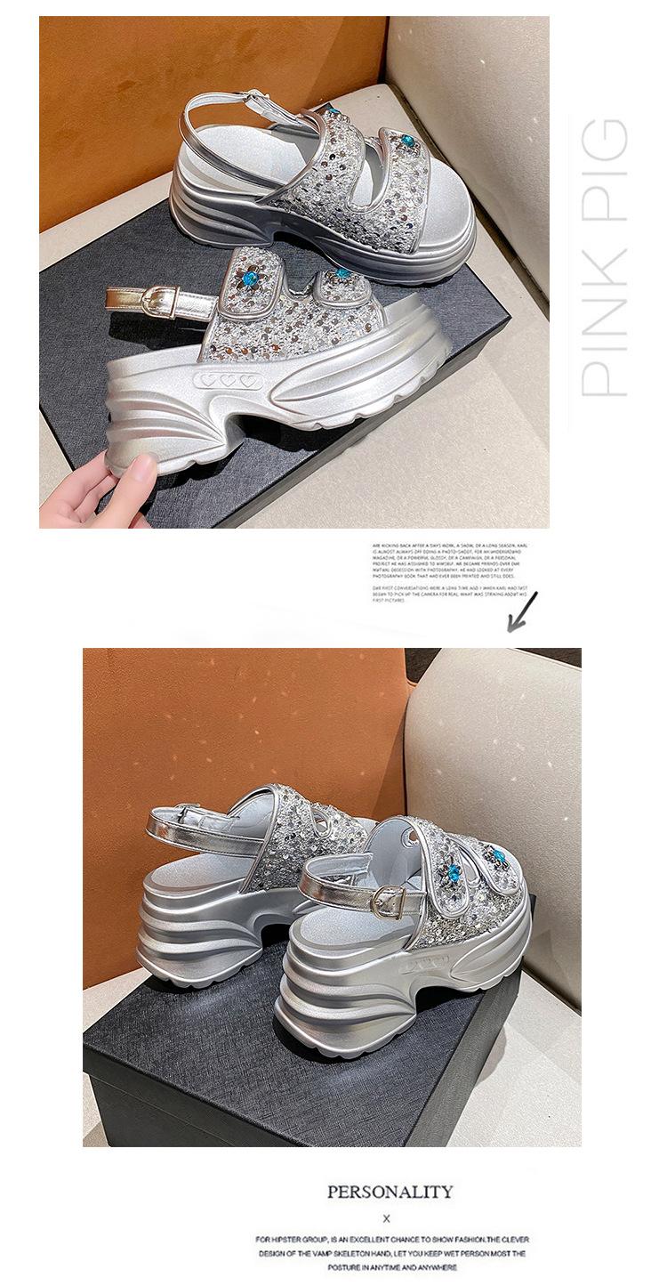Sandalias de Plataforma Gruesa de Moda para Mujer 2025 Nuevo Verano Tacón de Cuña Correa de Una Línea Combinación de Colores Versátil Sandalias Romanas Casuales de Moda