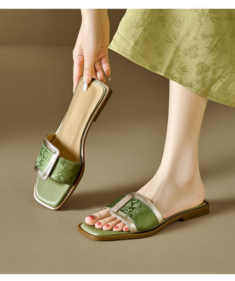 Sandalias para Verano para Mujer 2025 Nuevas Chanclas Planas Casuales Nuevo Estilo Chino Puntera Cuadrada
