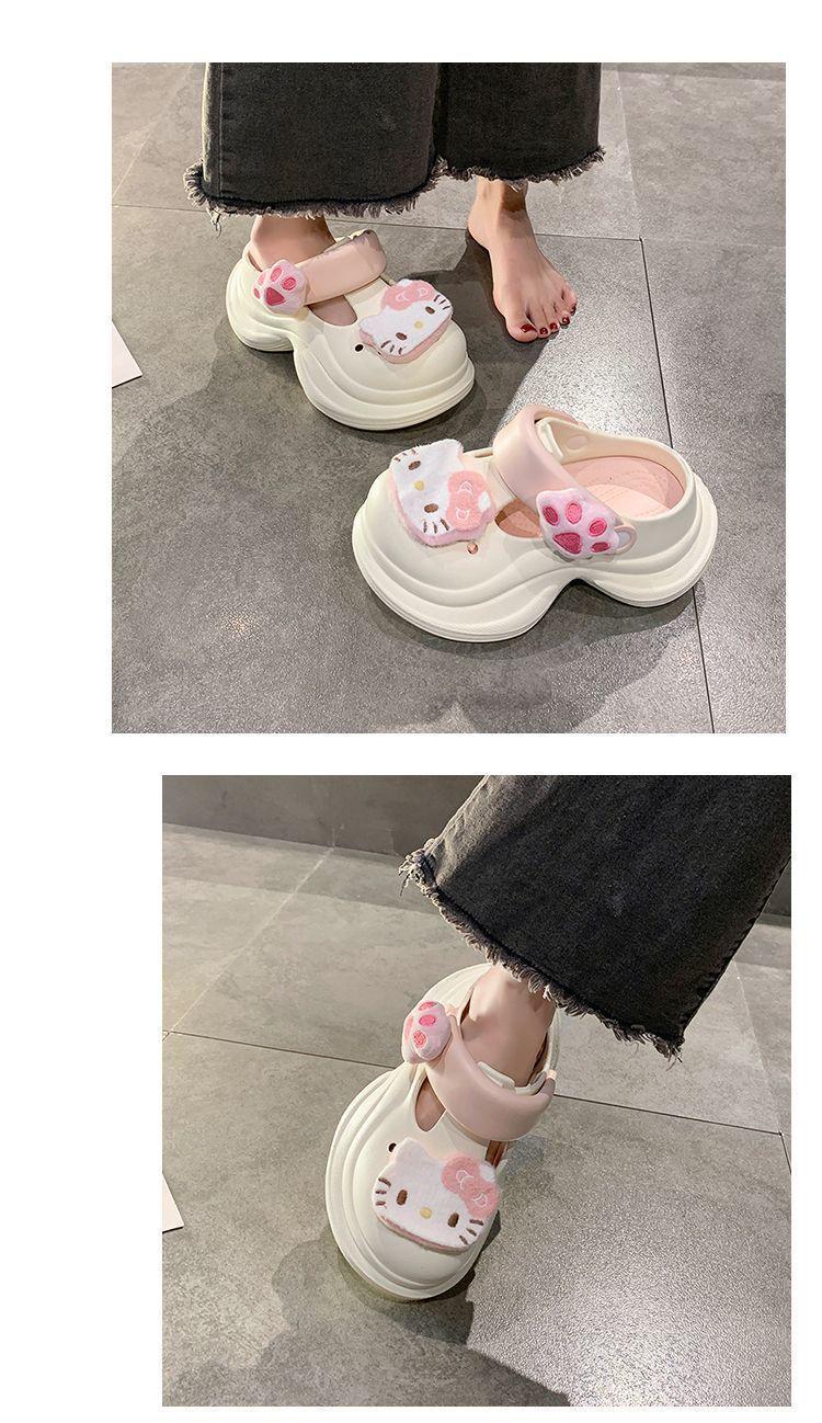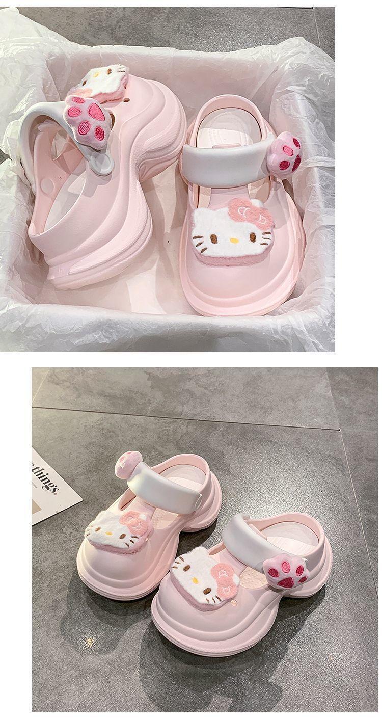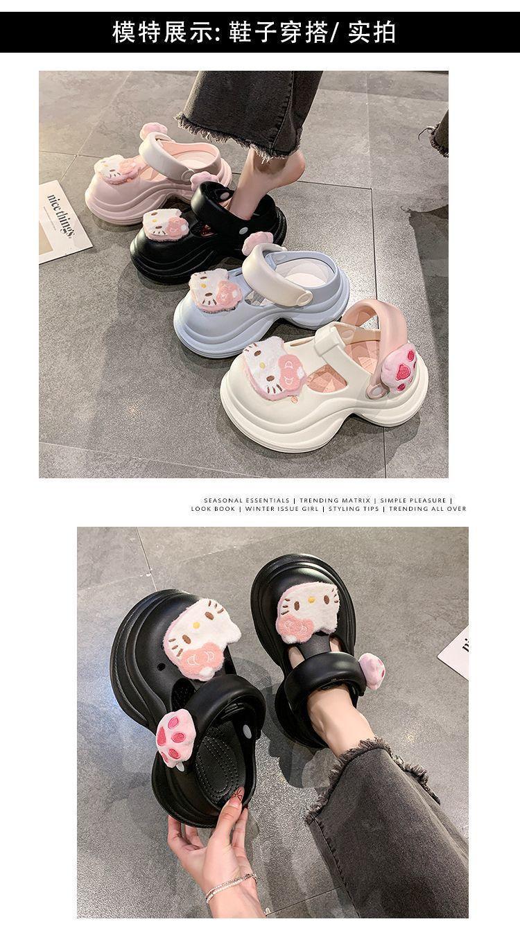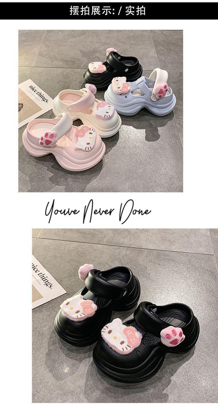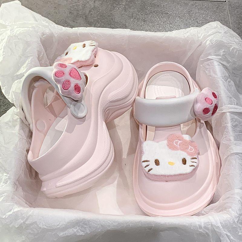 Pantuflas Antideslizantes con Puntera para Uso Exterior 2025 Primavera y Verano Nuevo Lindo Dibujo Animado Hello Kitty Playa Sandalias Cómodas de Suela Gruesa