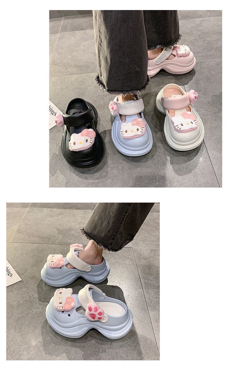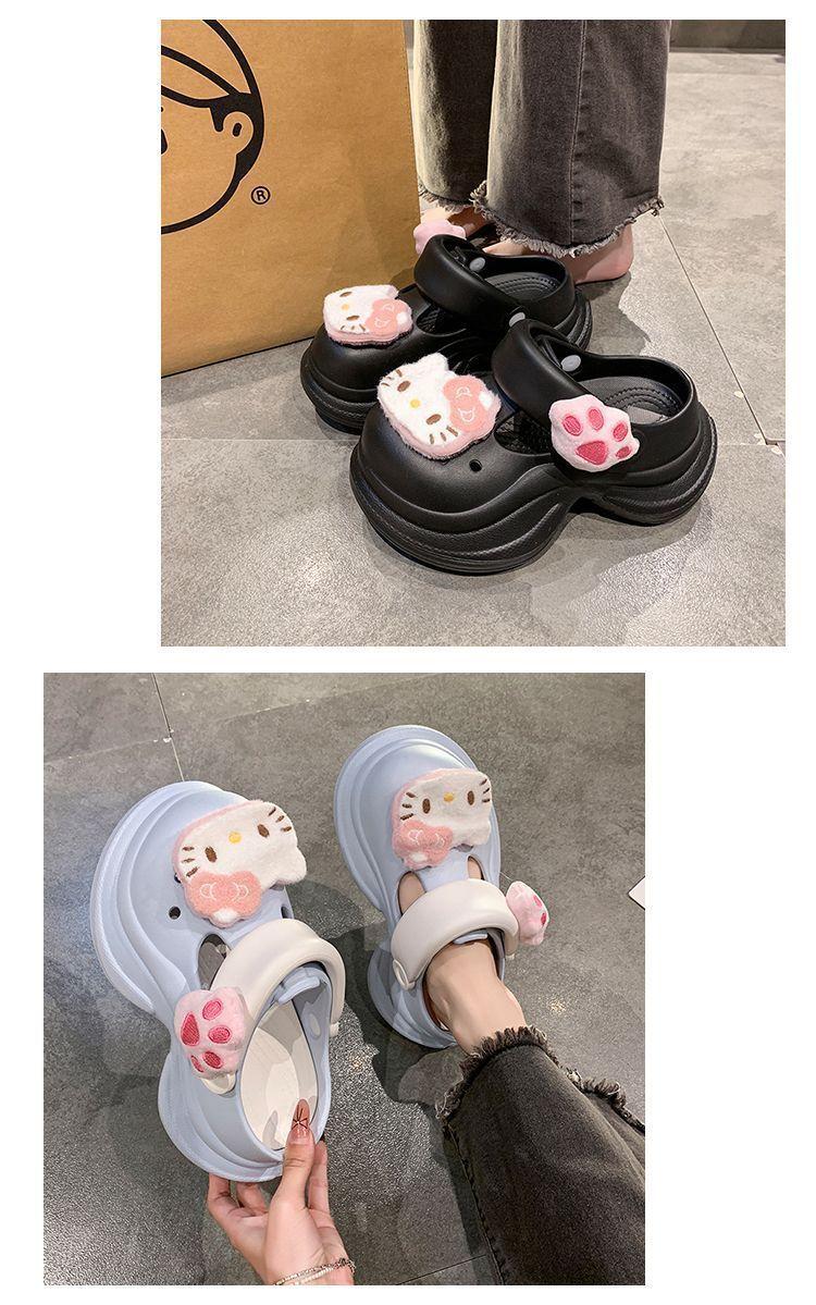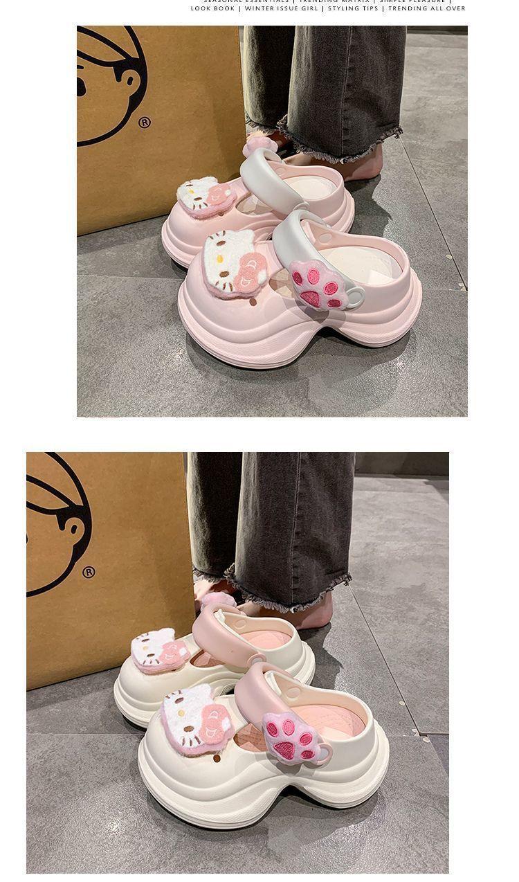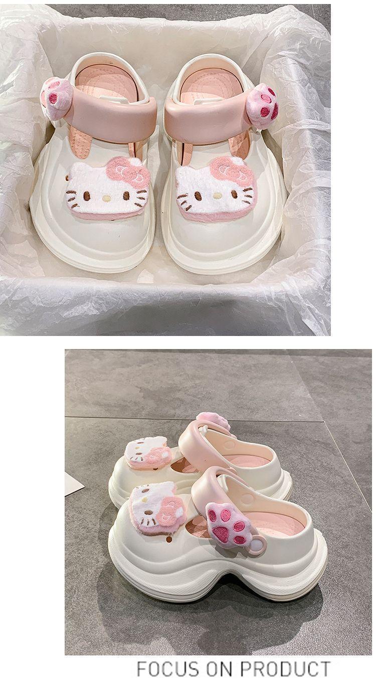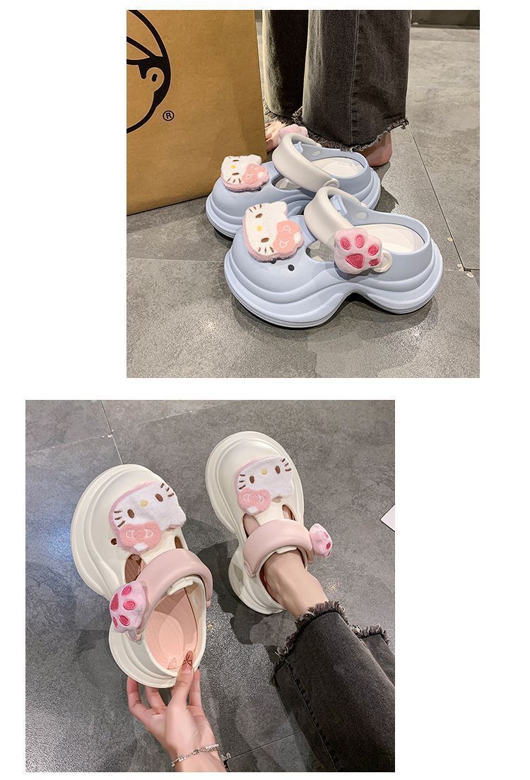 Pantuflas Antideslizantes con Puntera para Uso Exterior 2025 Primavera y Verano Nuevo Lindo Dibujo Animado Hello Kitty Playa Sandalias Cómodas de Suela Gruesa