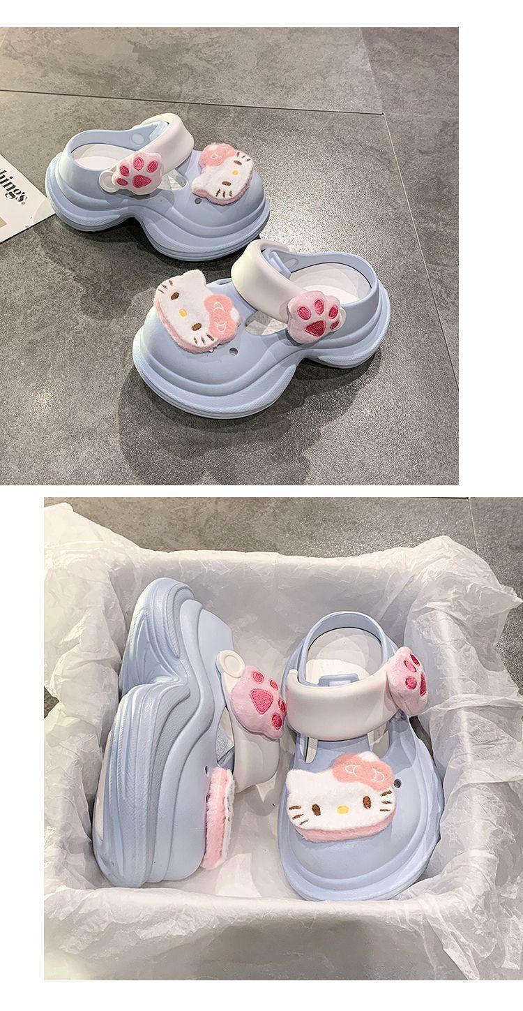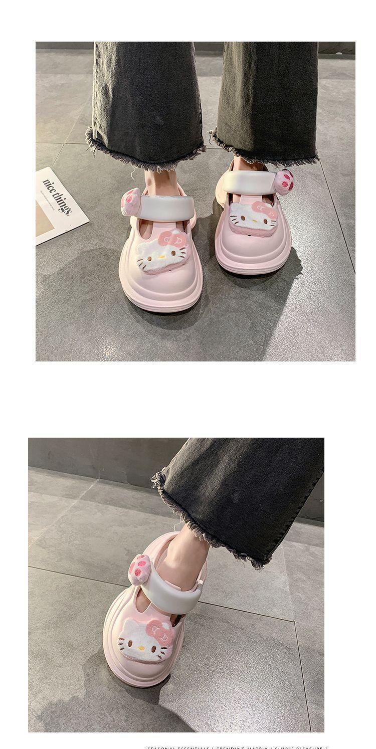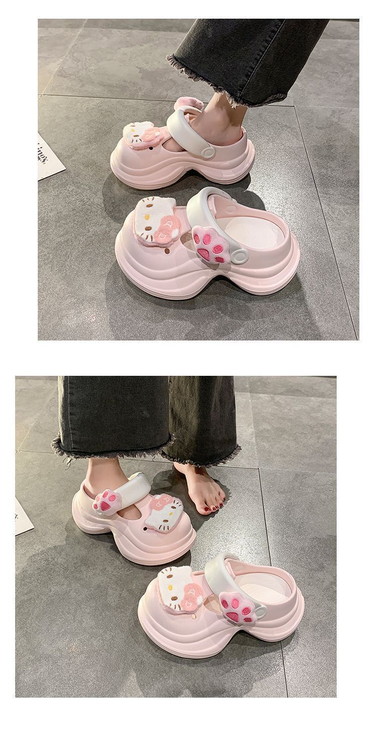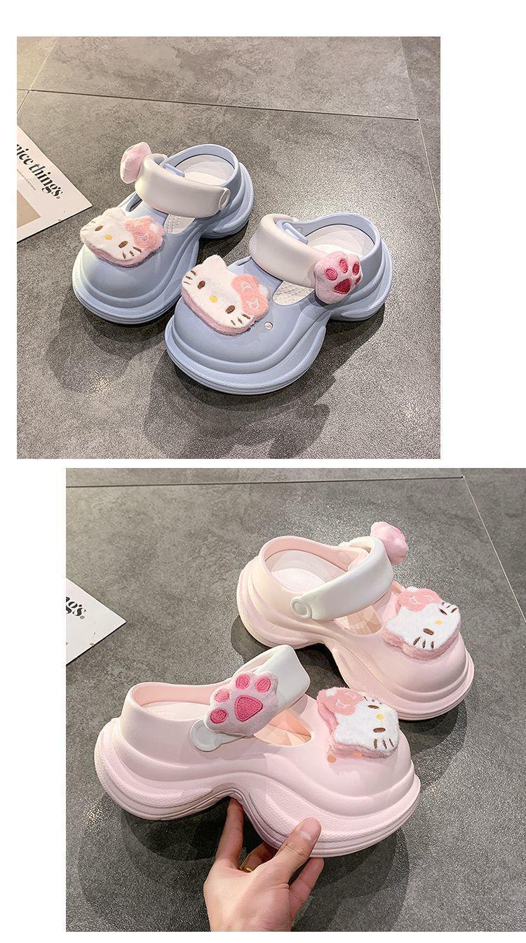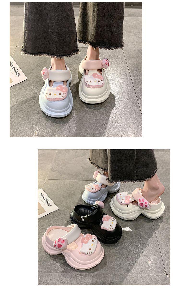 Pantuflas Antideslizantes con Puntera para Uso Exterior 2025 Primavera y Verano Nuevo Lindo Dibujo Animado Hello Kitty Playa Sandalias Cómodas de Suela Gruesa