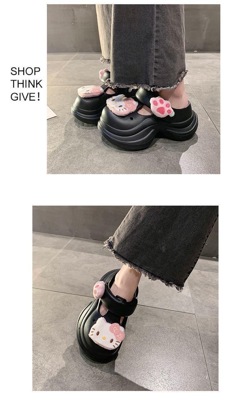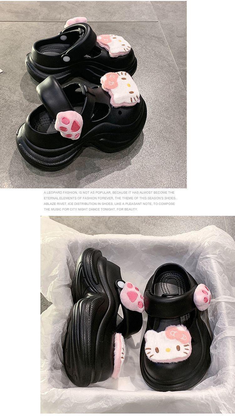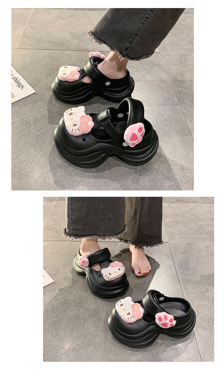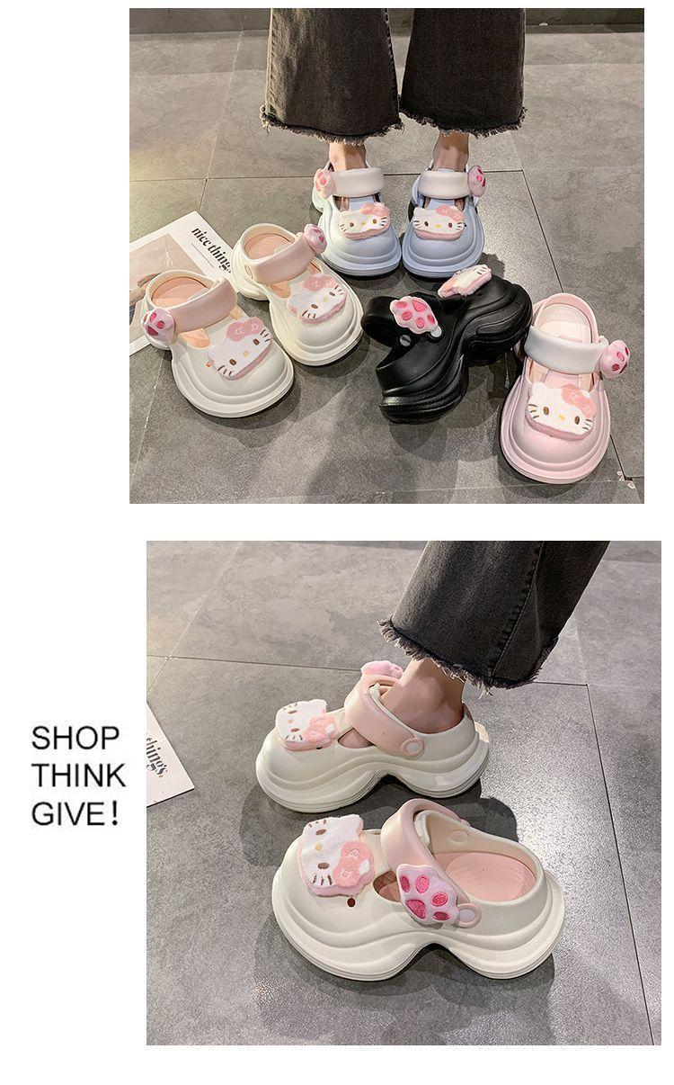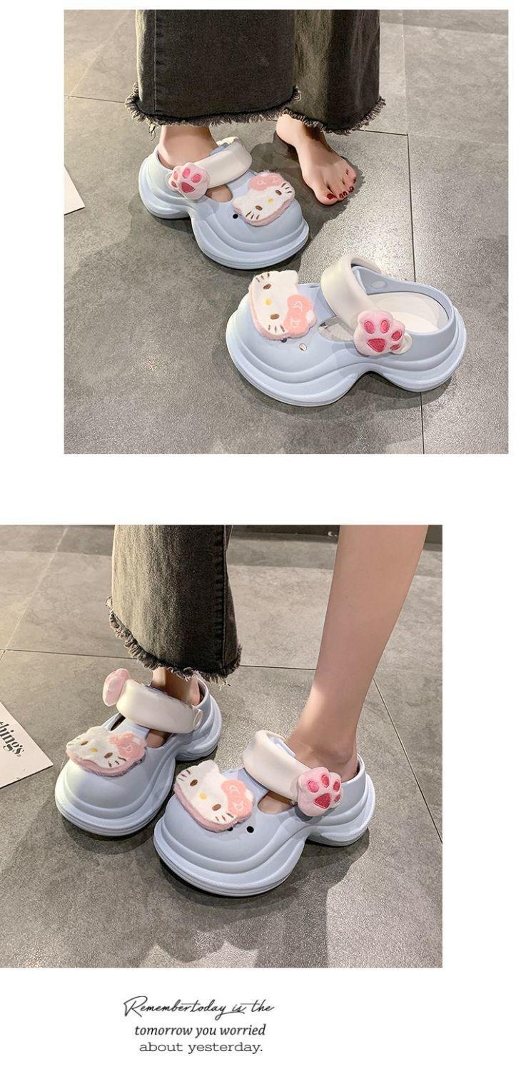 Pantuflas Antideslizantes con Puntera para Uso Exterior 2025 Primavera y Verano Nuevo Lindo Dibujo Animado Hello Kitty Playa Sandalias Cómodas de Suela Gruesa