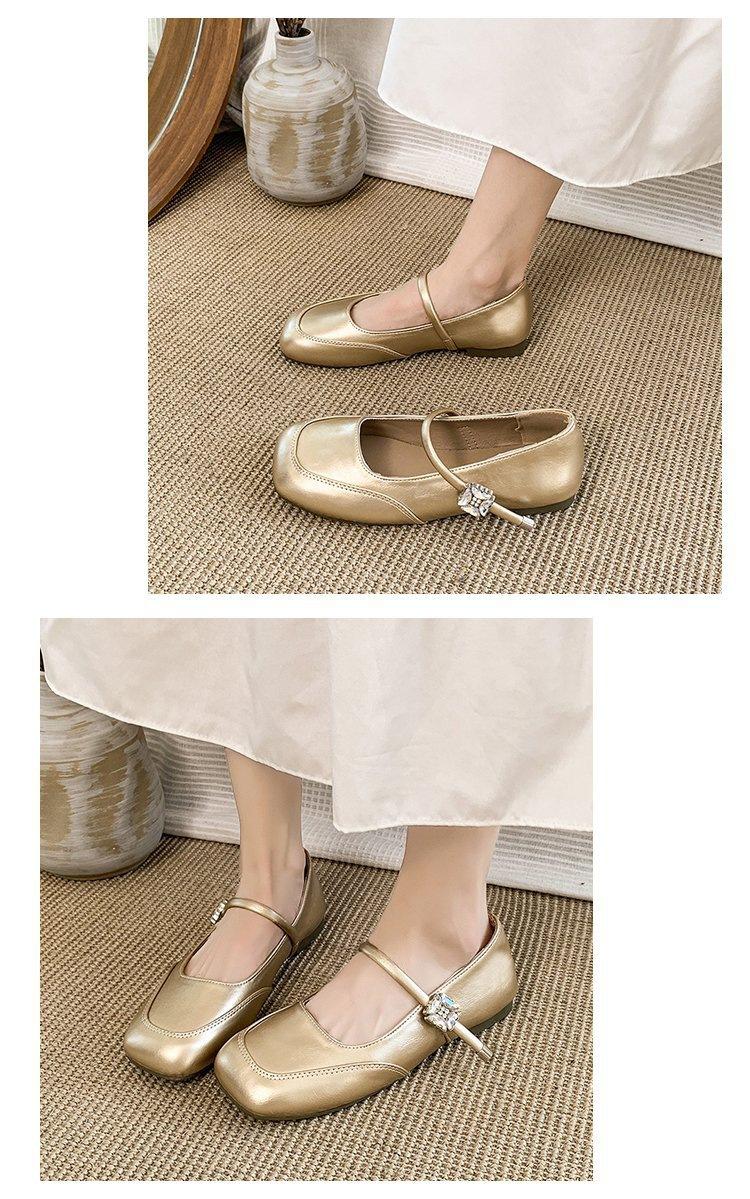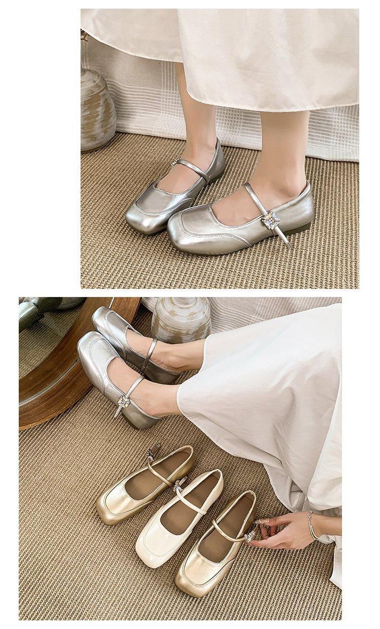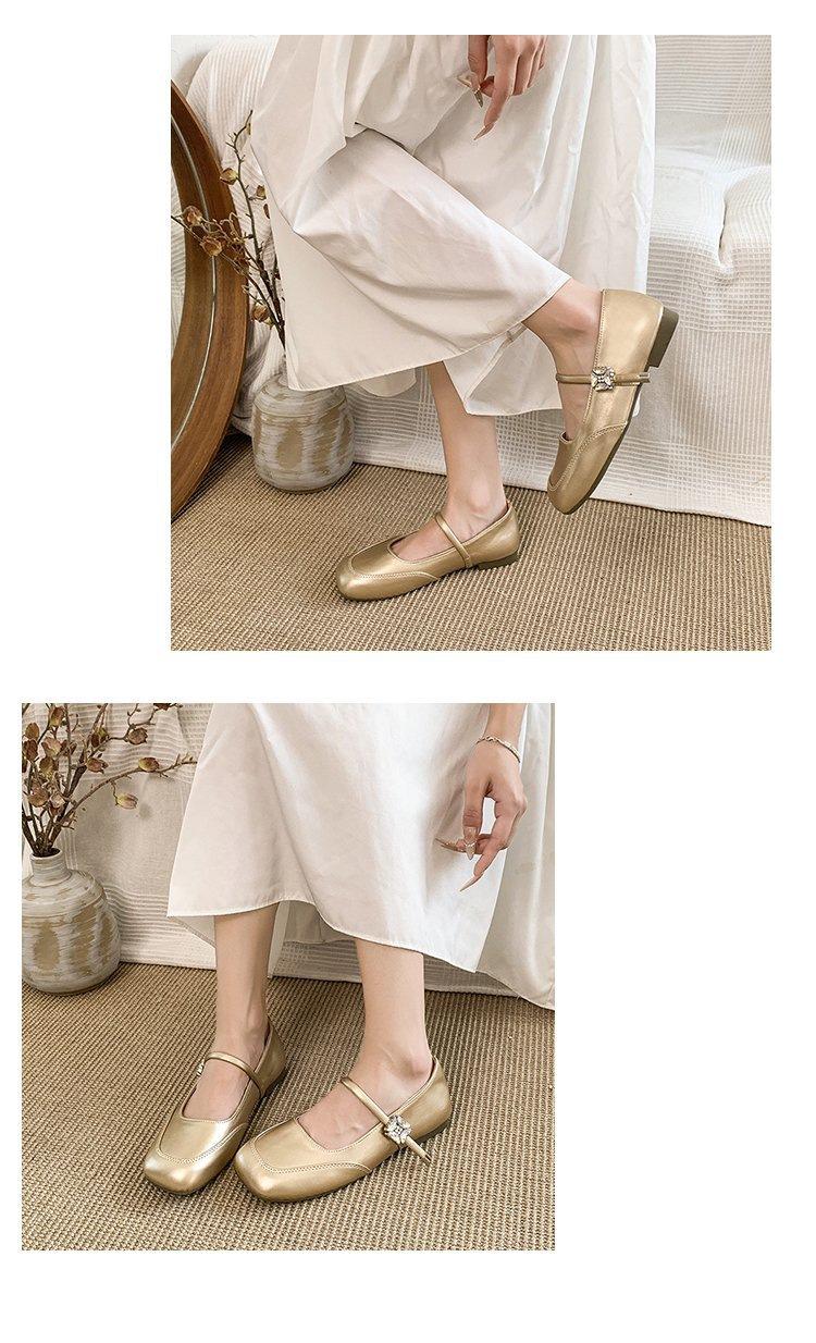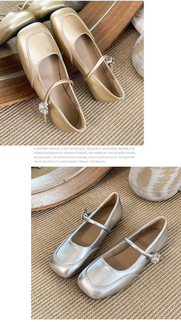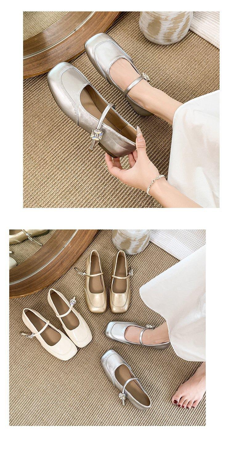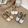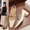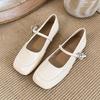 Zapatos individuales elegantes transpirables de punta cuadrada estilo francés, Nuevos Verano 2025 Zapatos retro Mary Jane de cuero pequeño para mujer