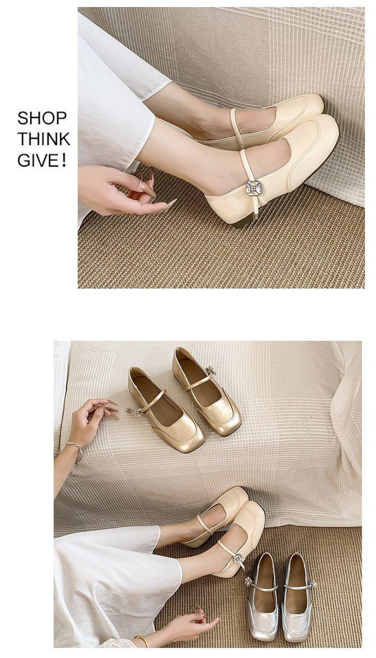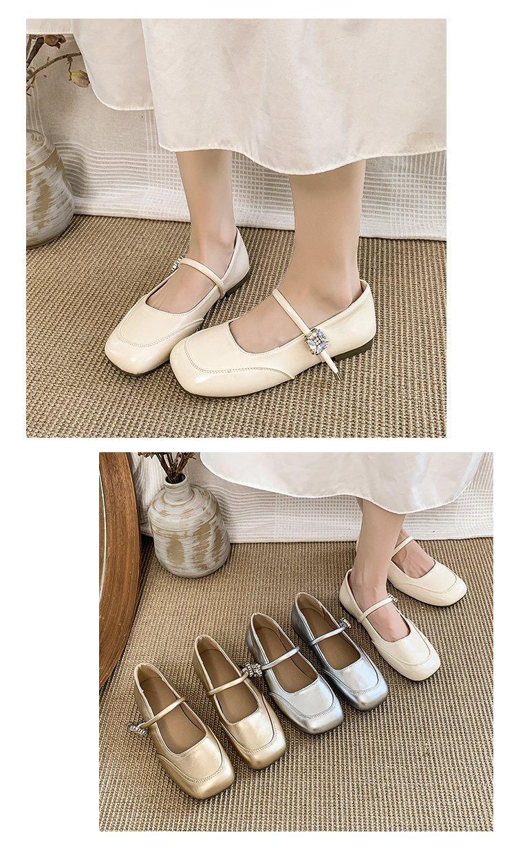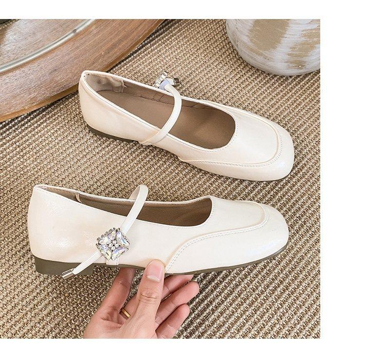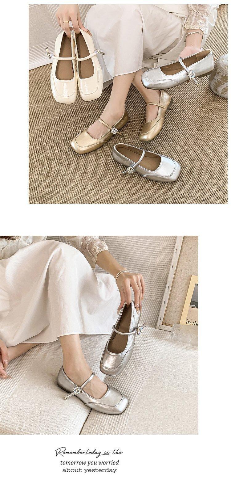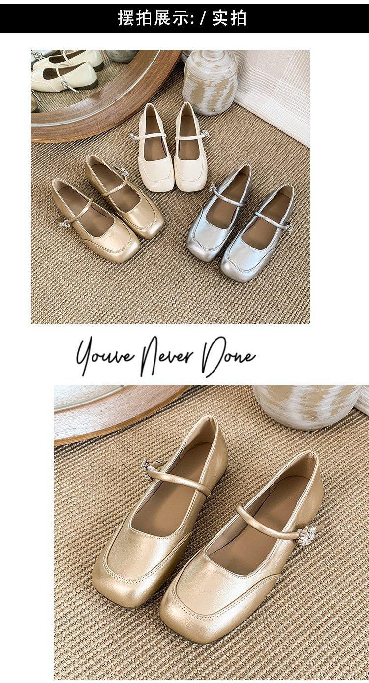 Zapatos individuales elegantes transpirables de punta cuadrada estilo francés, Nuevos Verano 2025 Zapatos retro Mary Jane de cuero pequeño para mujer