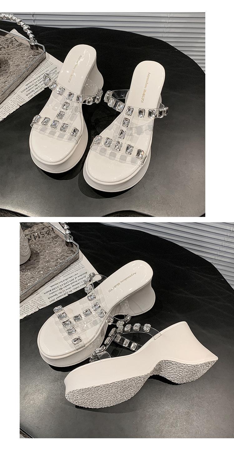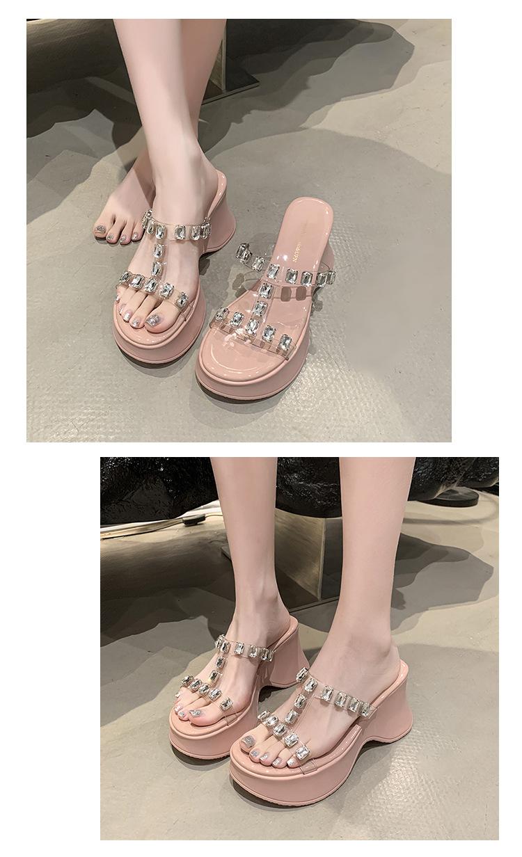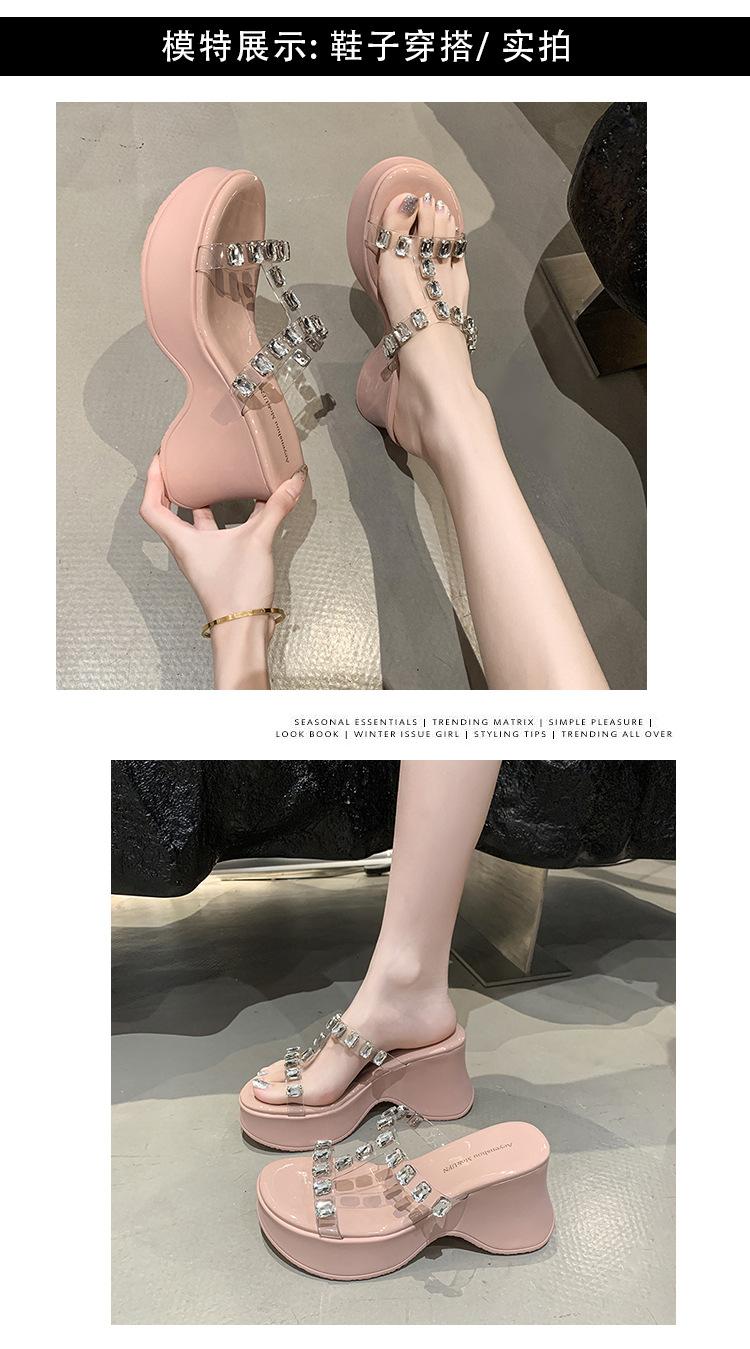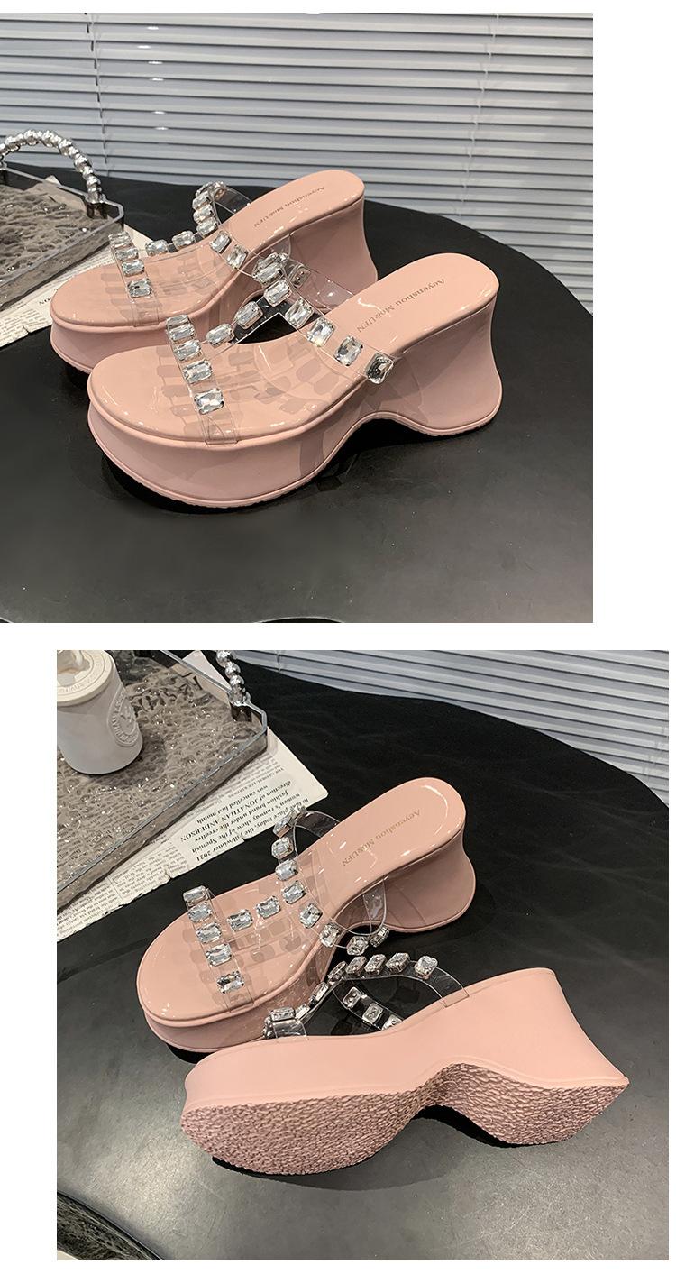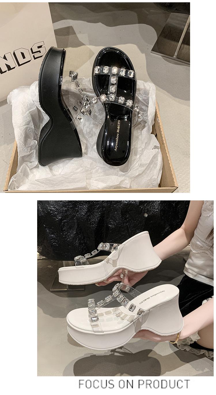 Nueva Moda 2025 Ropa Exterior Sandalias de Plataforma de Suela Gruesa Sandalias Casuales de Verano para Mujer Diamantes de Imitación Transparentes Zapatillas de Tacón de Cuña para Mujer