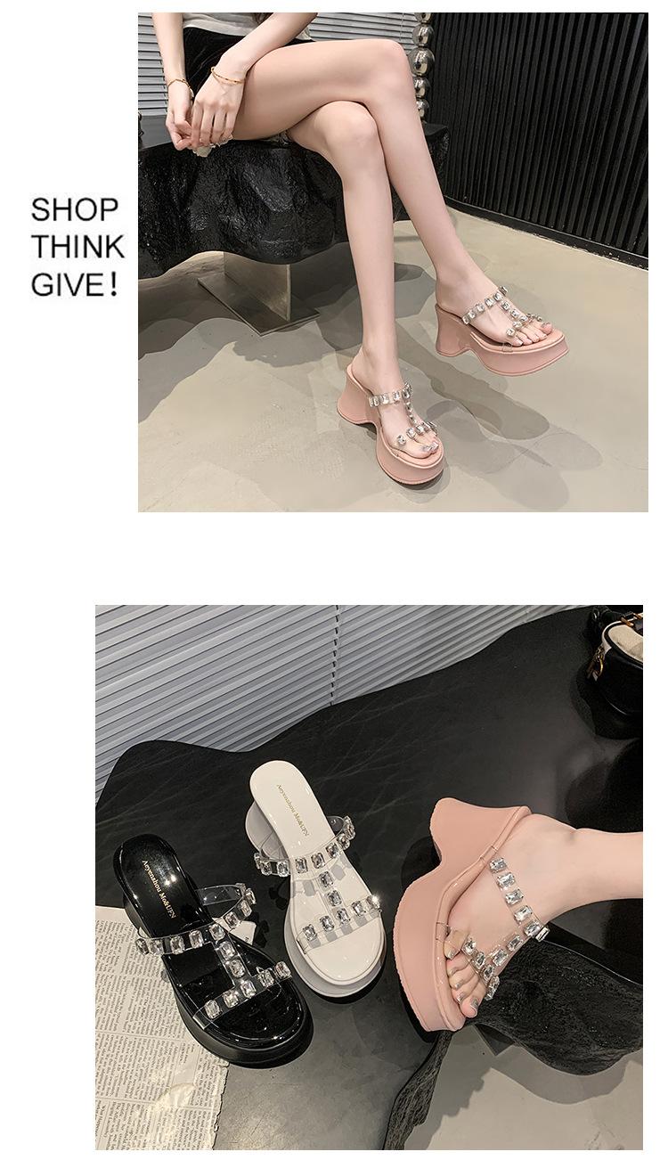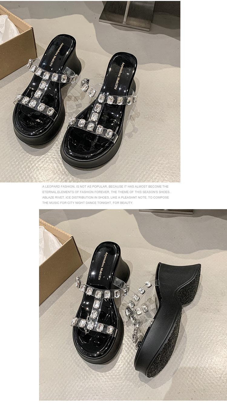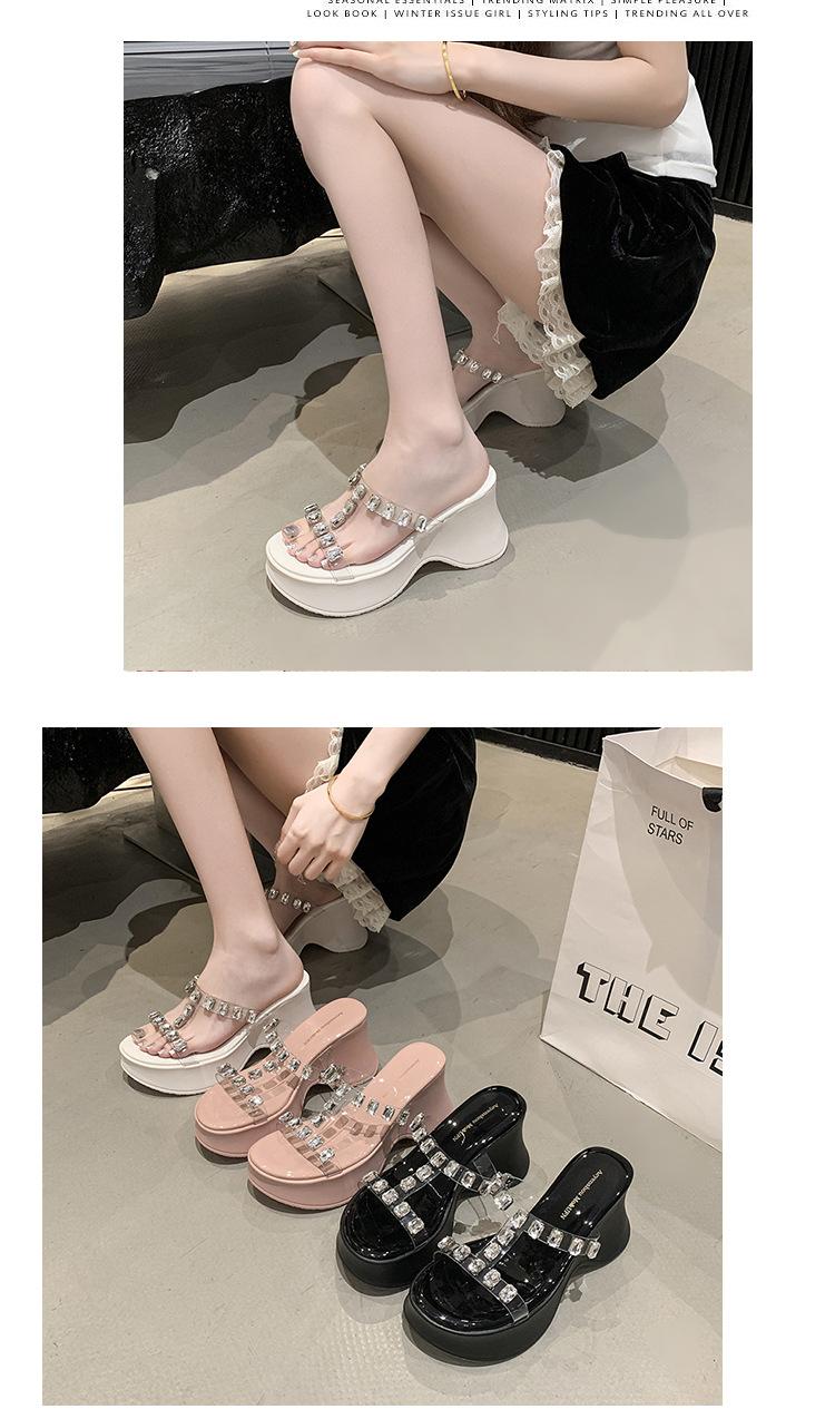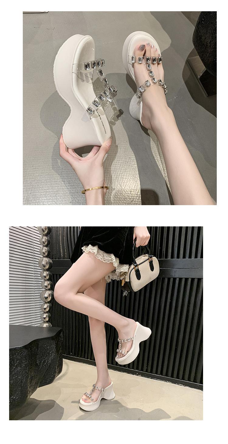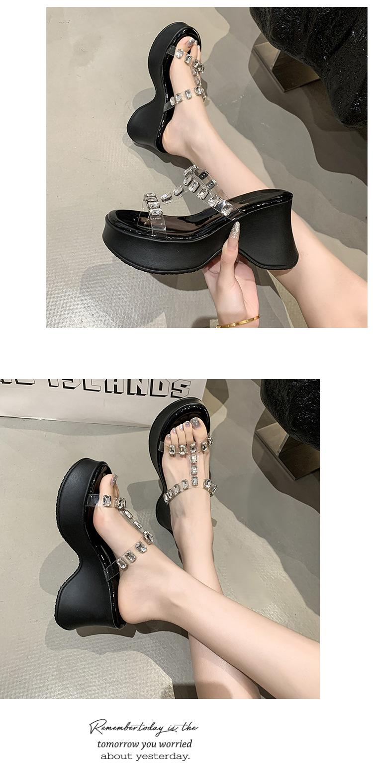 Nueva Moda 2025 Ropa Exterior Sandalias de Plataforma de Suela Gruesa Sandalias Casuales de Verano para Mujer Diamantes de Imitación Transparentes Zapatillas de Tacón de Cuña para Mujer