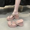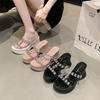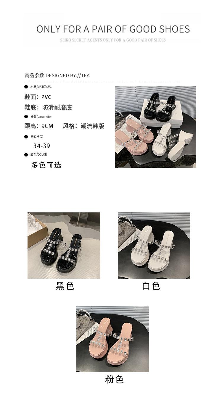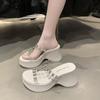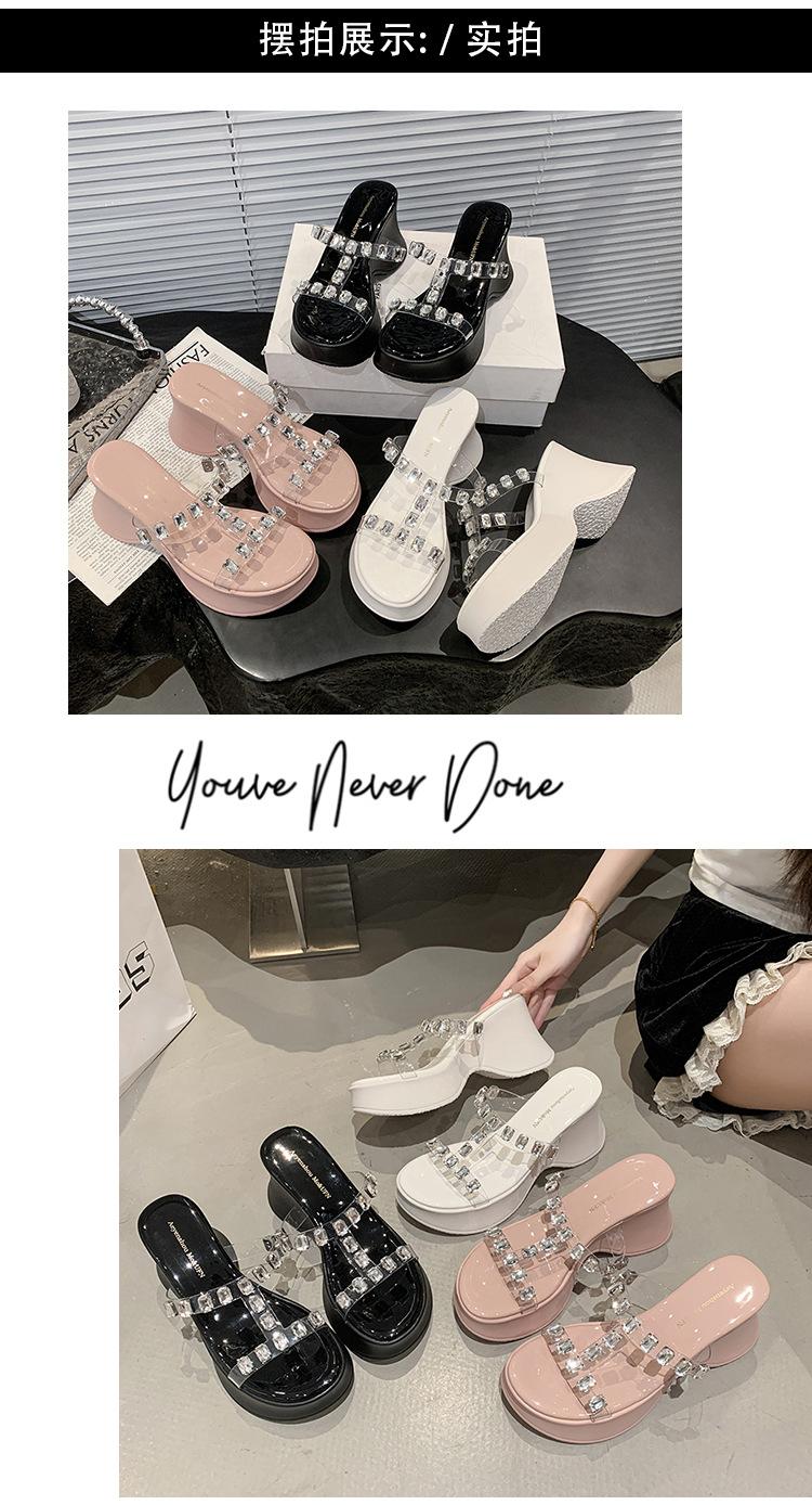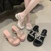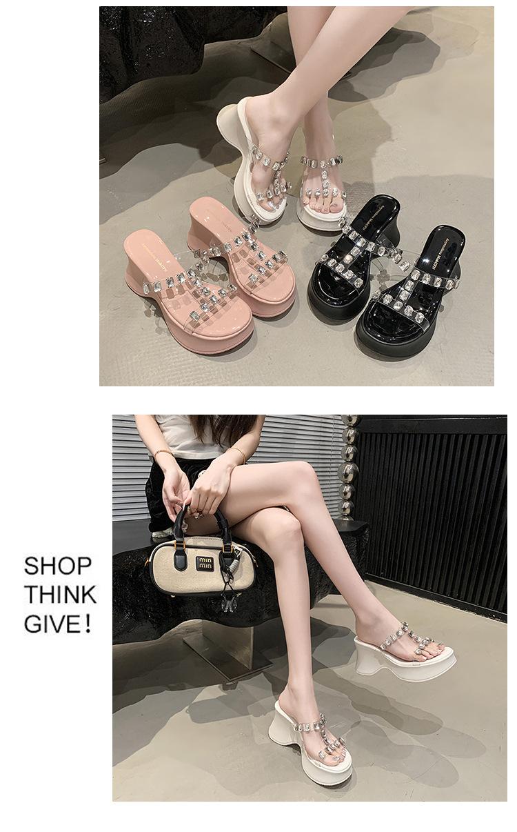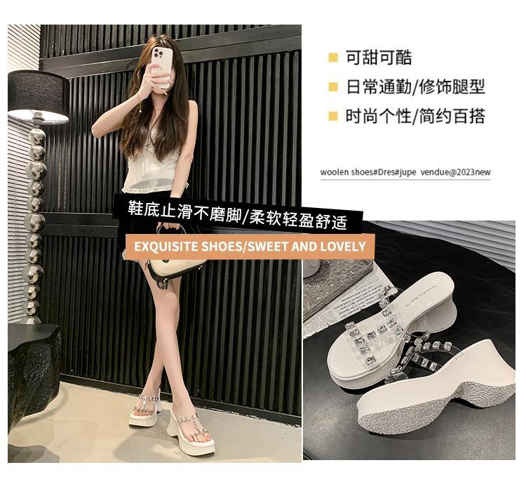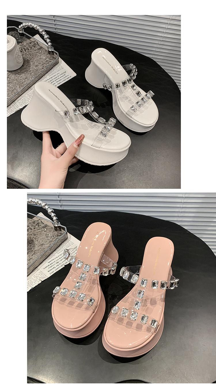 Nueva Moda 2025 Ropa Exterior Sandalias de Plataforma de Suela Gruesa Sandalias Casuales de Verano para Mujer Diamantes de Imitación Transparentes Zapatillas de Tacón de Cuña para Mujer