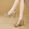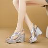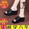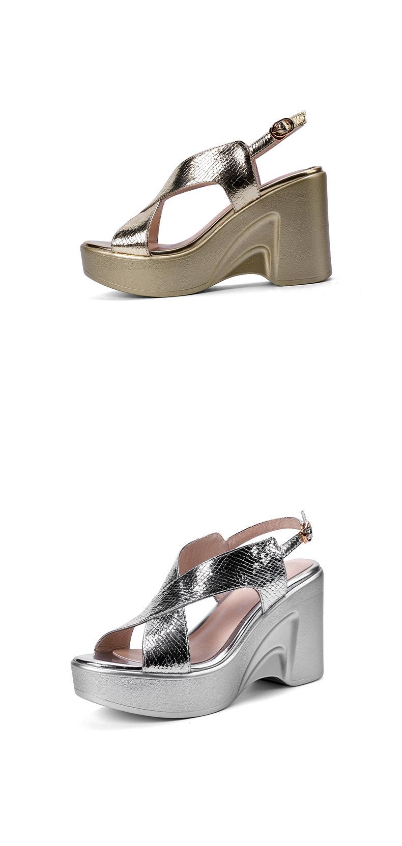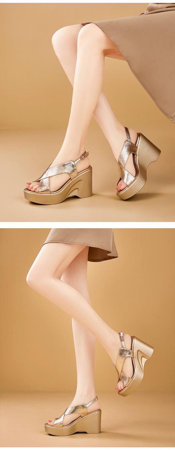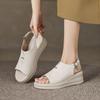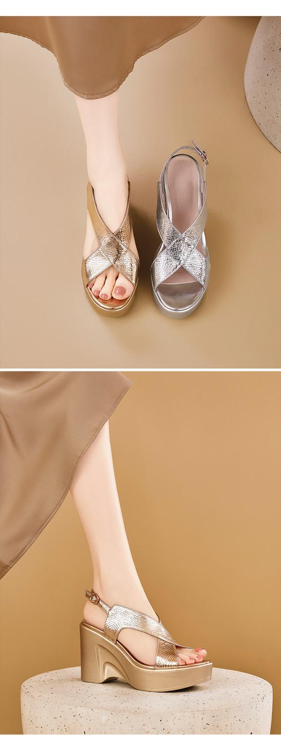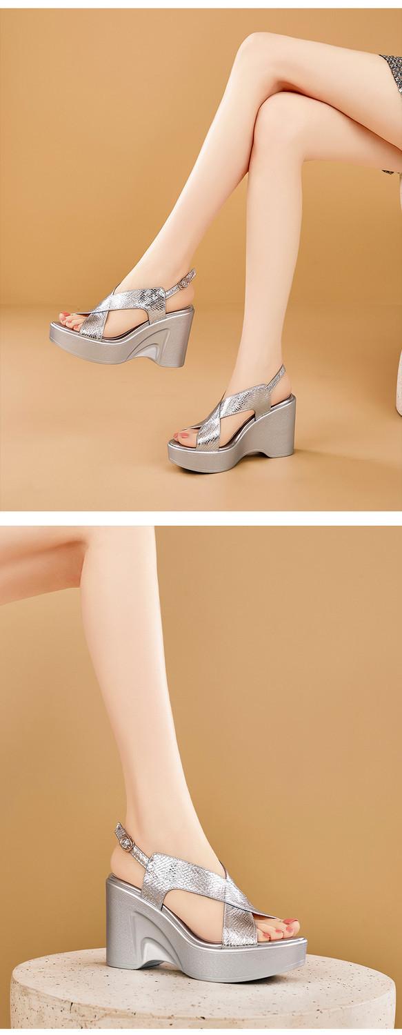 Sandalias de Plataforma de Punta Abierta para Mujer Plataforma de Cuero Genuino con Hebilla Cuña Verano 2025 plata Suela Blanda Sandalias de Suela Alta No Cansan