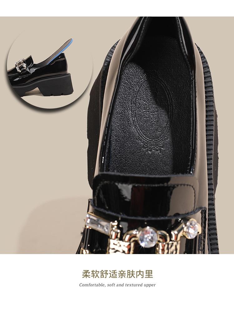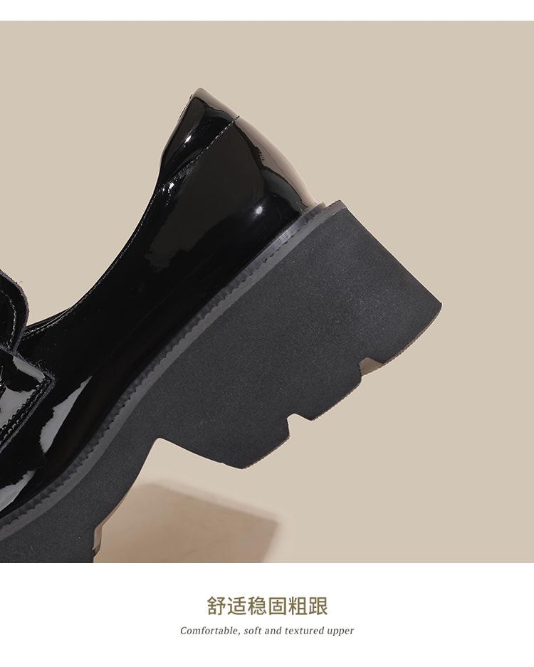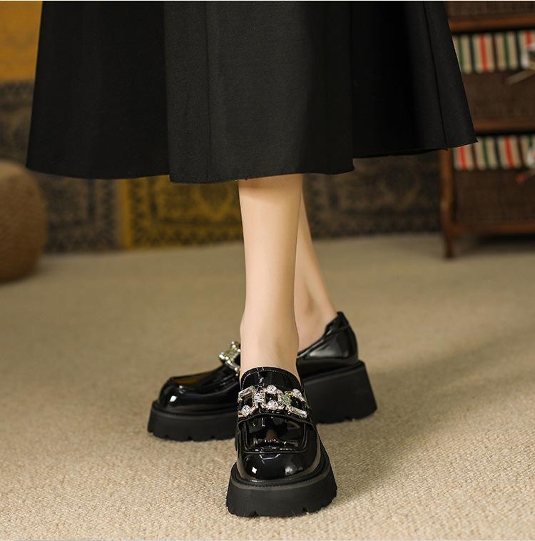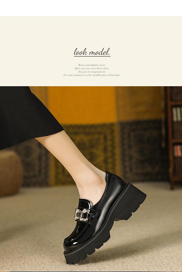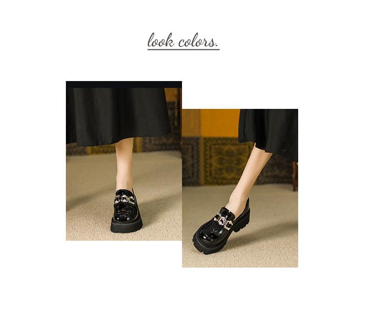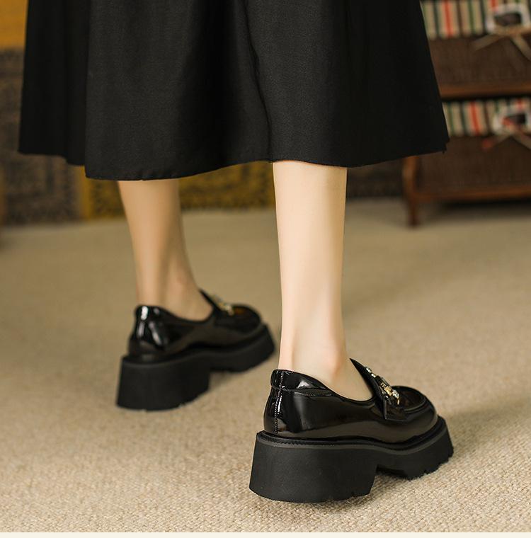 Zapatos de Cuero Genuino para Mujer Británicos 2023 nuevo estilo preppy retro negro de una sola capa zapatos tacón grueso versátiles mocasines de plataforma