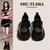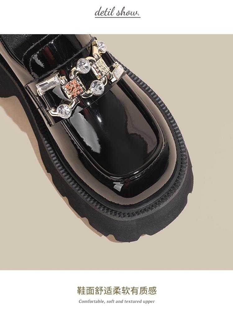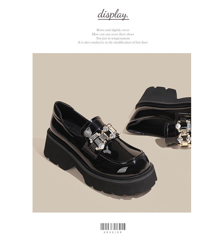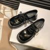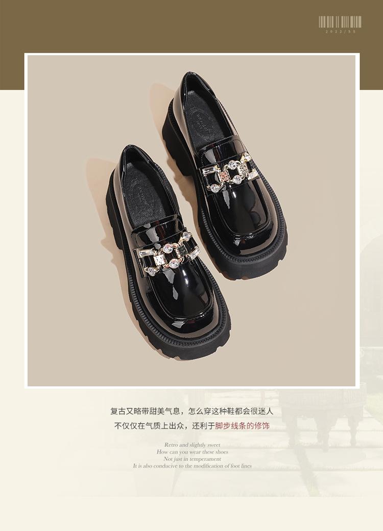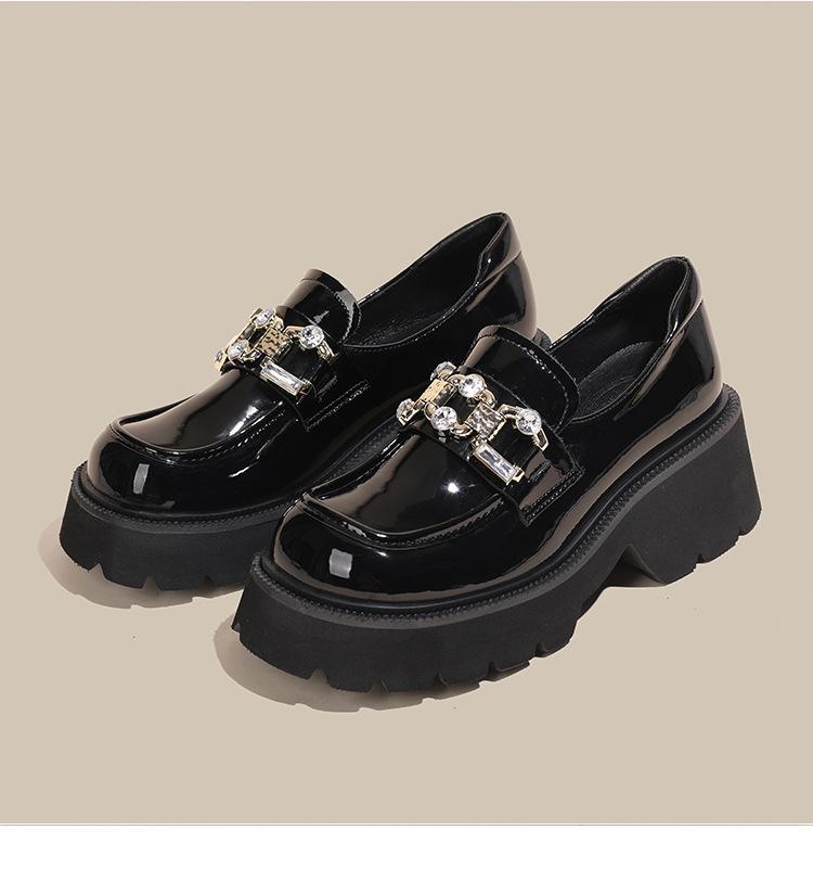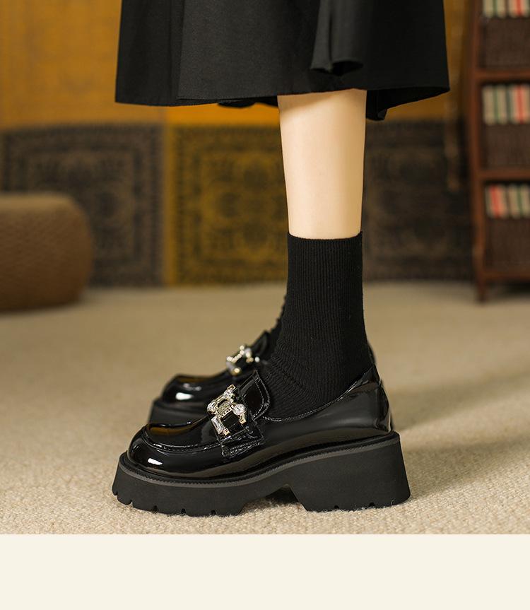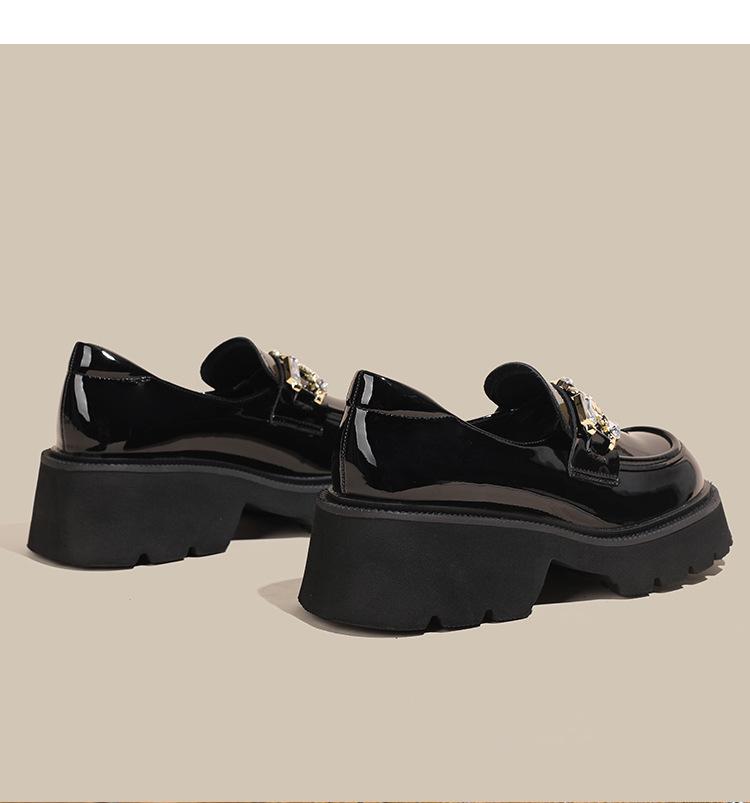 Zapatos de Cuero Genuino para Mujer Británicos 2023 nuevo estilo preppy retro negro de una sola capa zapatos tacón grueso versátiles mocasines de plataforma