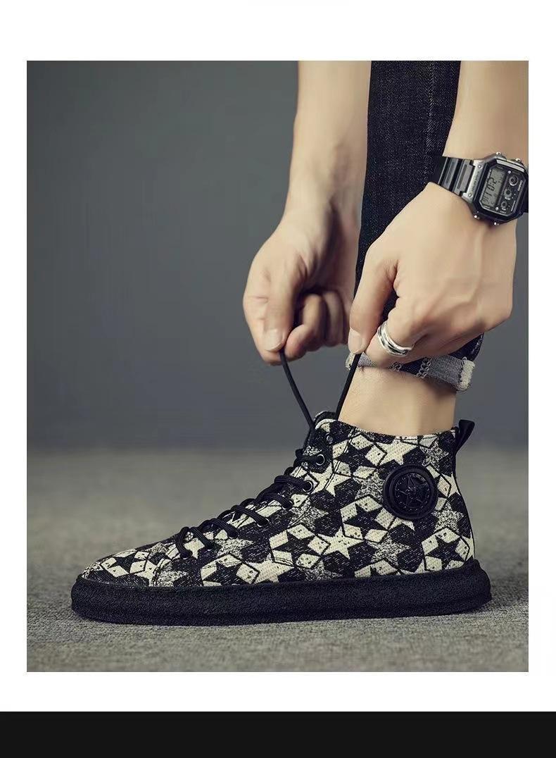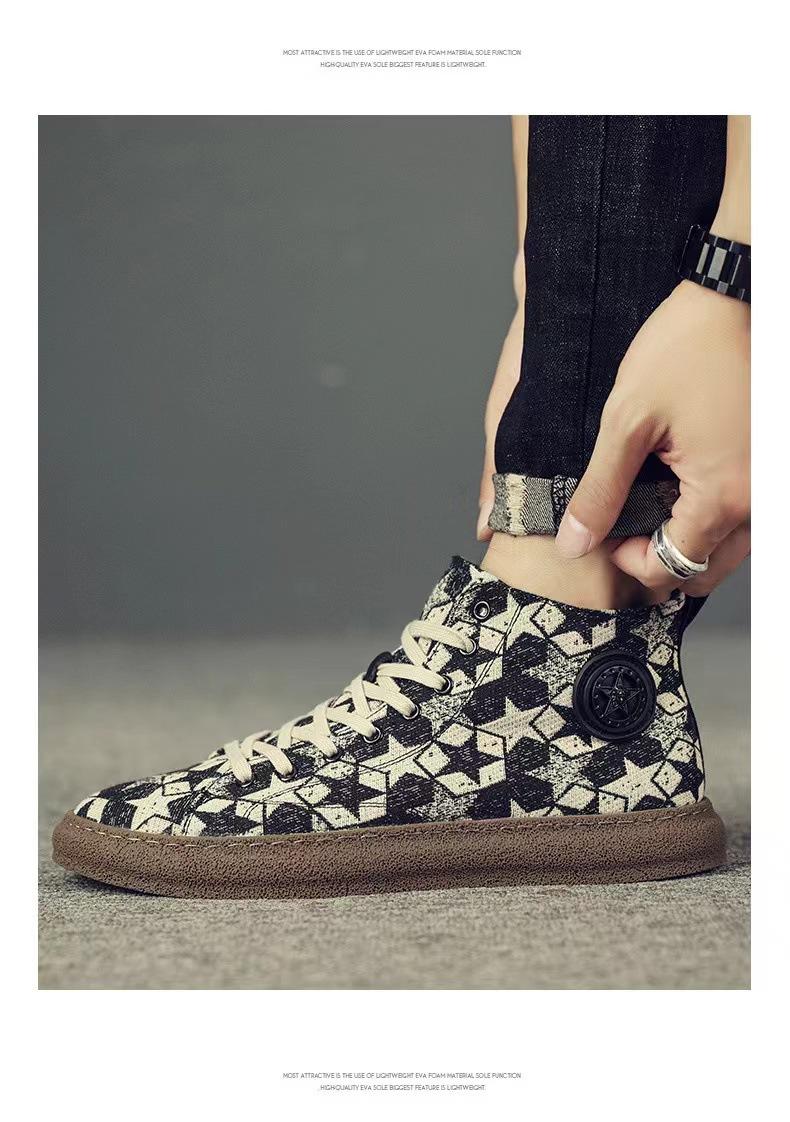 Zapatos de caña alta otoño 2024 nuevos transpirables versátiles casuales para hombre zapatos coreanos clásicos para hombre zapatos de lona de estrella