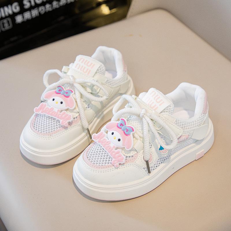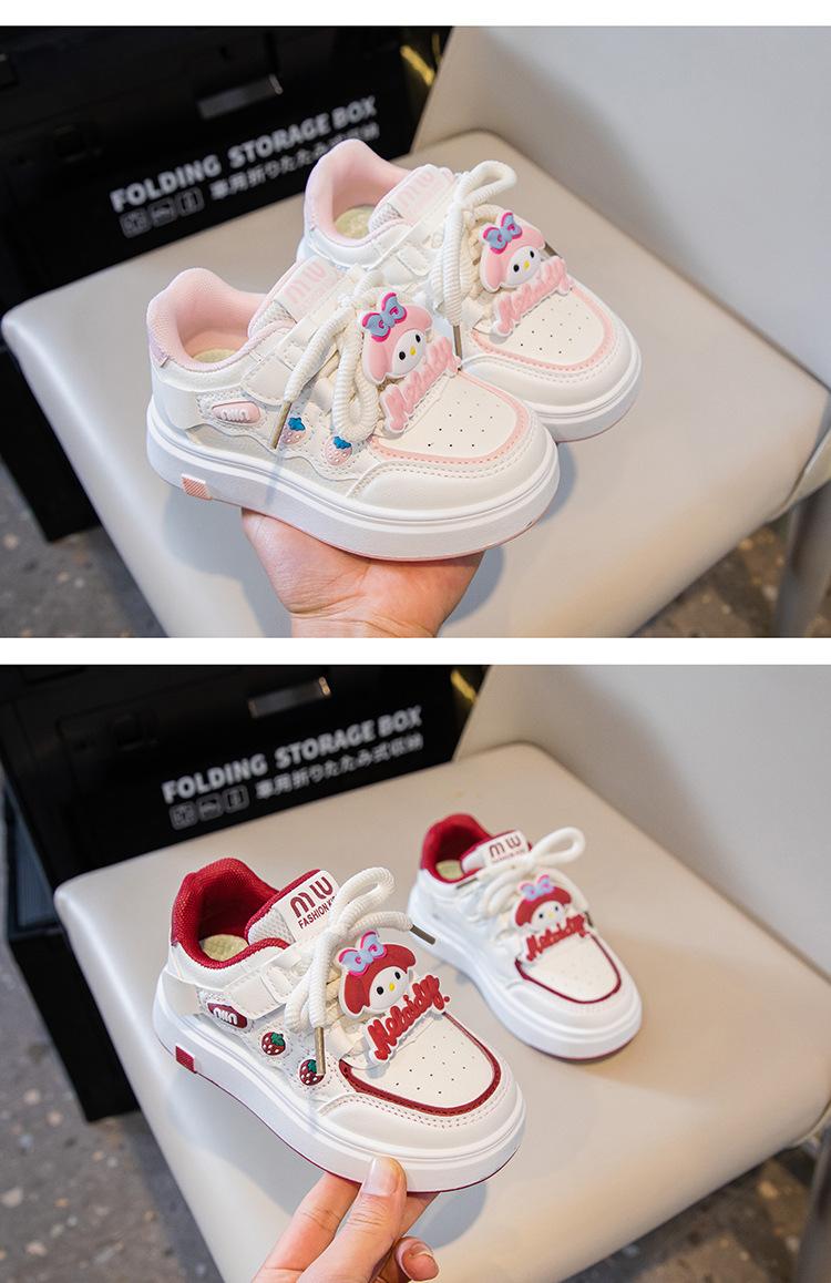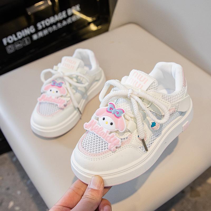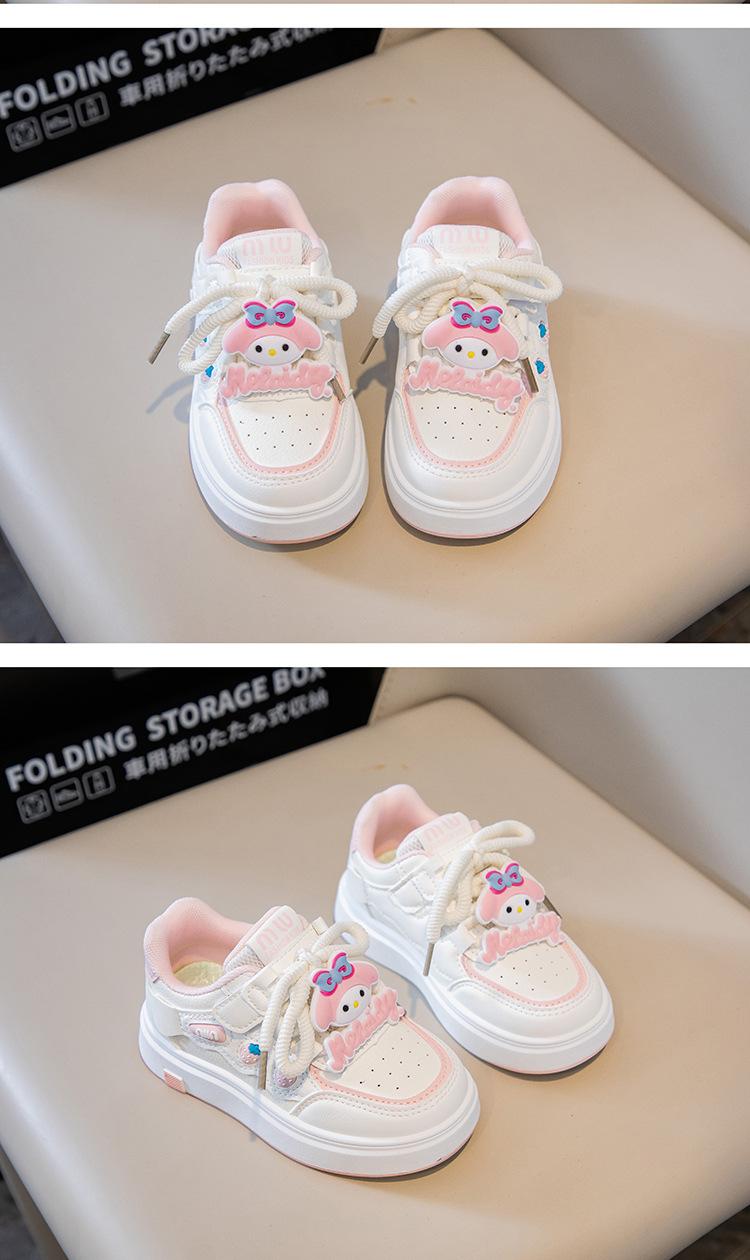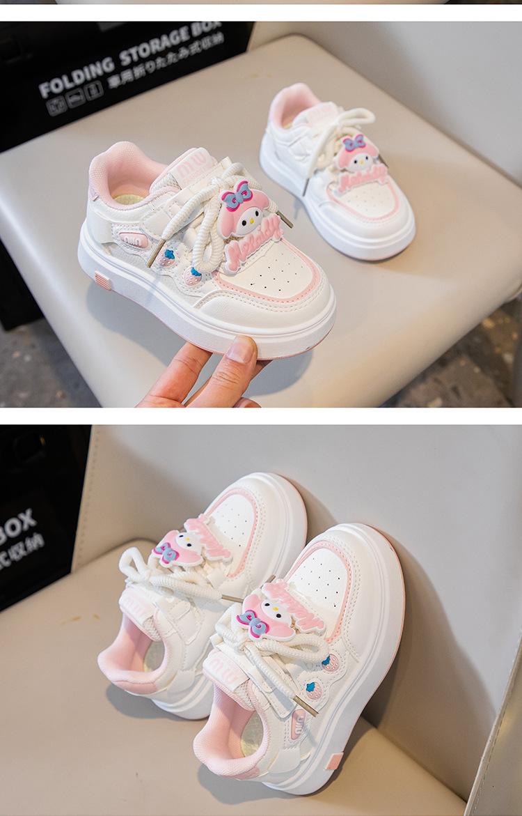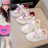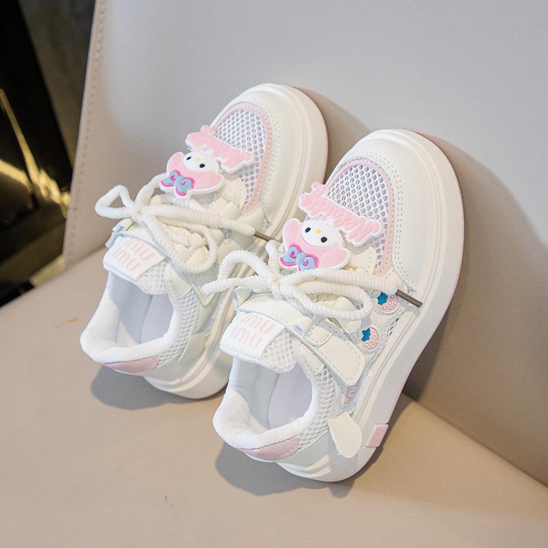 Tenis para Niñas Primavera 2025 Nuevos Zapatos Blancos de Cuero para Estudiantes para Niñas Zapatos Casuales Suela Gruesa Malla de Dibujos Animados
