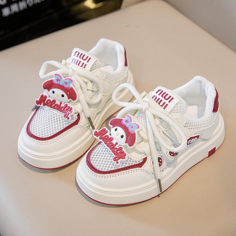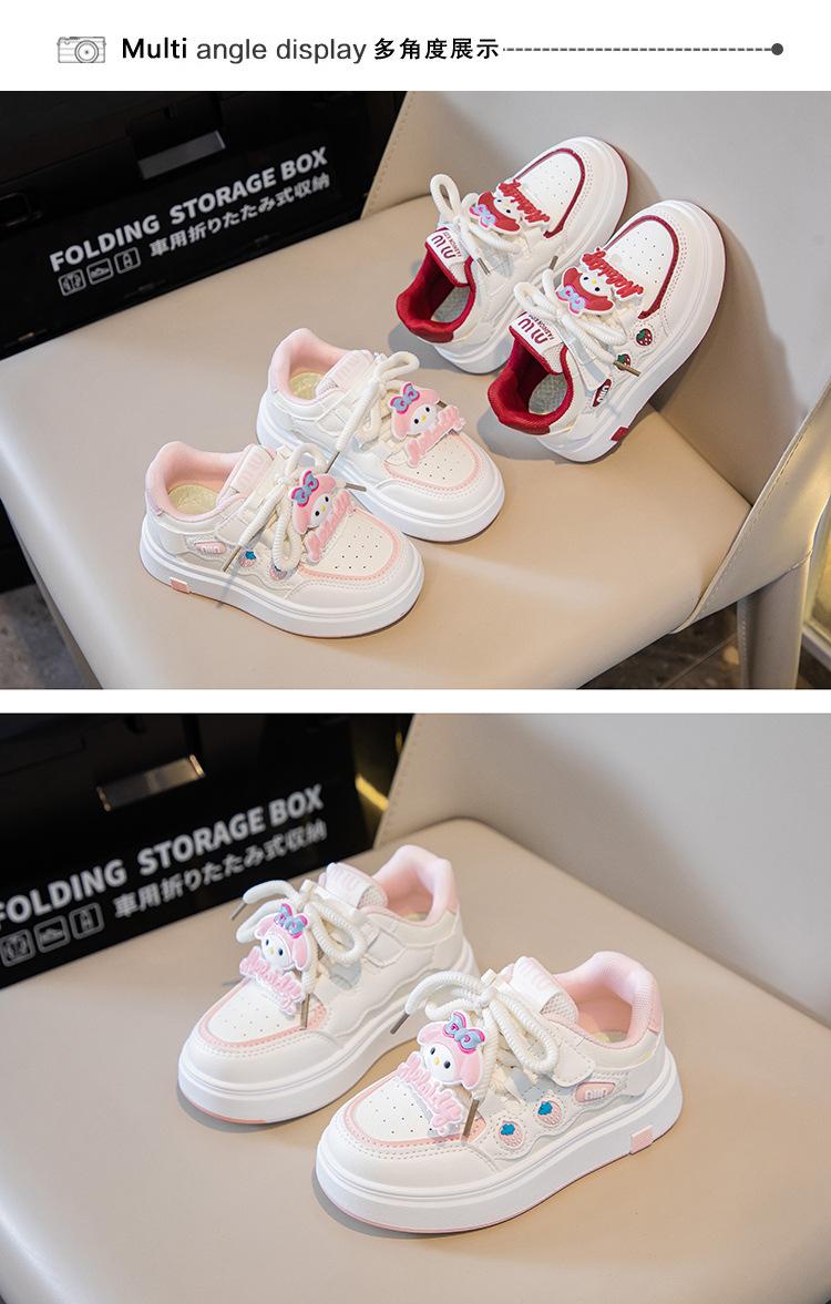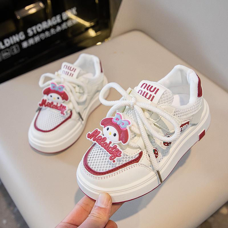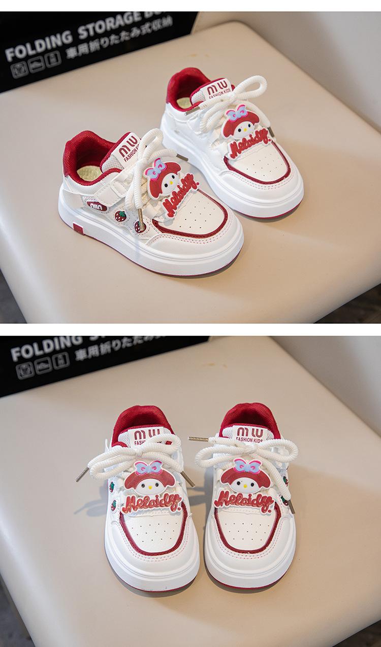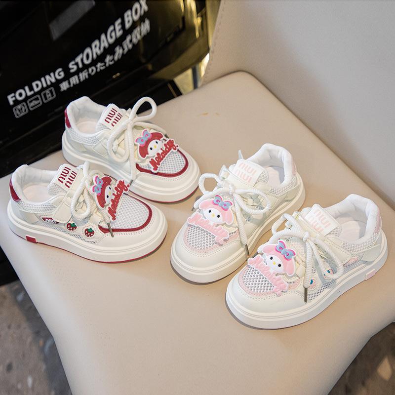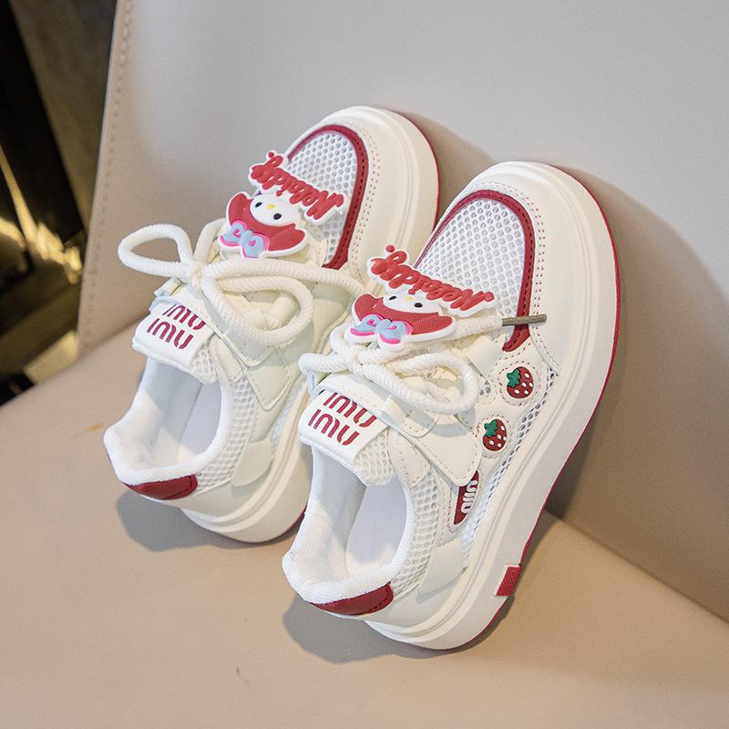 Tenis para Niñas Primavera 2025 Nuevos Zapatos Blancos de Cuero para Estudiantes para Niñas Zapatos Casuales Suela Gruesa Malla de Dibujos Animados
