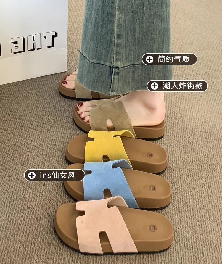 Pantuflas de Playa Versátiles de Suela Gruesa para Ropa Exterior de Mujer 2025 Verano Nuevo H Antideslizantes de Suela Gruesa Sandalias Casuales Populares