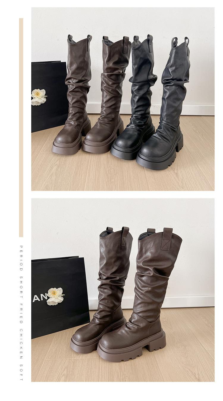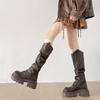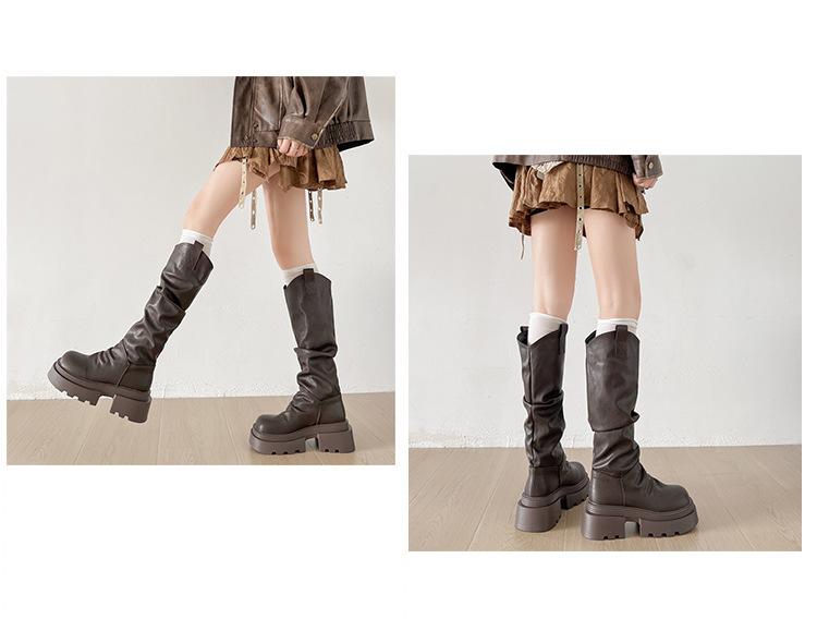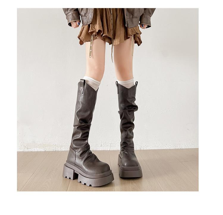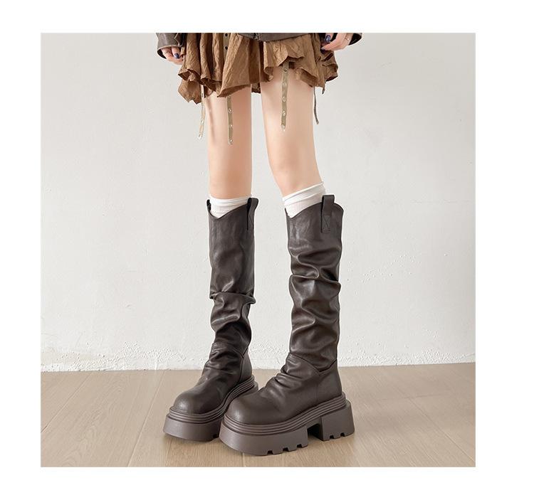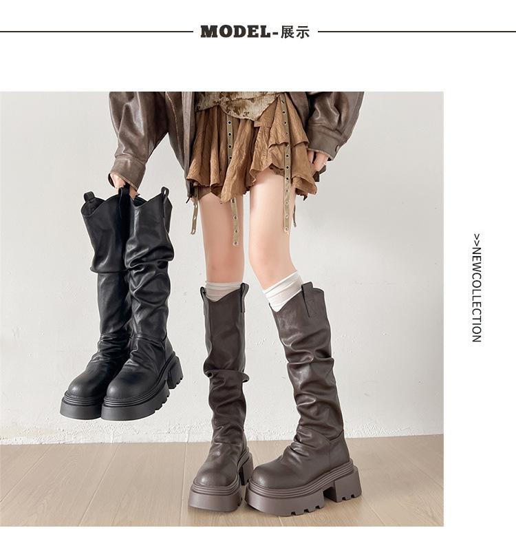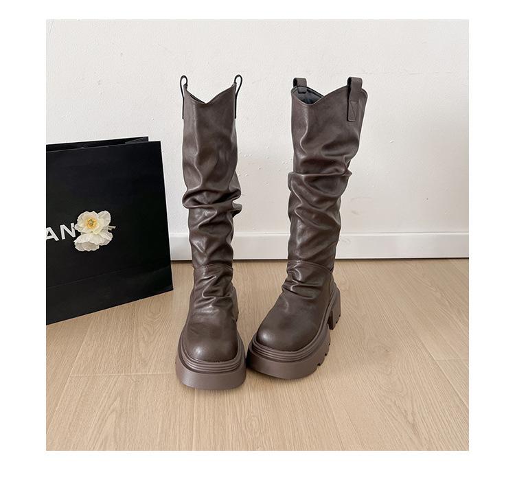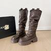 Botas de Caballero Marrones Adelgazantes Británicas de Tacón Grueso y Suela Gruesa hasta la Rodilla Zapatos de Mujer 2025 Nuevo Retro Aumento de Altura Botas Holgadas con Boca en V