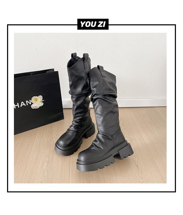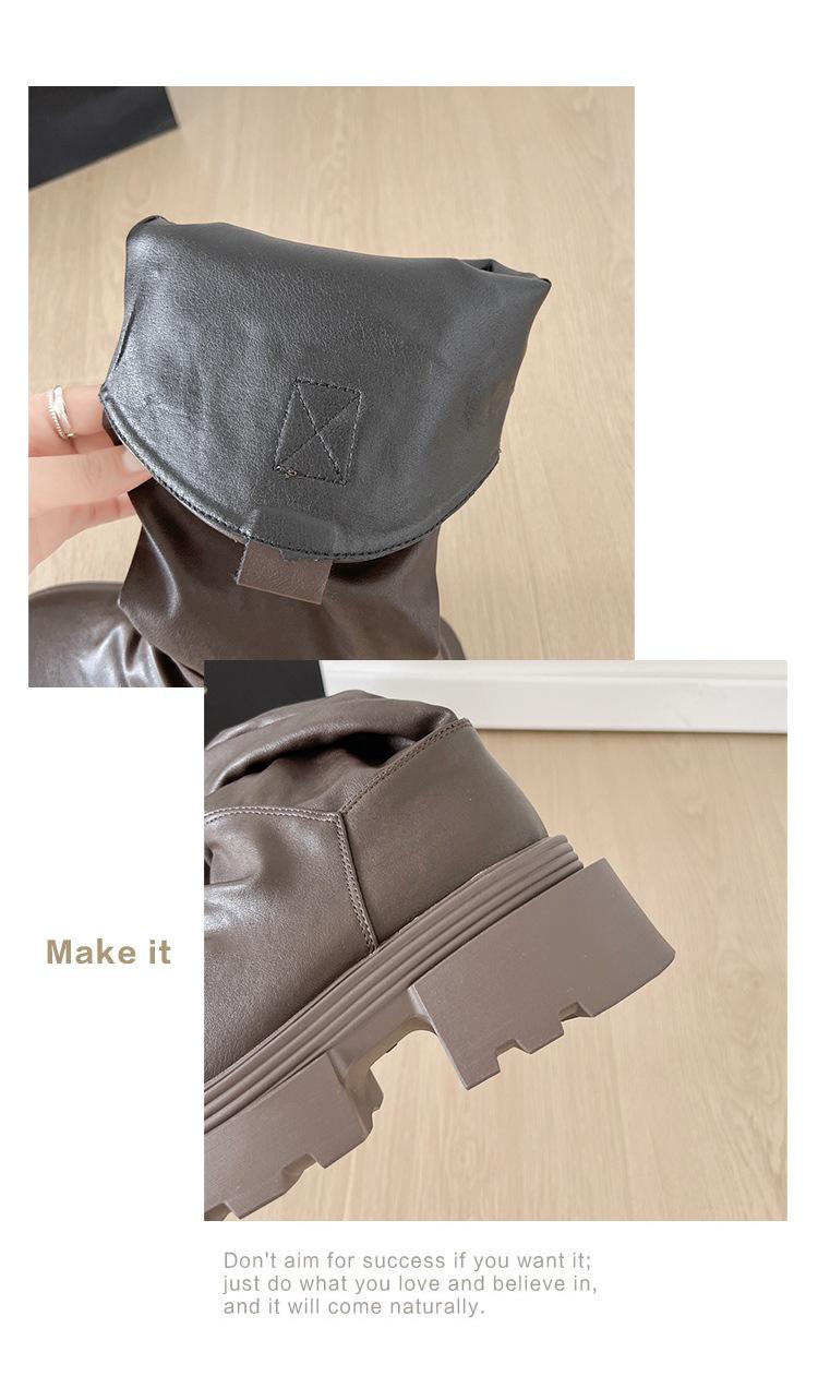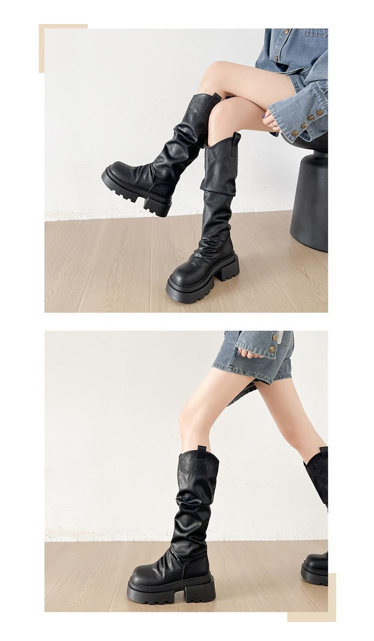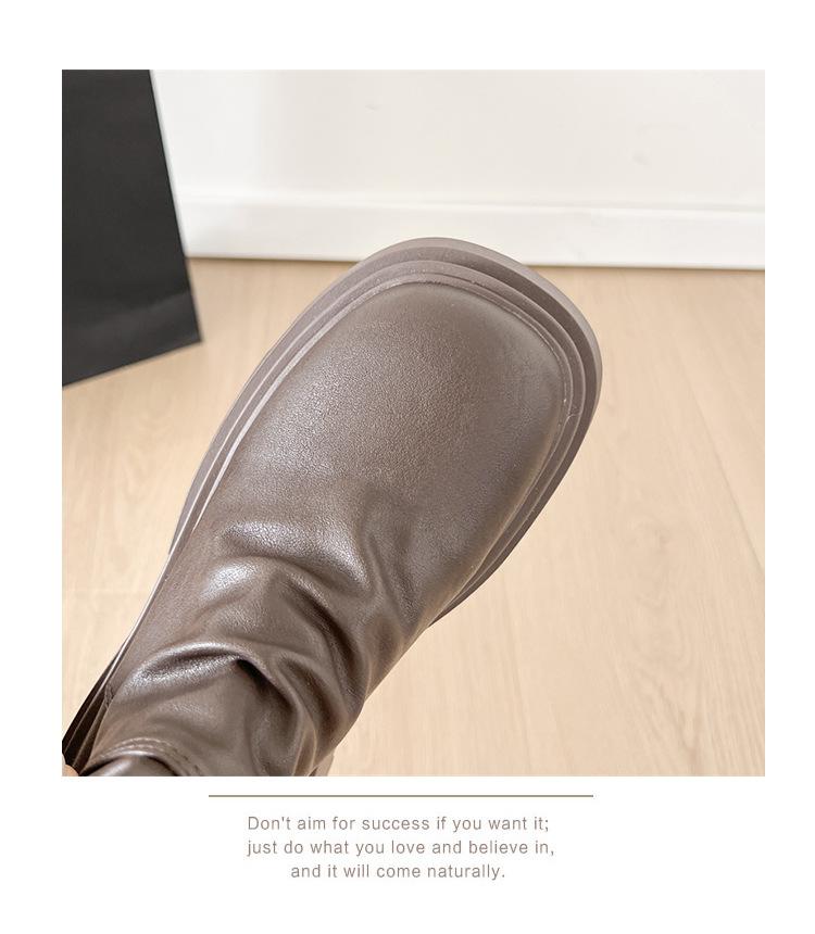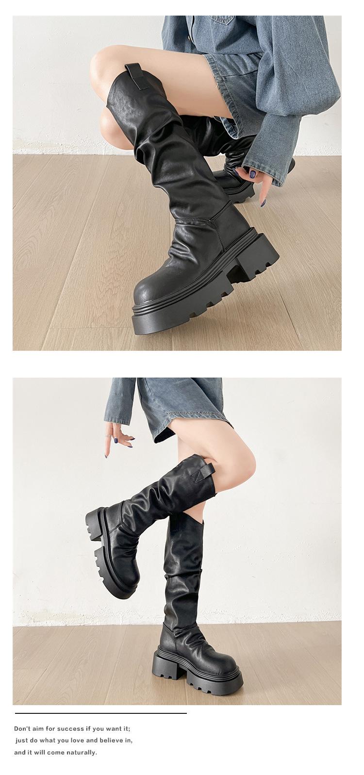 Botas de Caballero Marrones Adelgazantes Británicas de Tacón Grueso y Suela Gruesa hasta la Rodilla Zapatos de Mujer 2025 Nuevo Retro Aumento de Altura Botas Holgadas con Boca en V