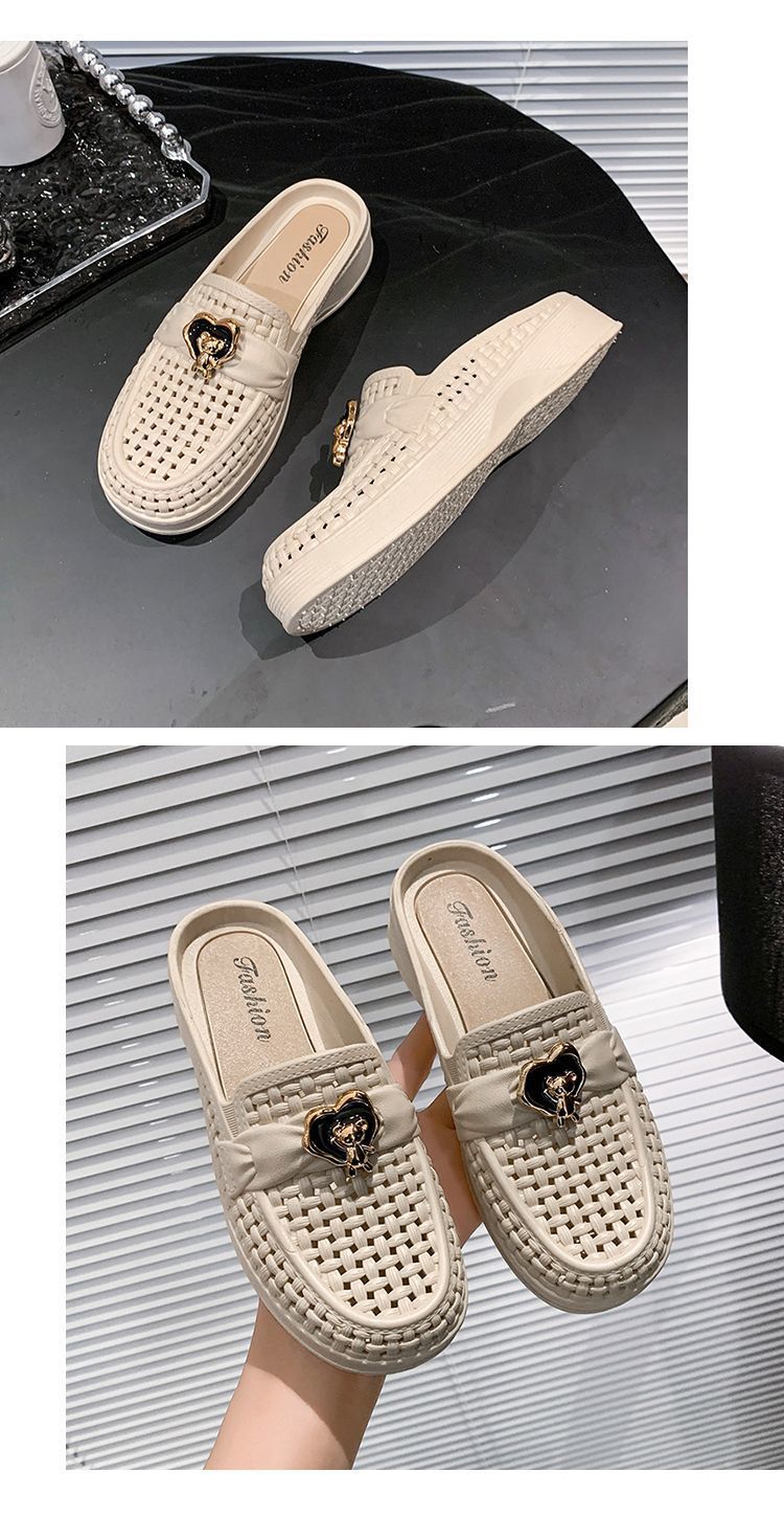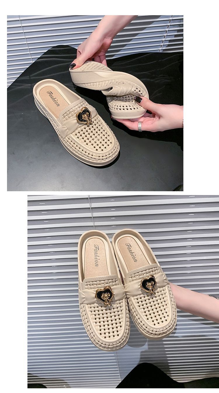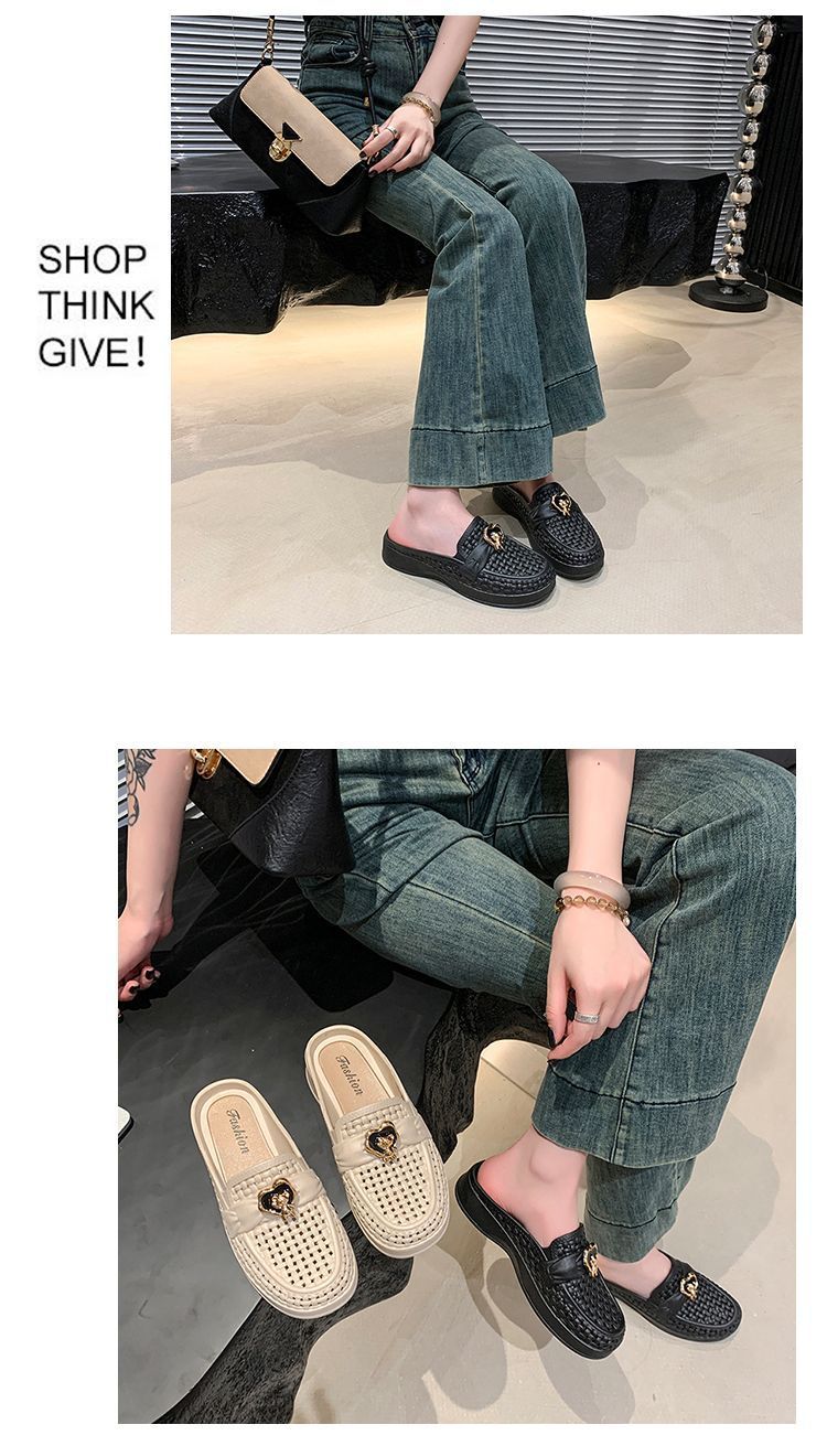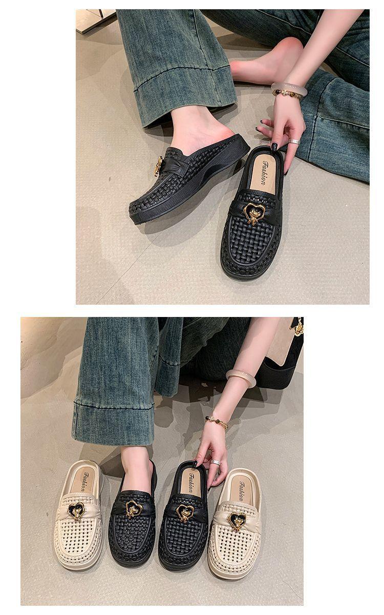 Pantuflas Casuales de Playa Antideslizantes de Suela Blanda para Uso Exterior, Sandalias de Mujer de Medio Tacón Modernas y Versátiles 2025 Verano y Otoño Nuevo Estilo