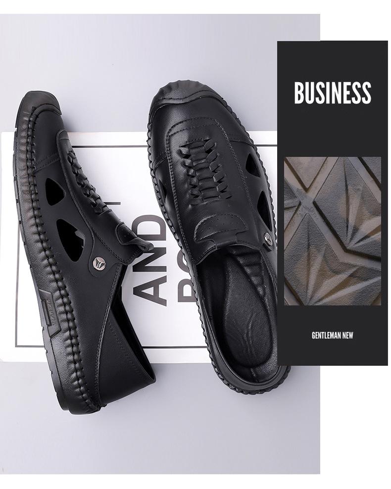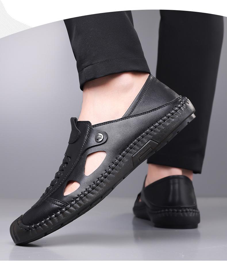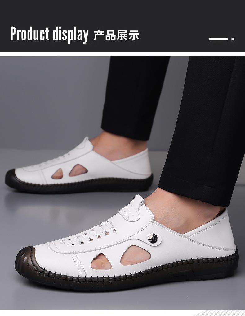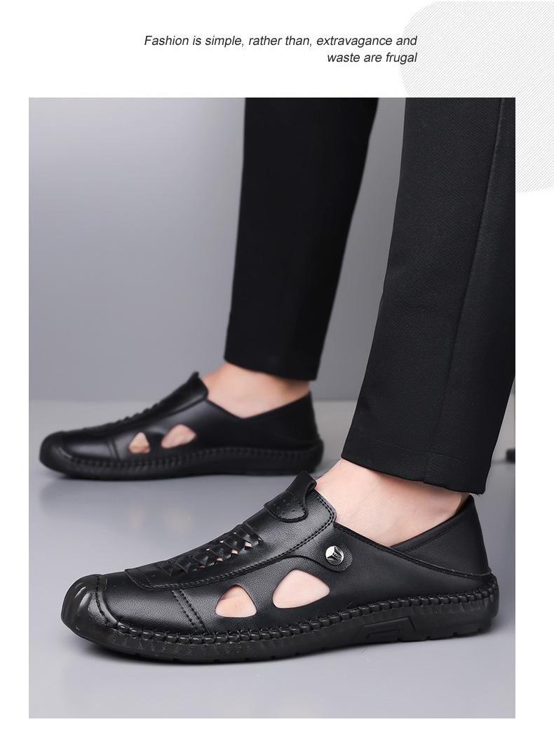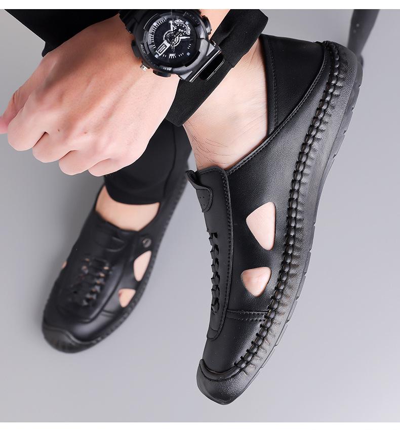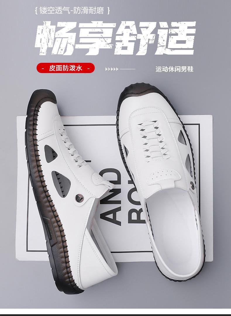 Sandalias de envío directo transfronterizo para hombre, verano, huecas, transpirables, casuales, de cuero, para hombre, bajas, sin cordones, zapatos de cuero transpirables