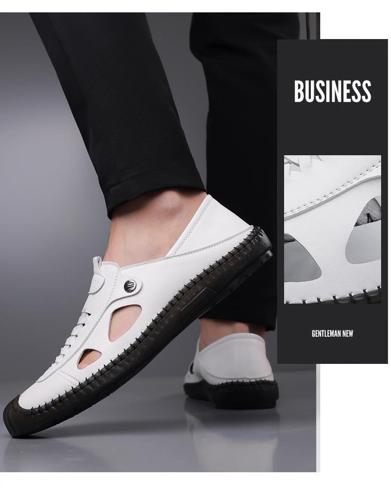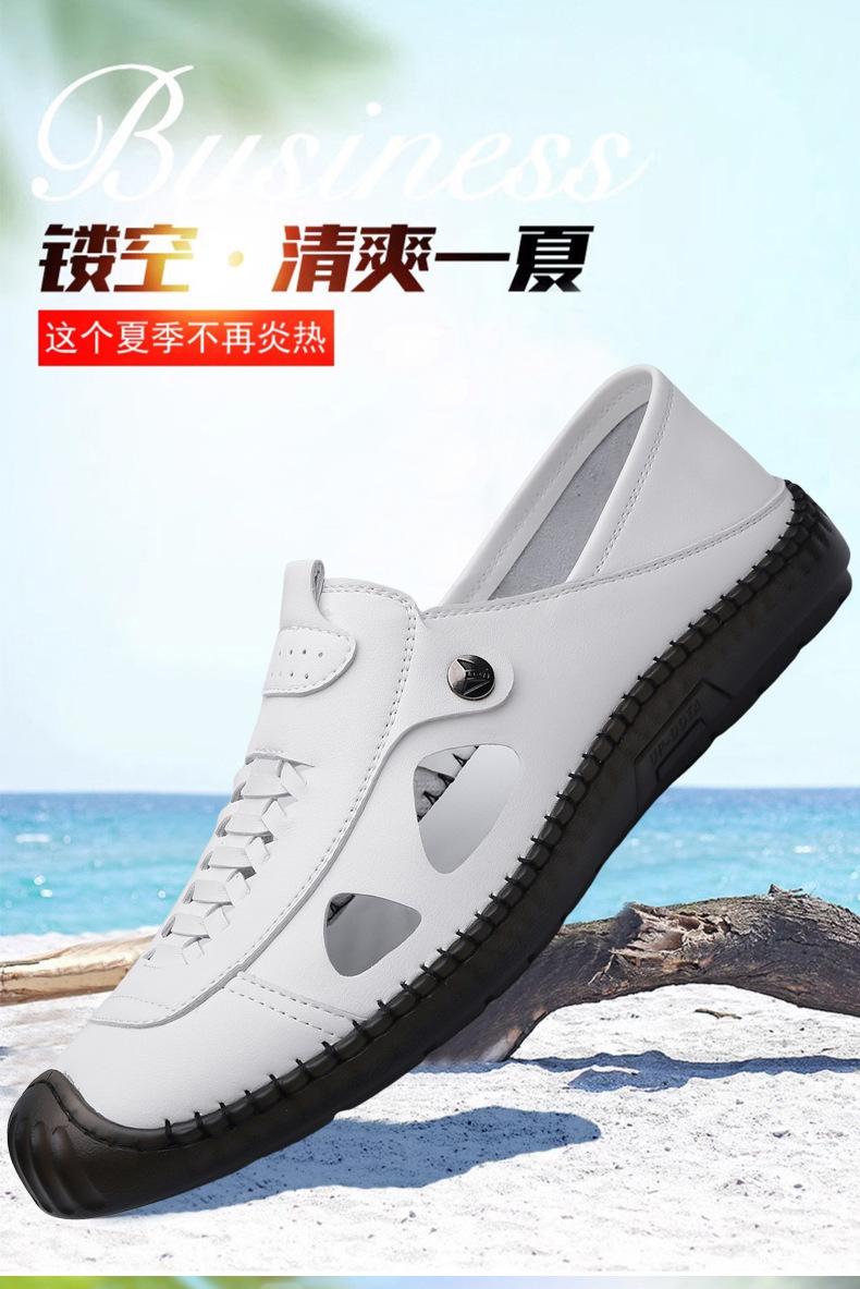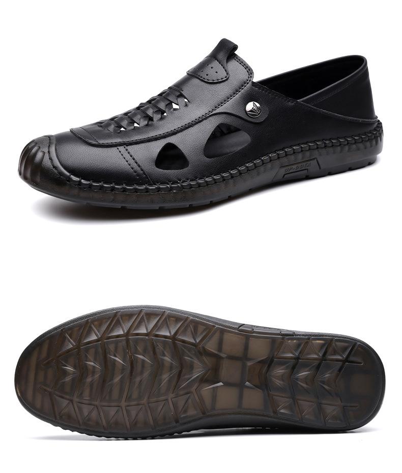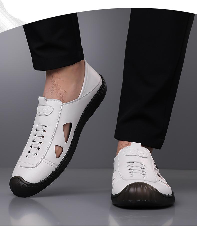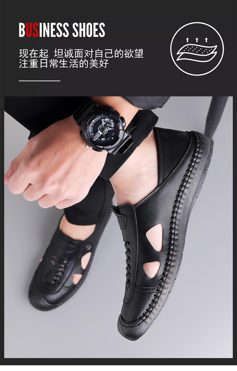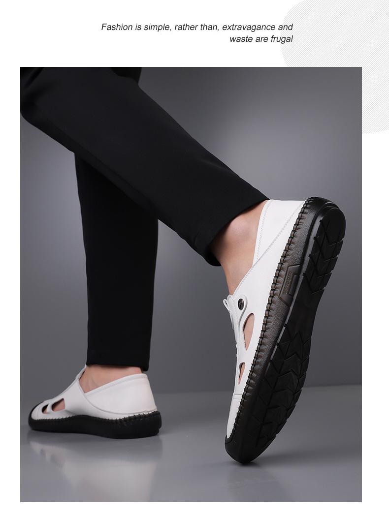 Sandalias de envío directo transfronterizo para hombre, verano, huecas, transpirables, casuales, de cuero, para hombre, bajas, sin cordones, zapatos de cuero transpirables