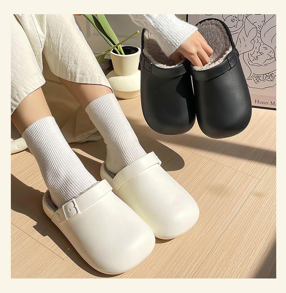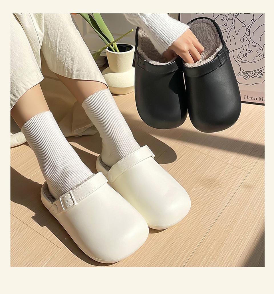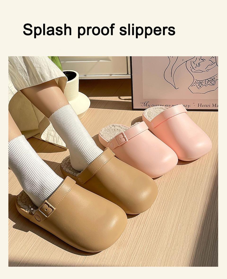 Zapatillas de Algodón Impermeables Populares para Mujer 2025 Invierno Nuevo Estilo Pareja Simples Punta Cerrada Interior Antideslizantes Cálidas