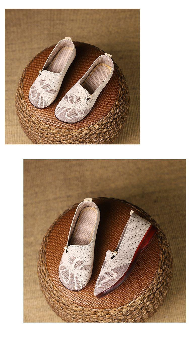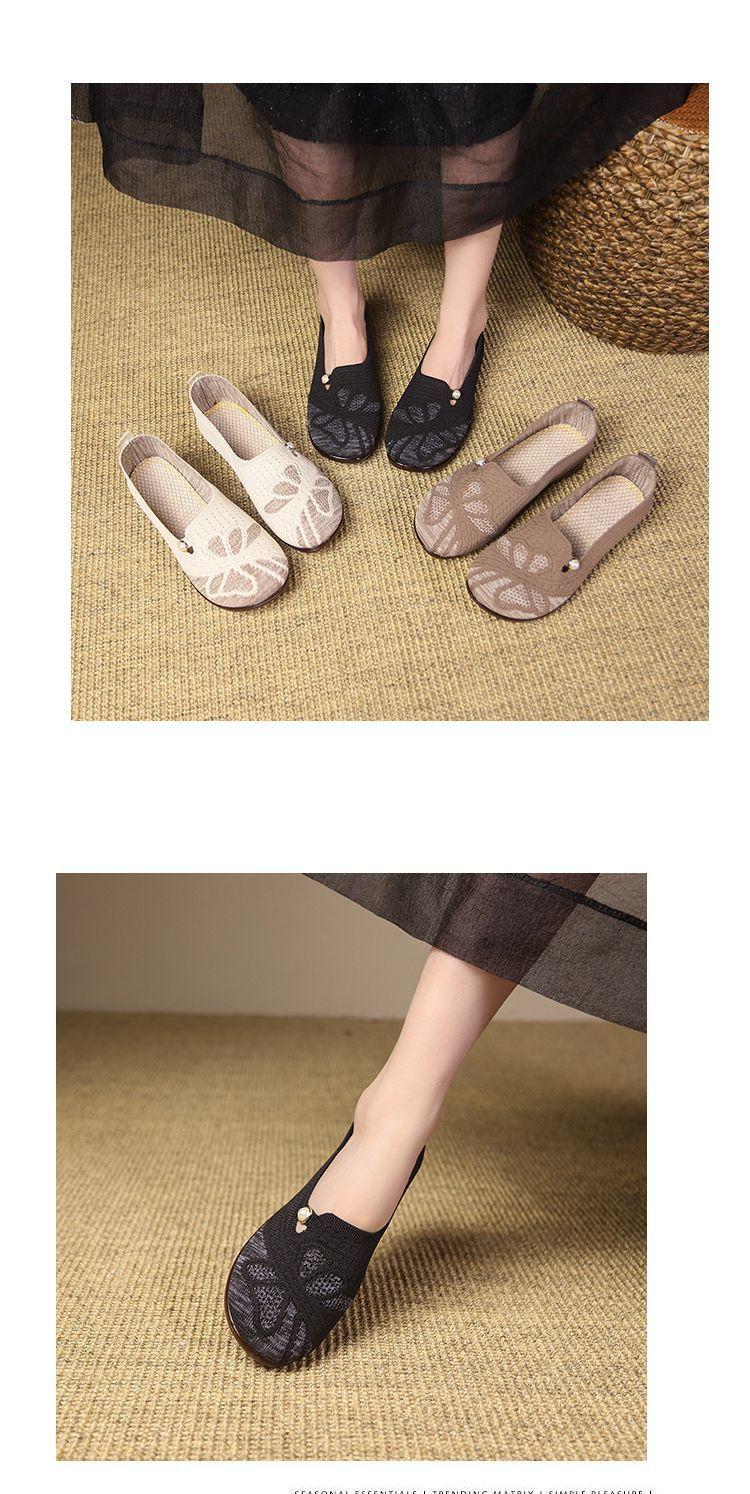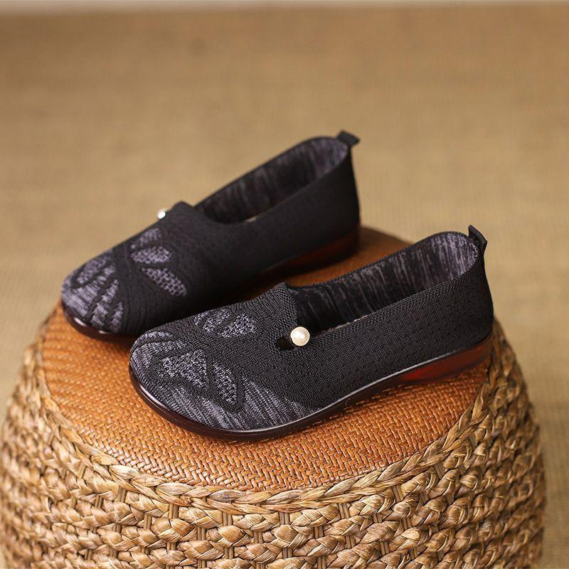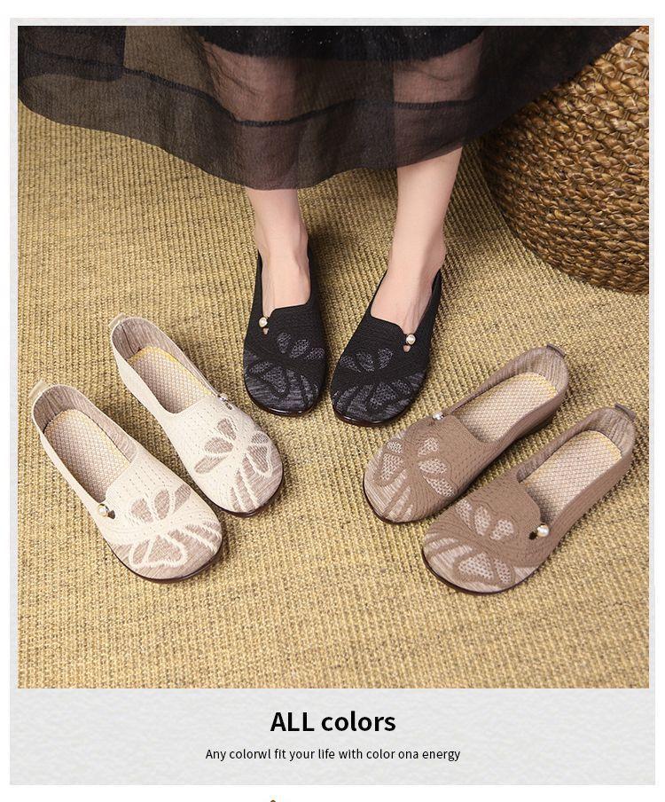Zapatos de madre antideslizantes y resistentes al desgaste 2025 verano y otoño nuevo estilo zapatos de tela de Pekín antiguos mocasines de malla planos para mujer de tacón plano