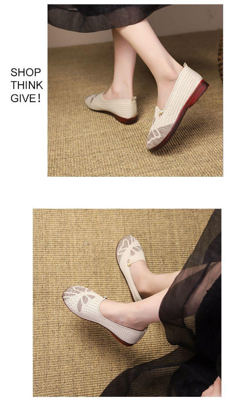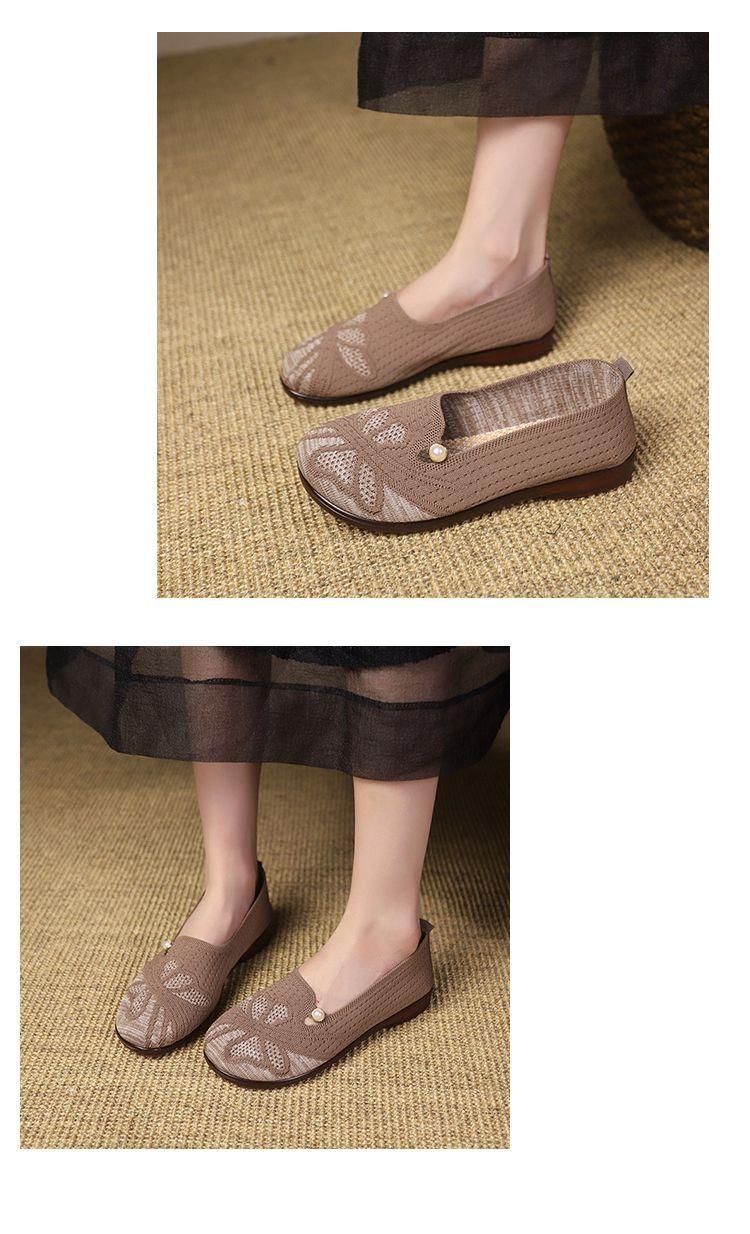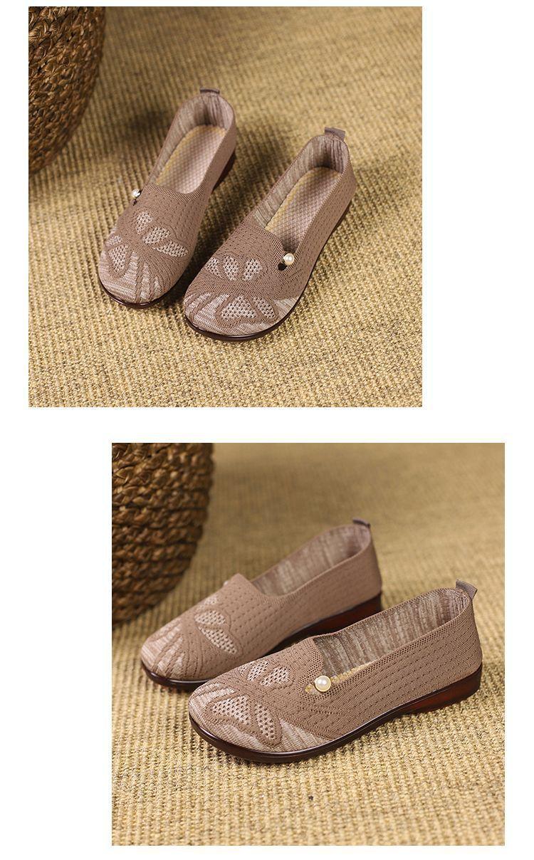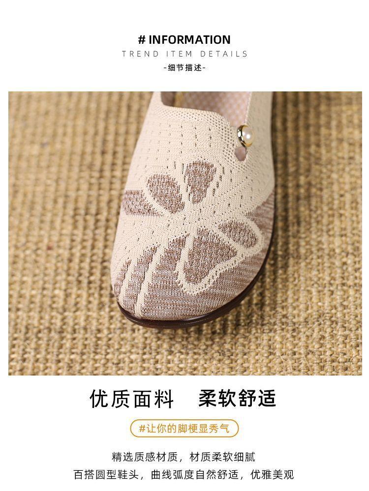 Zapatos de madre antideslizantes y resistentes al desgaste 2025 verano y otoño nuevo estilo zapatos de tela de Pekín antiguos mocasines de malla planos para mujer de tacón plano
