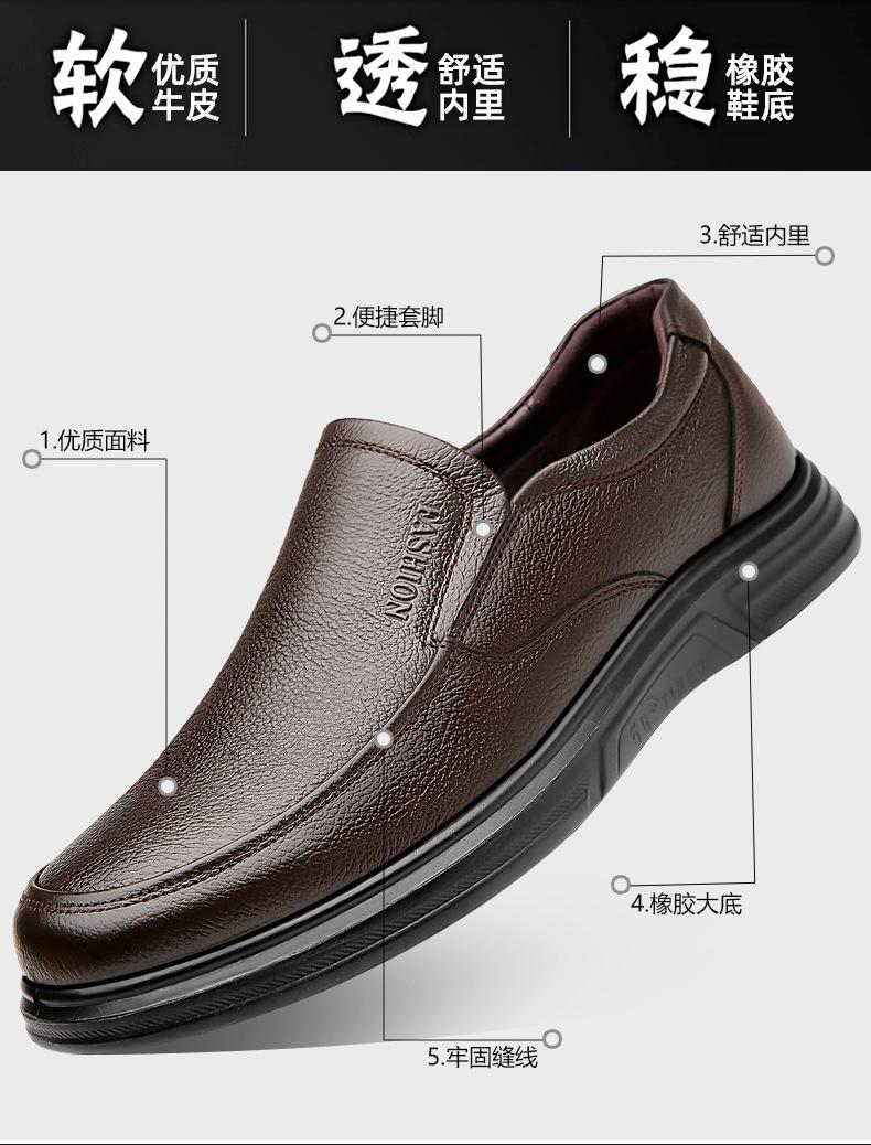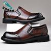 Zapatos de cuero para hombre de otoño, zapatos de cuero casuales de negocios de piel de vaca, zapatos de cuero viejos sin cordones de suela blanda antideslizante