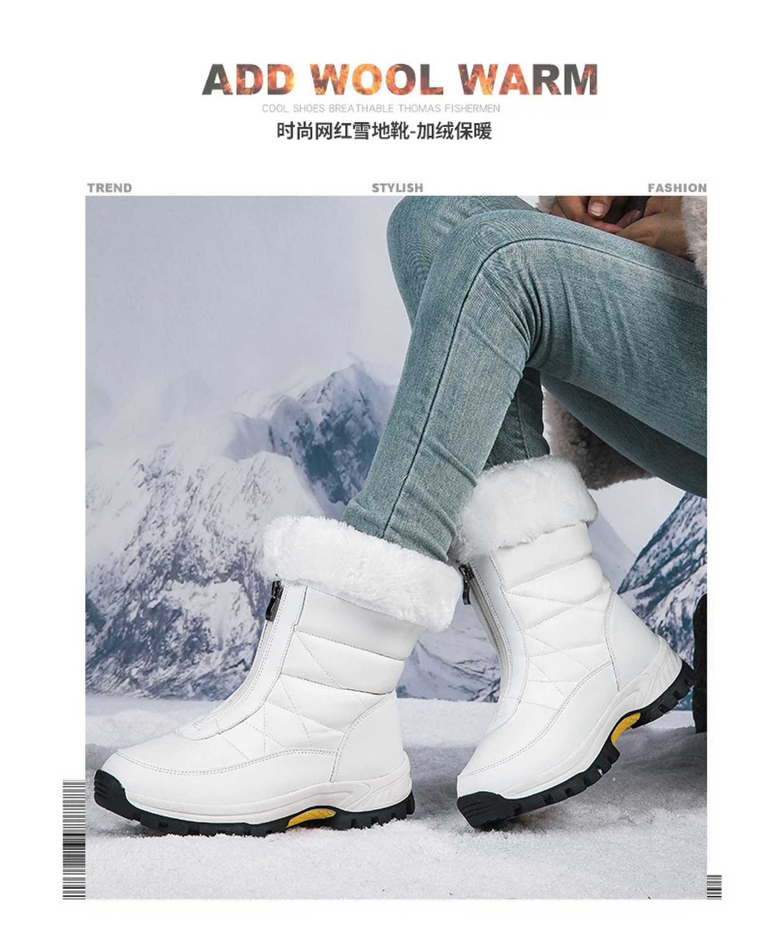 Botas de Nieve para Exterior para Mujer 2025 Invierno Nuevo Estilo Botas de Algodón con Forro Polar para Mujer Talla Grande Transfronteriza Botas Cálidas con Forro Polar para Exterior