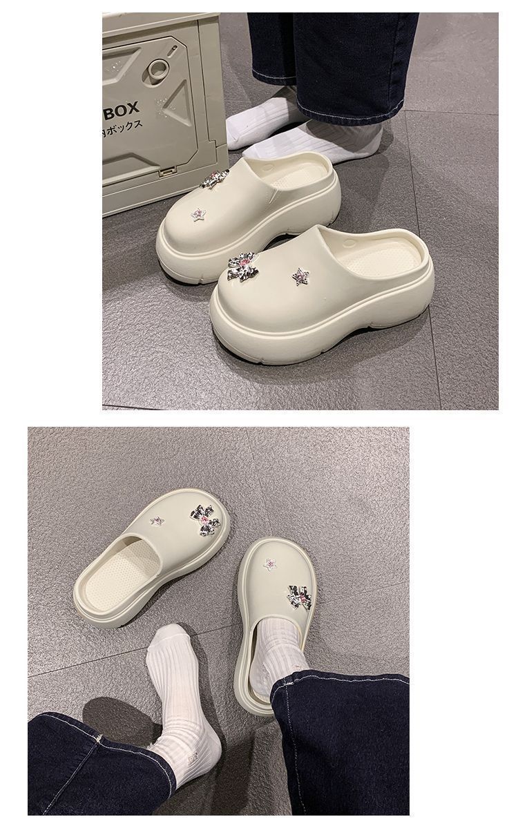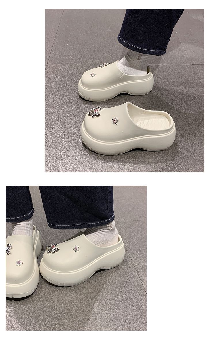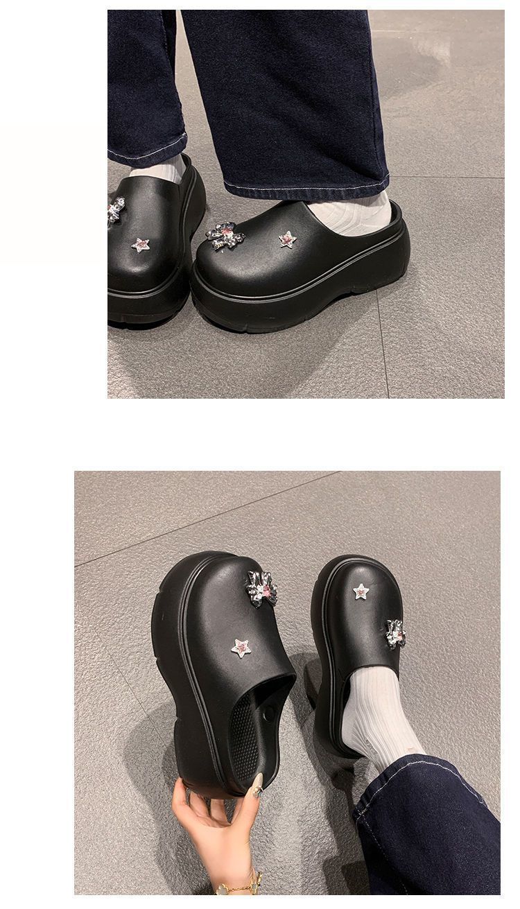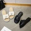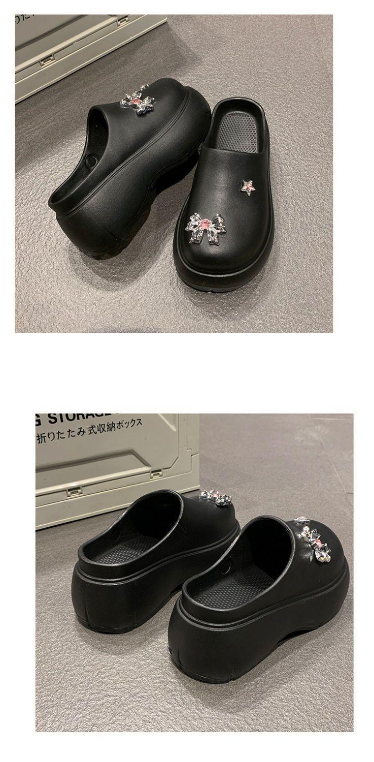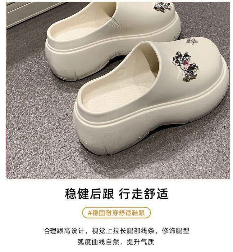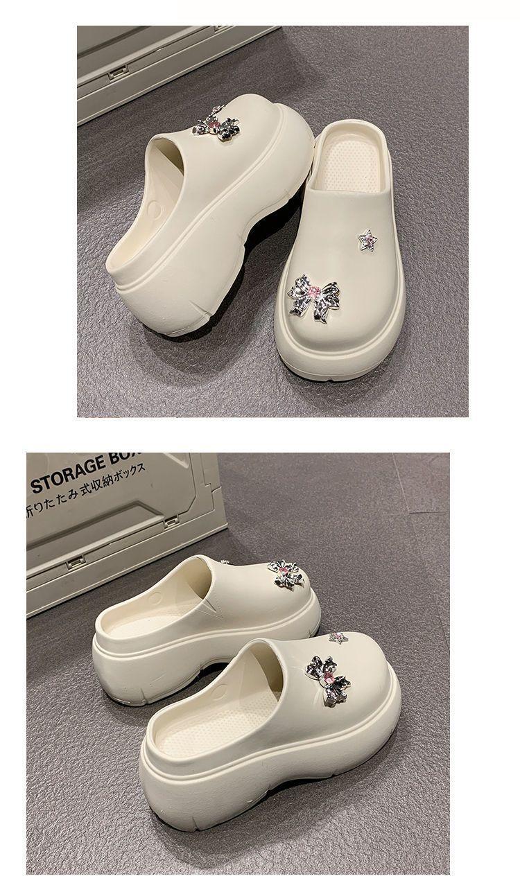 Zapatillas de lazo metálico estilo coreano para mujer 2025 primavera y verano nuevas talla pequeña aumento de altura medias zapatillas personalidad punta redonda zapatillas