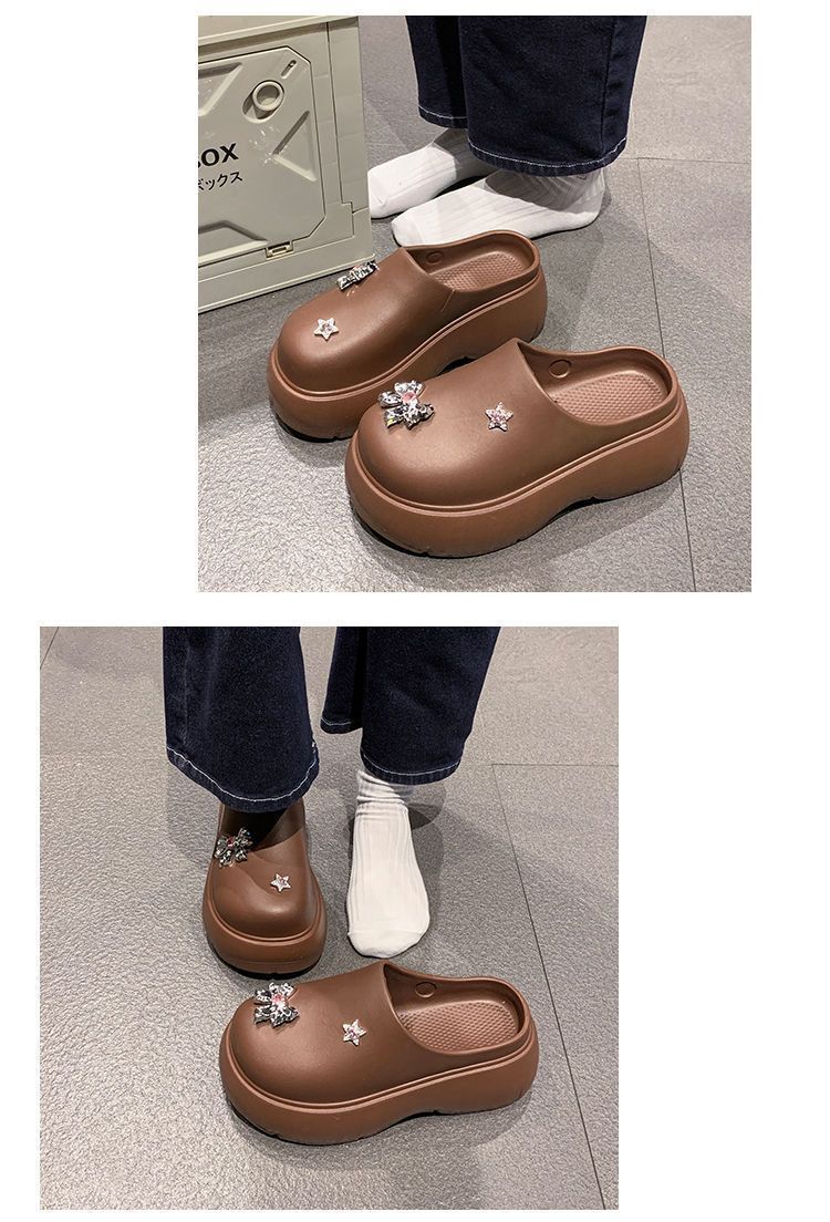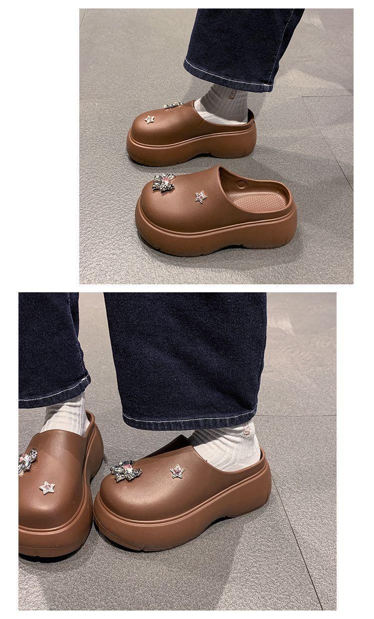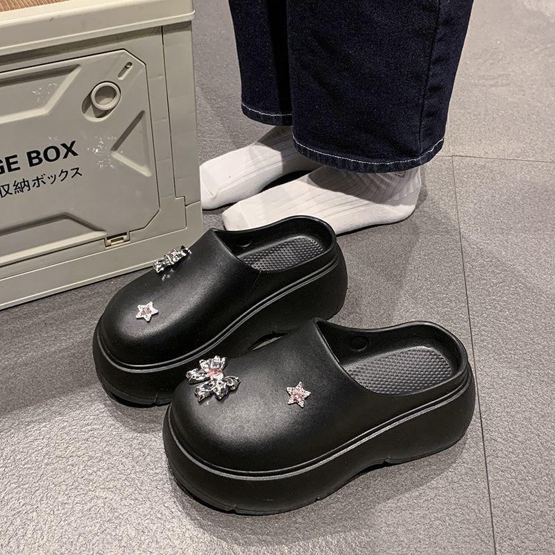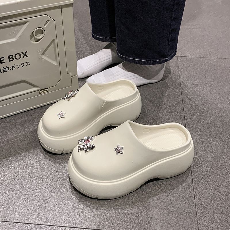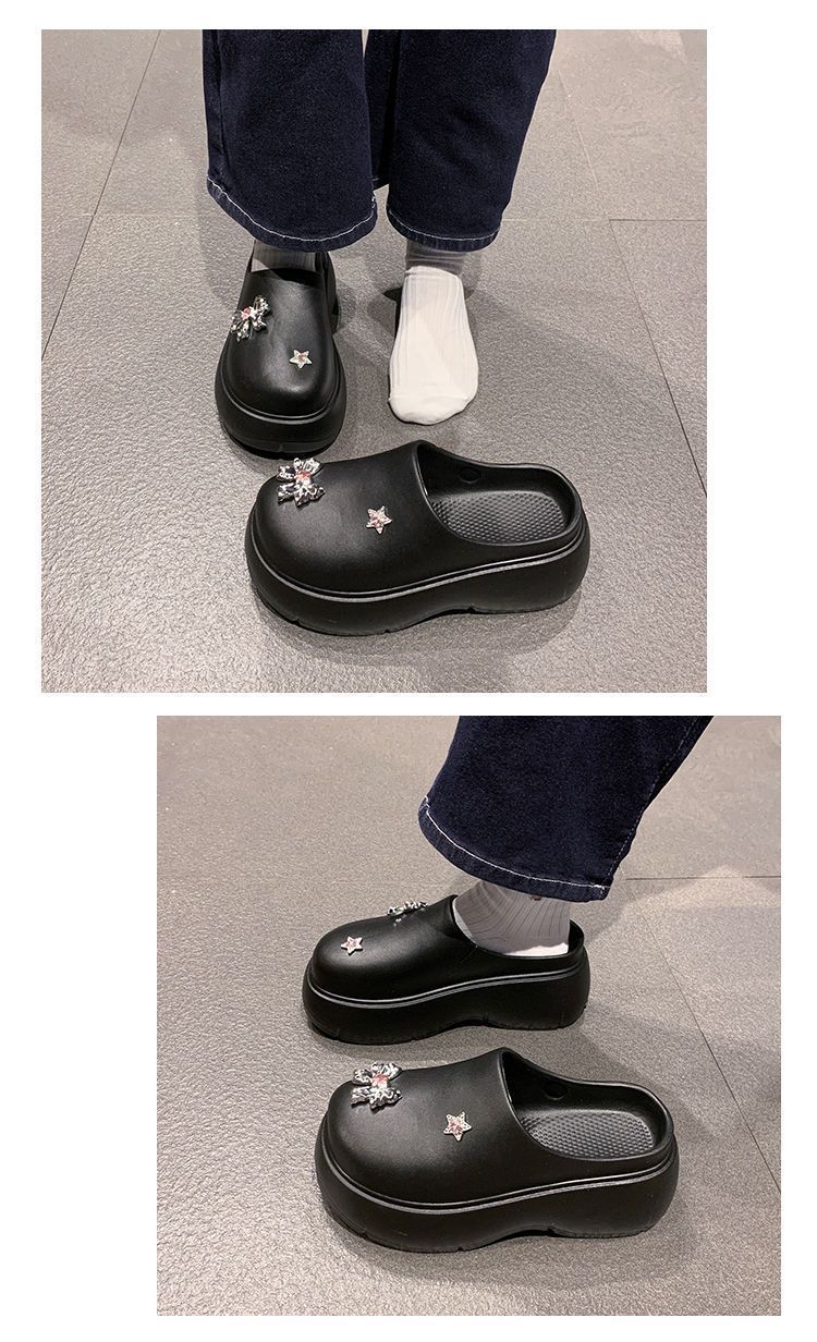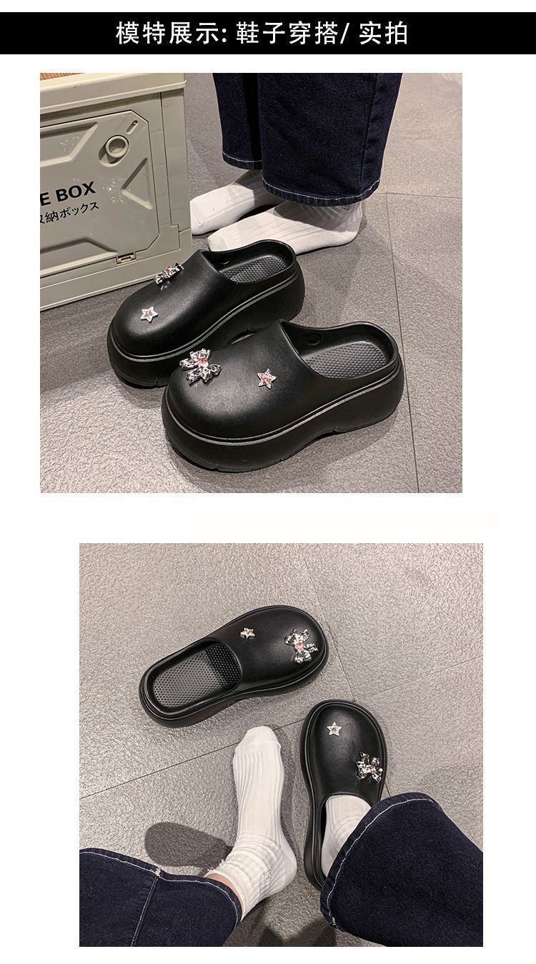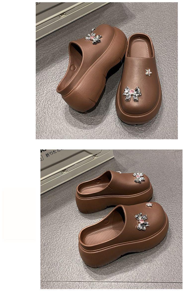 Zapatillas de lazo metálico estilo coreano para mujer 2025 primavera y verano nuevas talla pequeña aumento de altura medias zapatillas personalidad punta redonda zapatillas