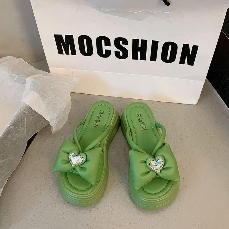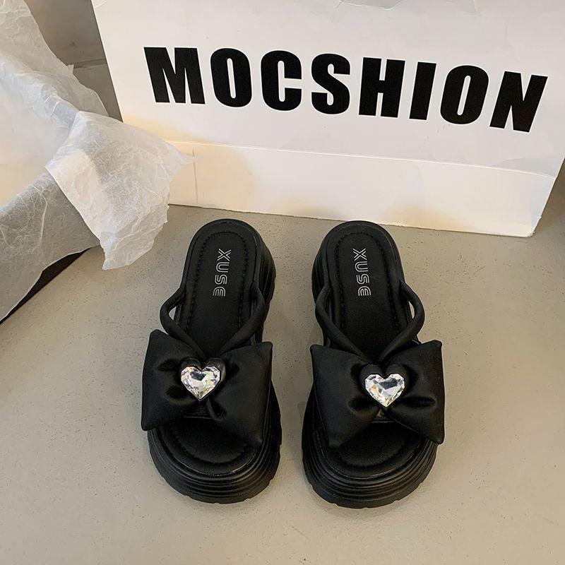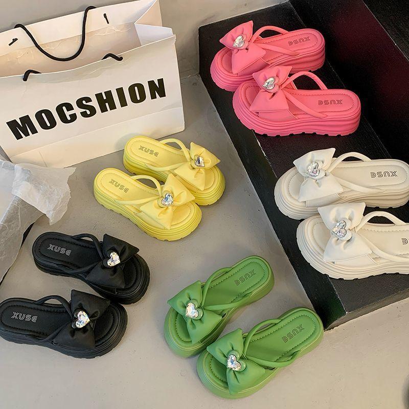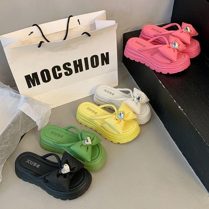 Muffin Lazo Versátil Suela Gruesa Pedrería Chanclas de Playa 2025 Nuevo Verano Ropa Exterior Sandalias de Hada Mujer