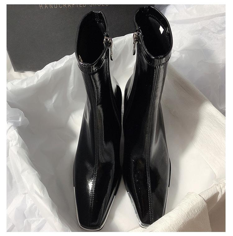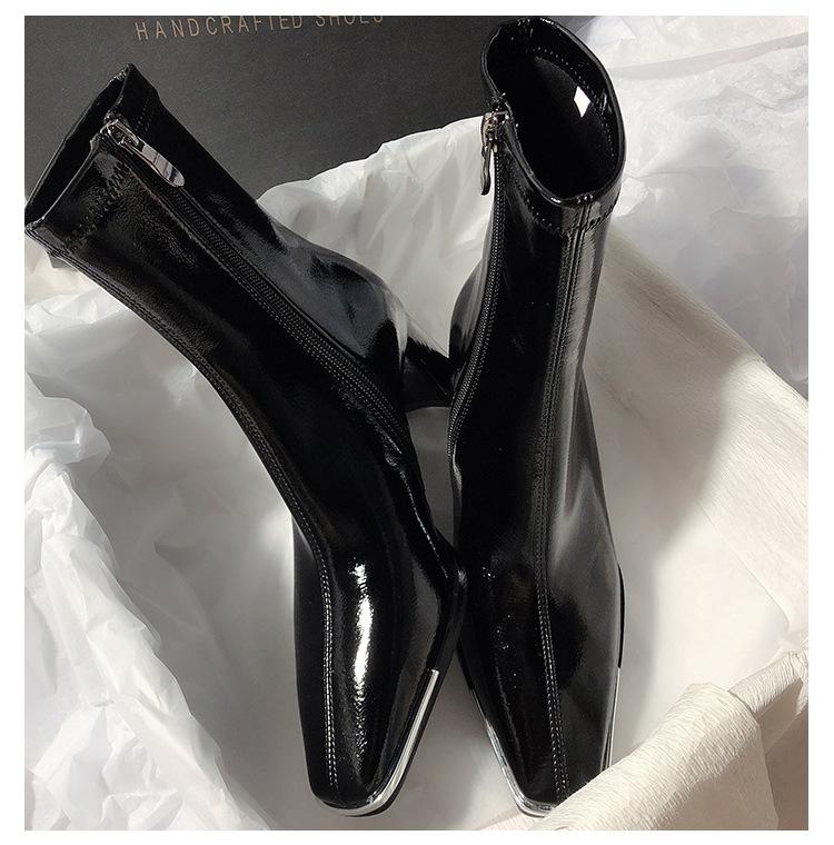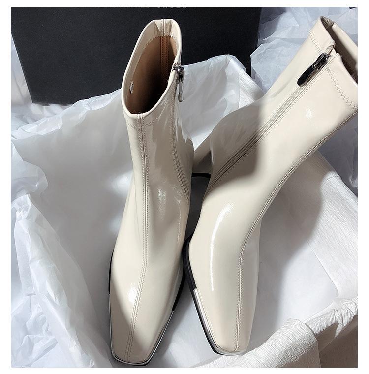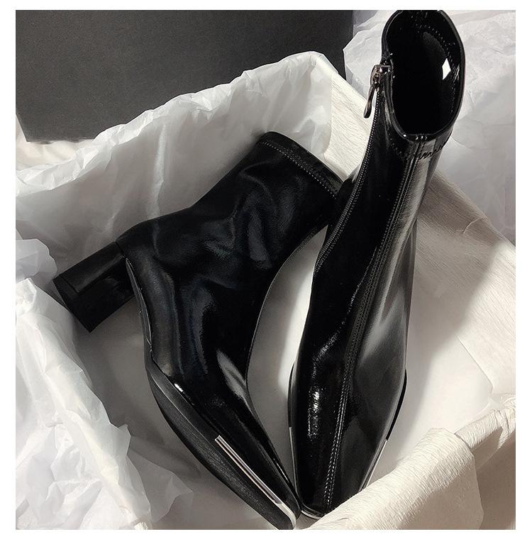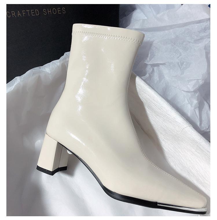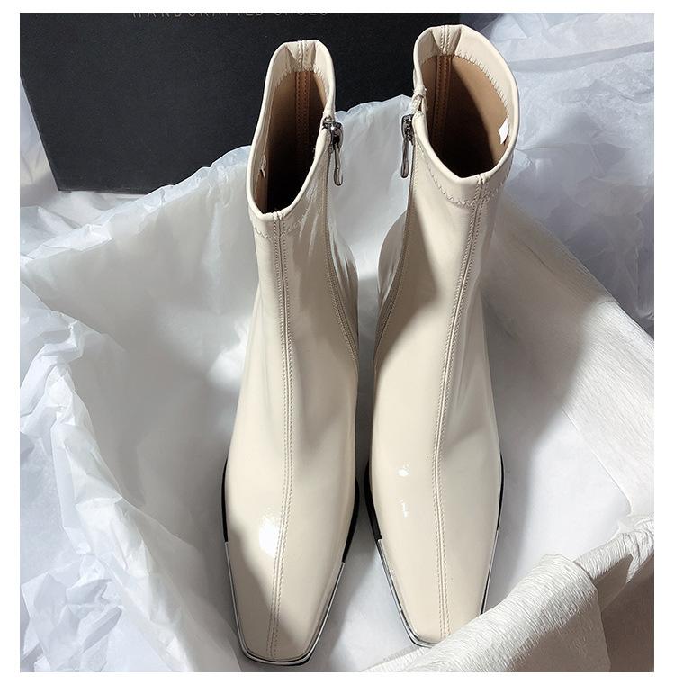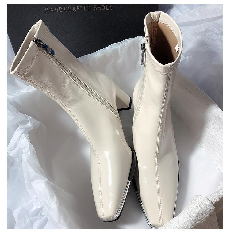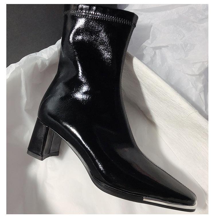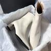 Elegantes Botas de Moda de Tacón Alto con Elástico Plateado, Punta Cuadrada, Tacón Grueso, Cierre Lateral, Color Sólido y Costuras para Mujer
