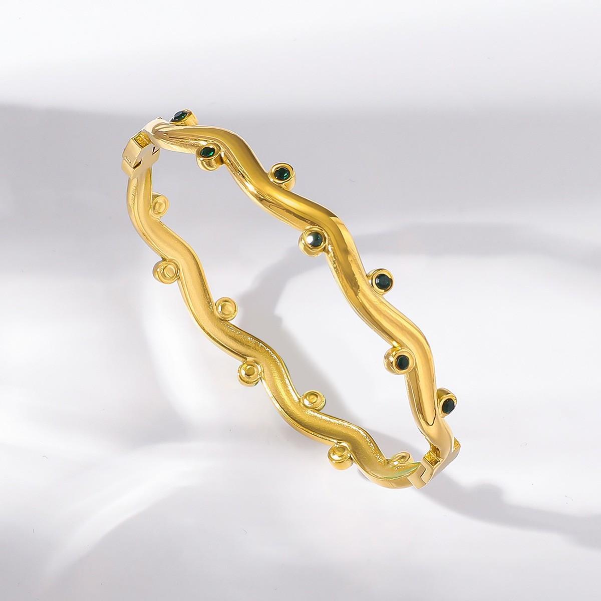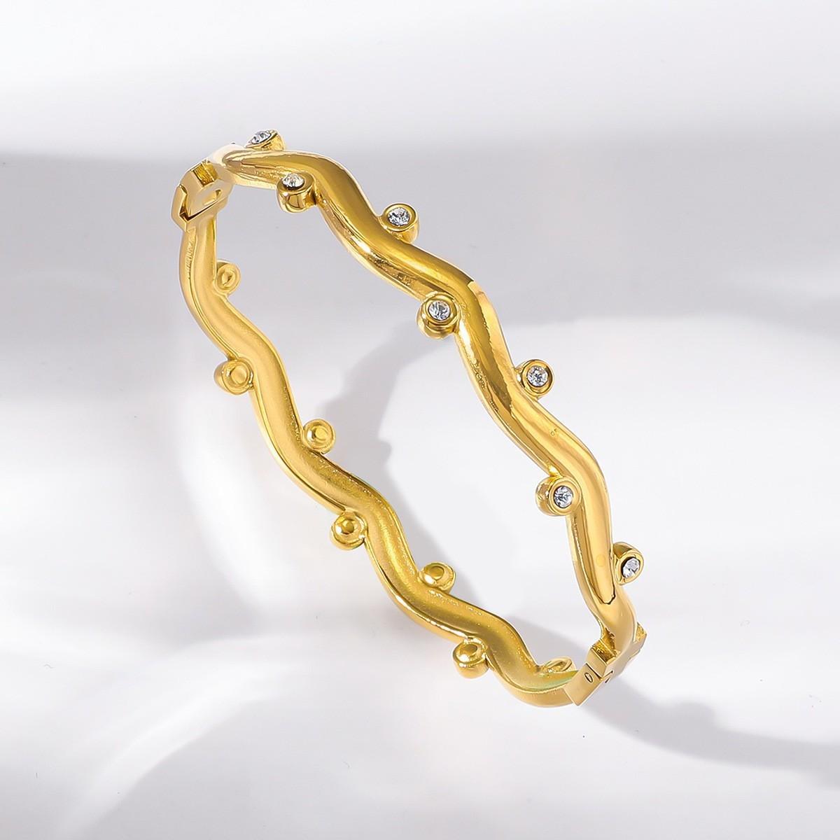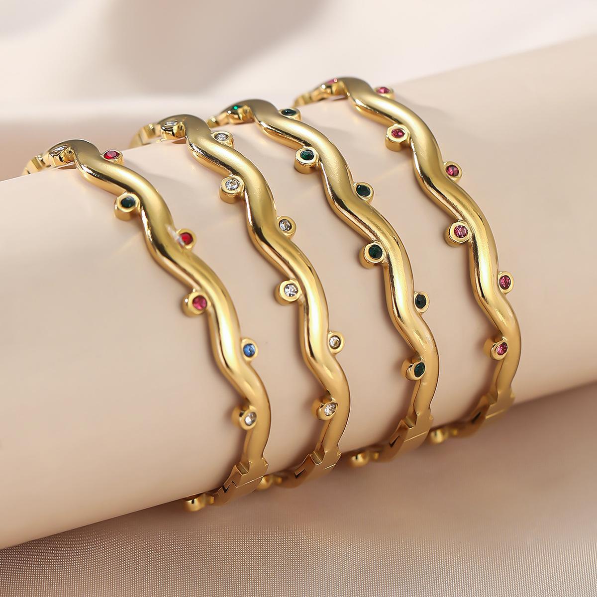 Pulsera de Acero de Titanio para Mujer Retro Europeo y Americano Diamantes de Estrella Completa Incrustados Moda Colorida Sentido de Alta Gama Pulsera de Onda Nueva Joyería