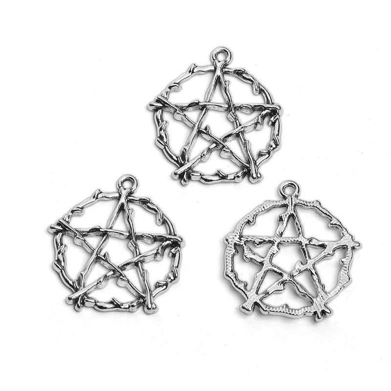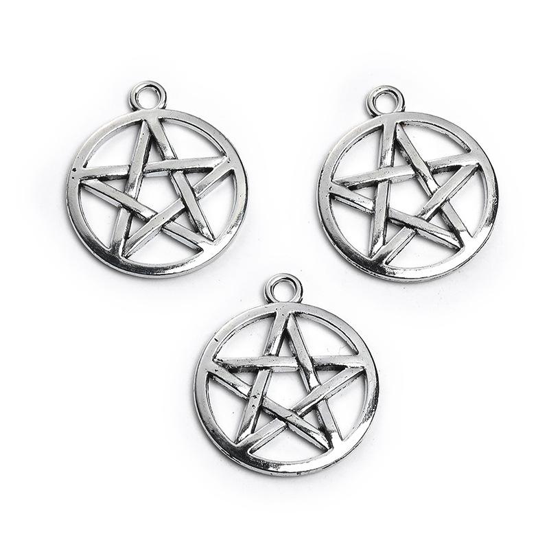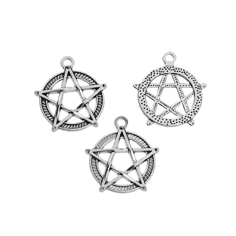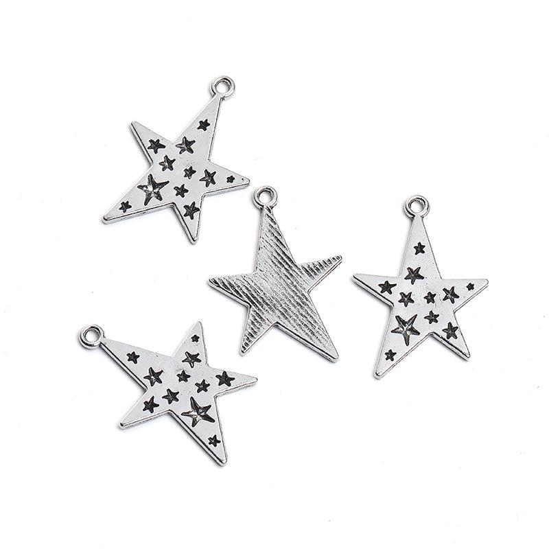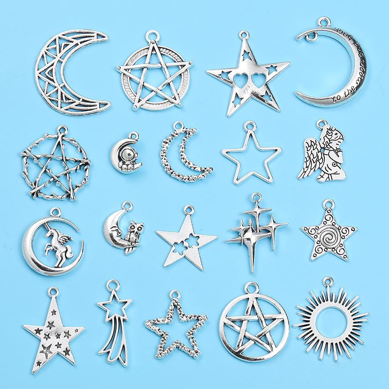 Colgante Retro de Aleación de Zinc con Estrella de Cinco Puntas y Luna DIY Hecho a Mano Collar Pulsera Venta Directa de Fábrica A800542