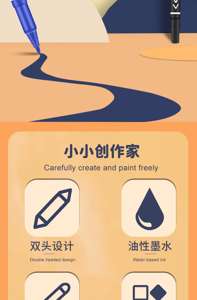Rotulador Gou Line pequeño de doble punta, resistente al agua, de secado rápido, para logística, marcador de aceite, para pintura artística, marcador negro