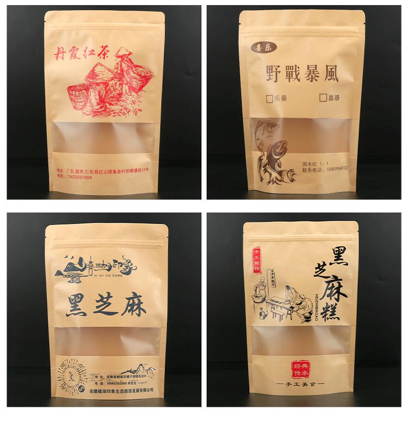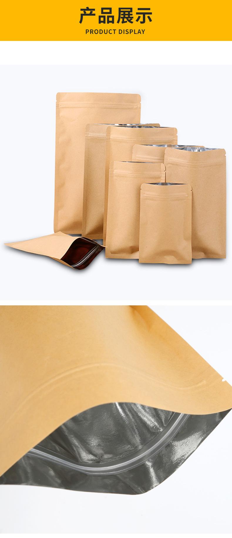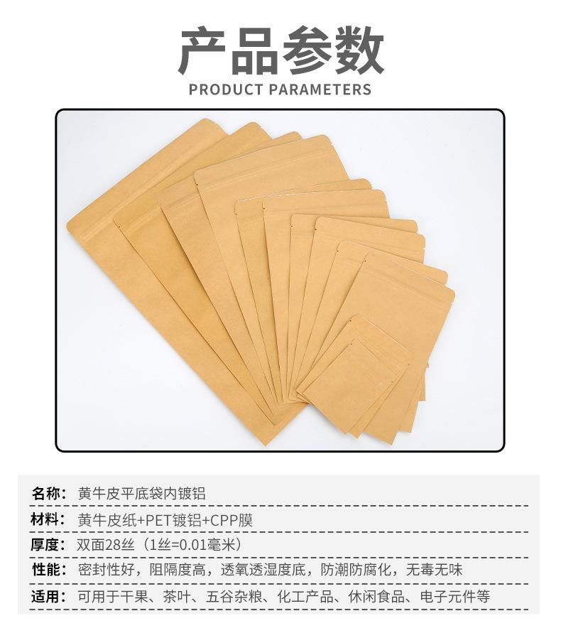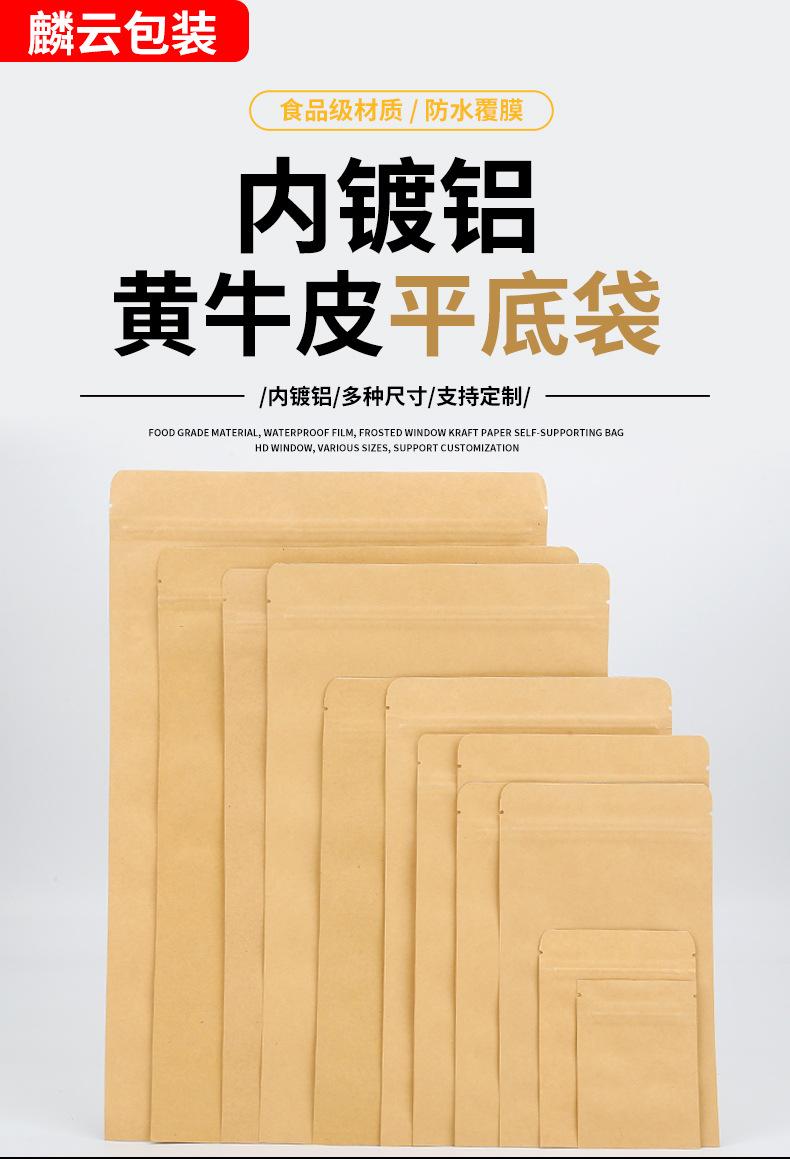 Venta al por mayor de fábrica bolsa de papel amarillo de cuero bolsa sellada fondo plano papel de aluminio papel kraft autosellante bolsa de embalaje para té y alimentos